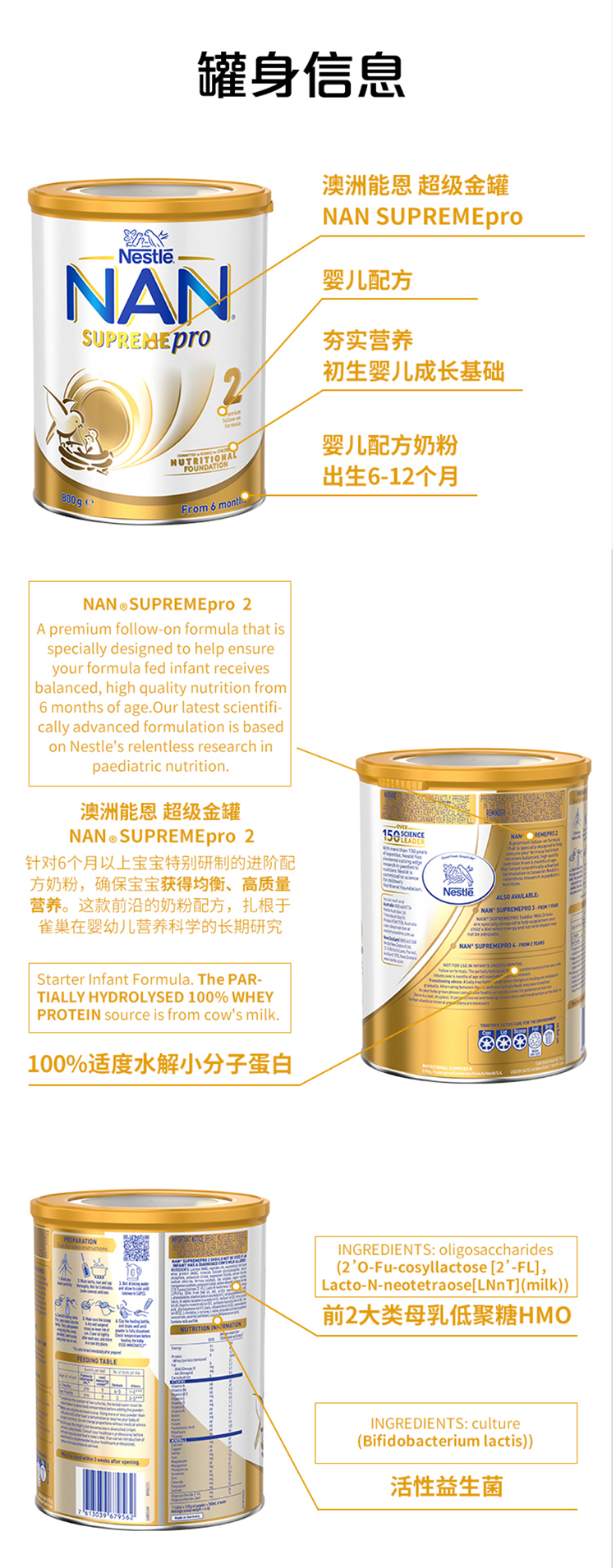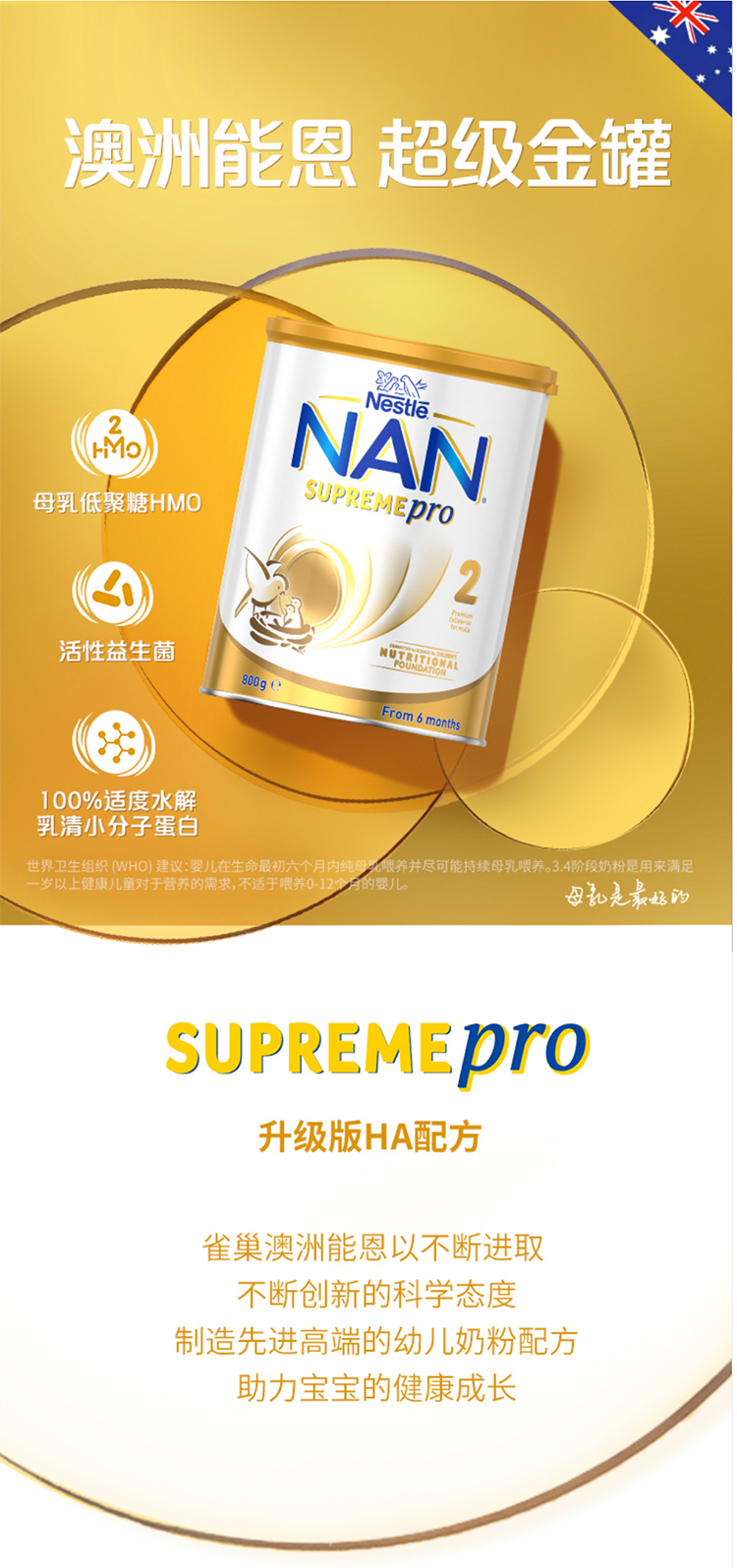 德国原装进口 雀巢澳版超级能恩 适度水解婴幼儿奶粉2段 800g(联系客服可安排优先排单)
