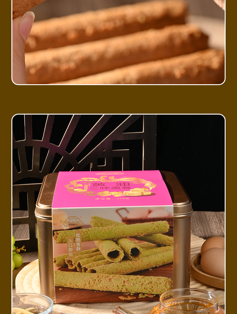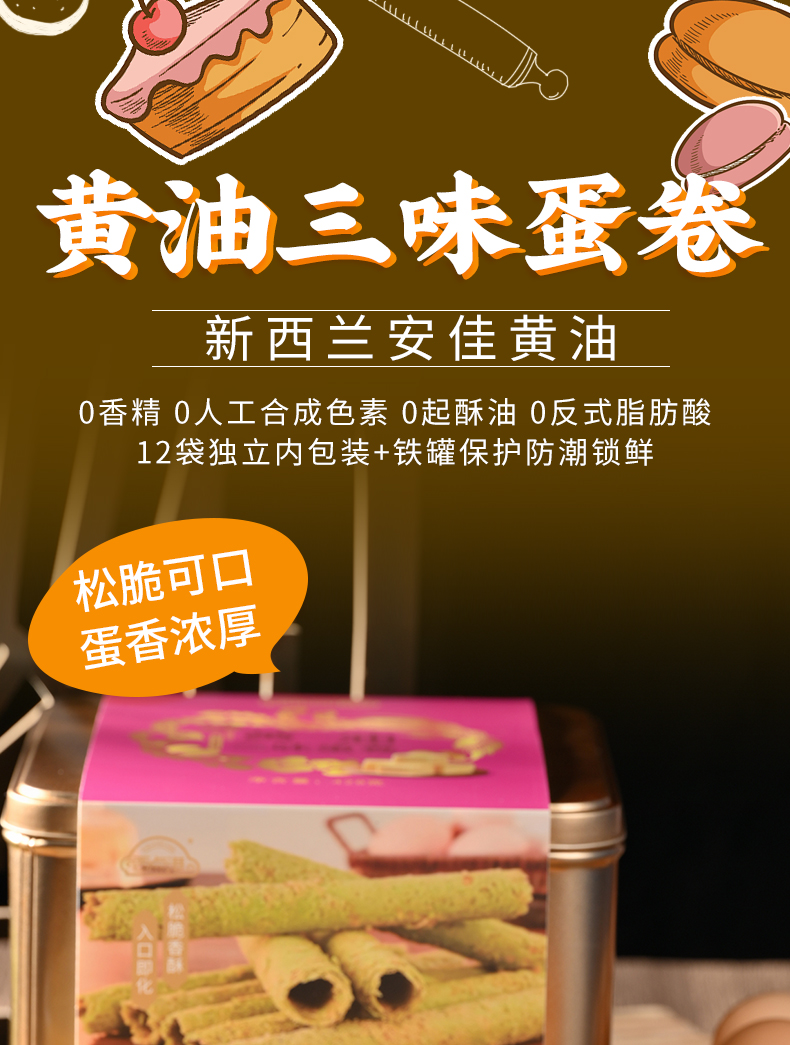 【安佳黄油干净健康又安全】西点港黄油蛋卷(三拼)428克 老人小孩爱吃