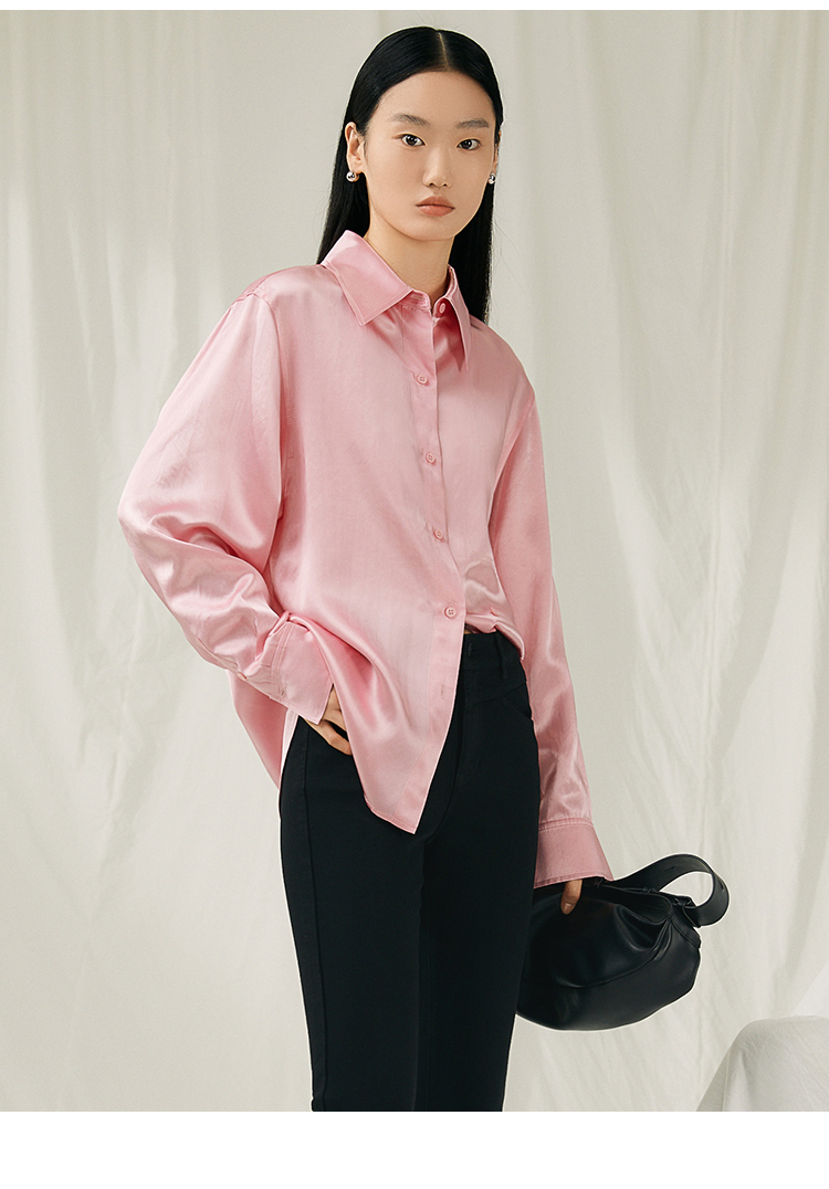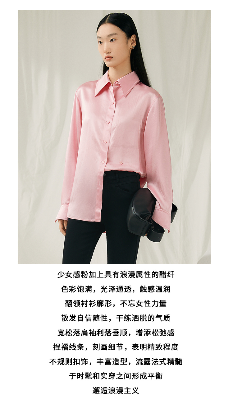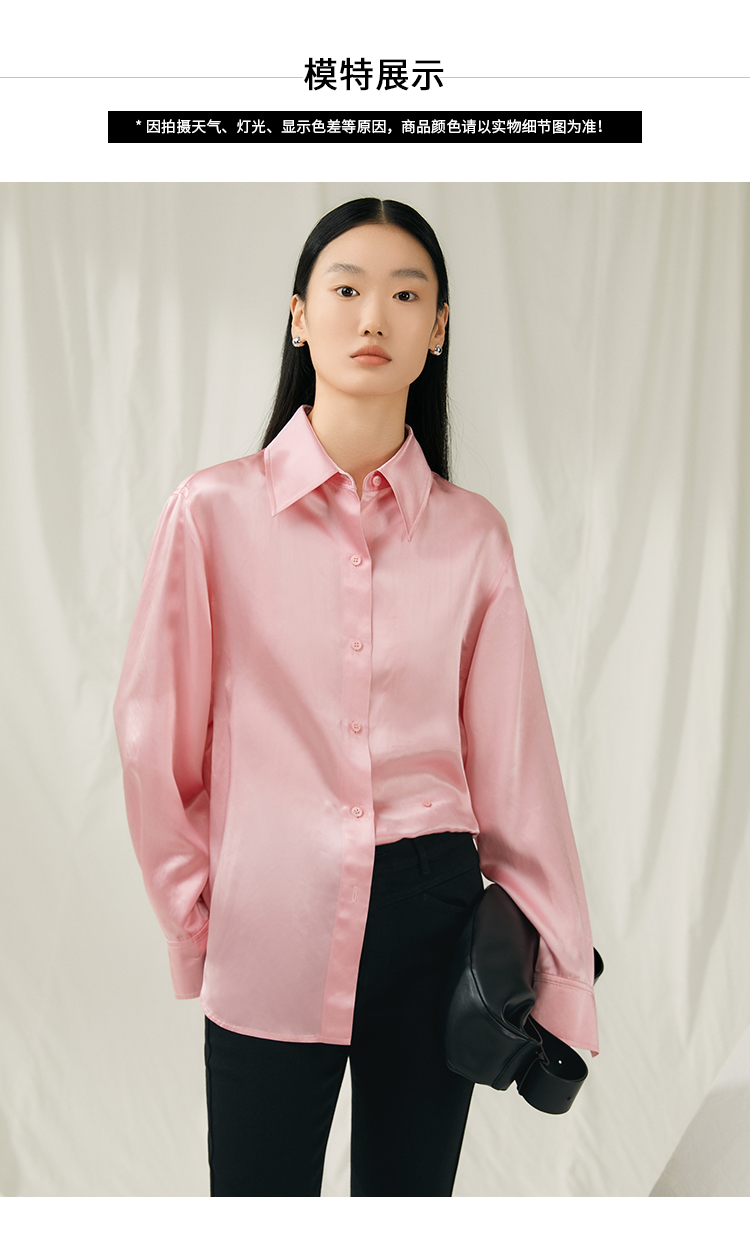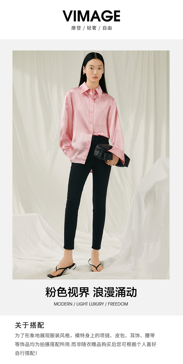 VIMAGE纬漫纪春季新款宽松舒适100%醋纤衬衫女长袖衬衣V1909505