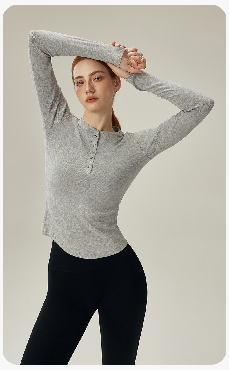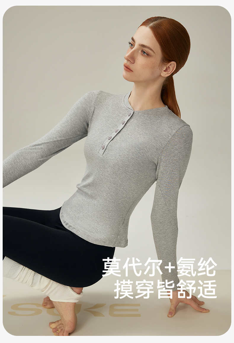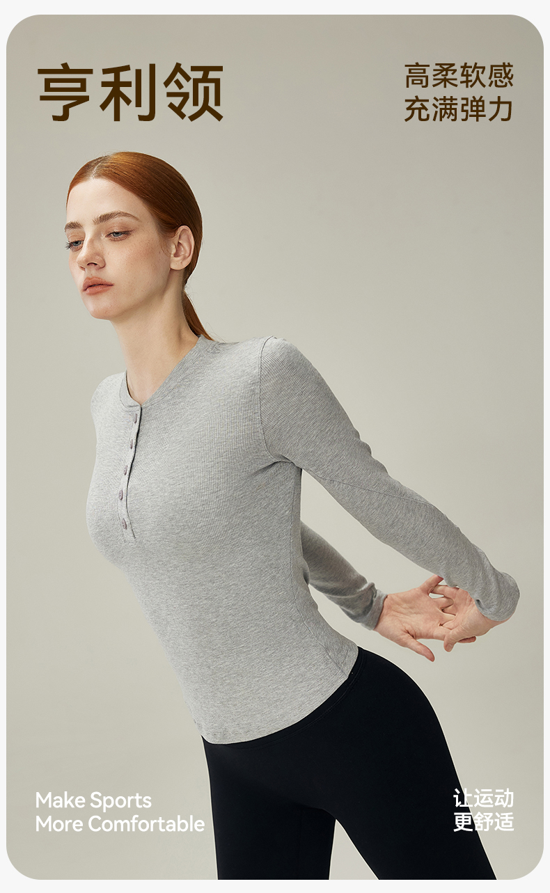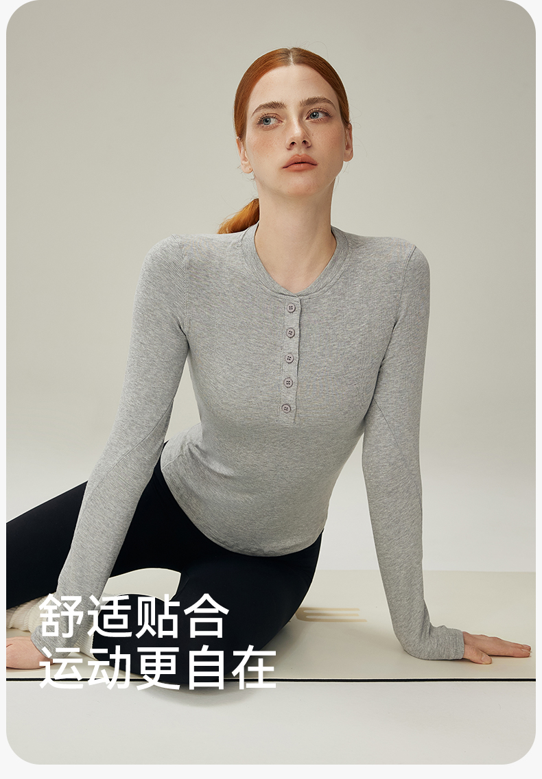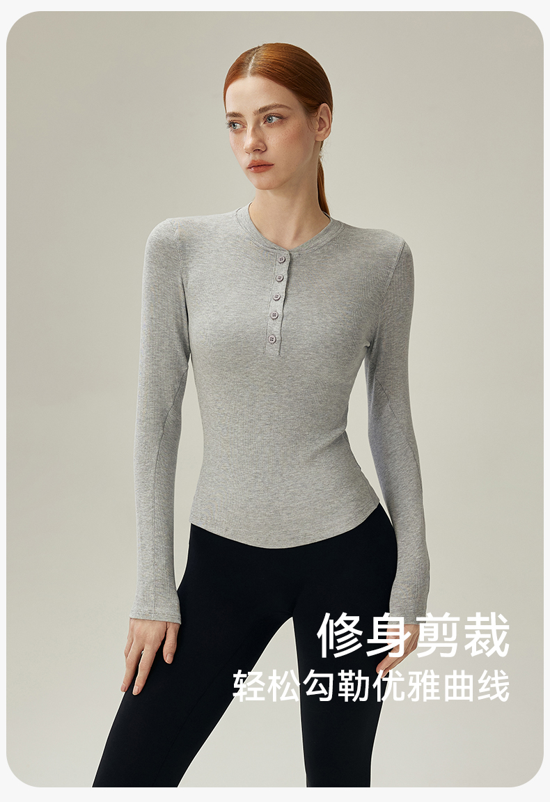 跃牌【安琪拉系列】2025新品瑜伽长袖上衣修身显瘦运动亨利衫运动瑜伽服CX-5021