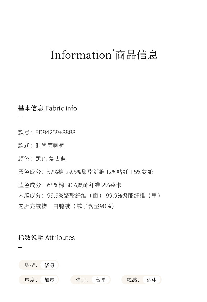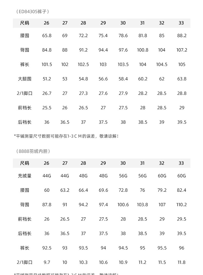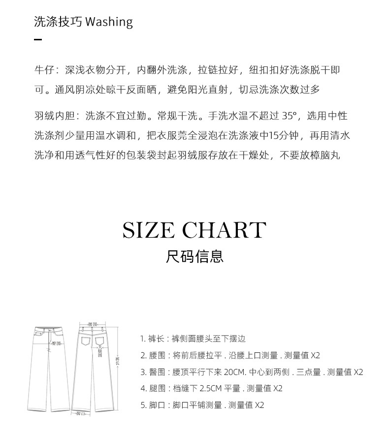 XG 84305抗寒保暖两穿羽绒裤修身显瘦微喇牛仔裤