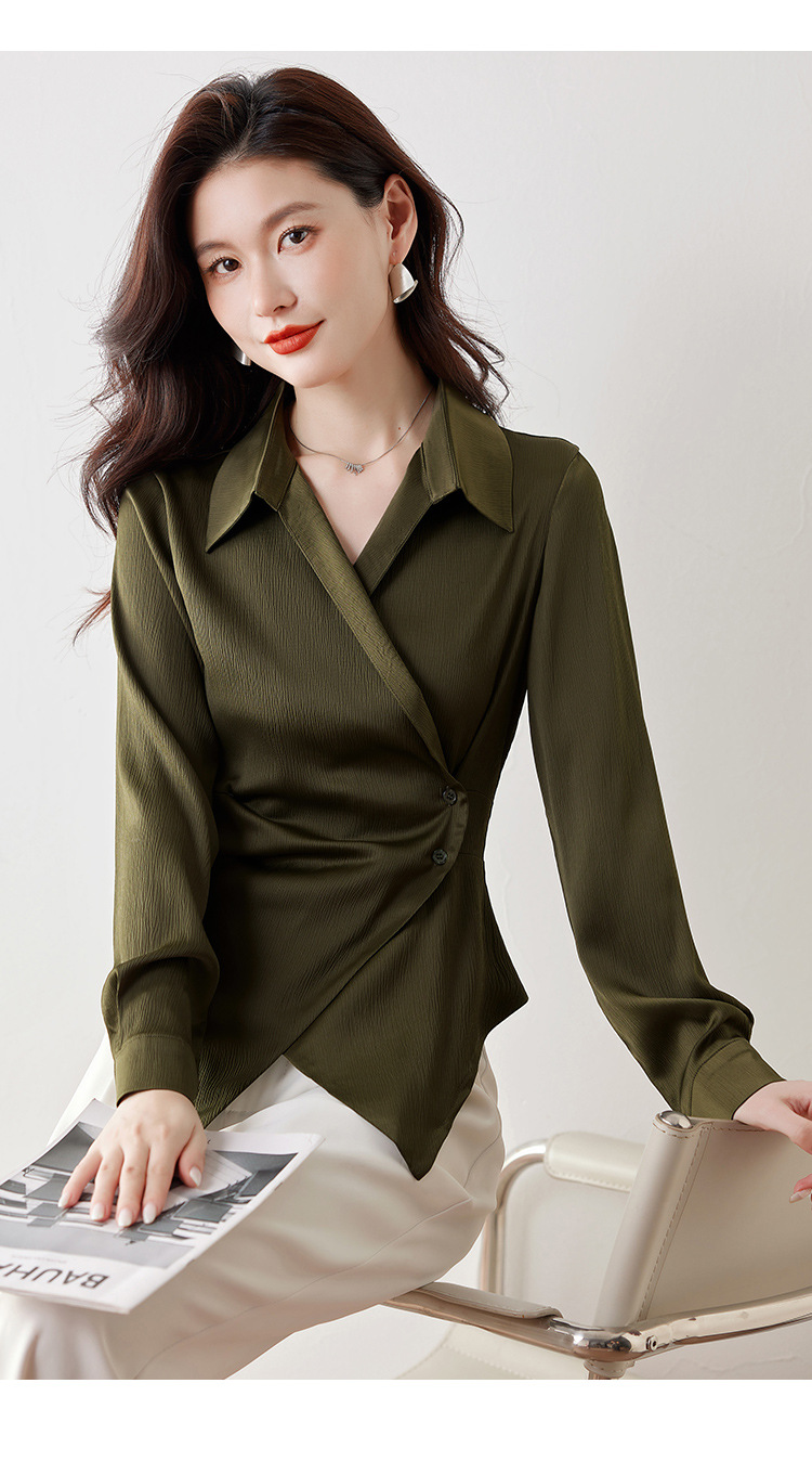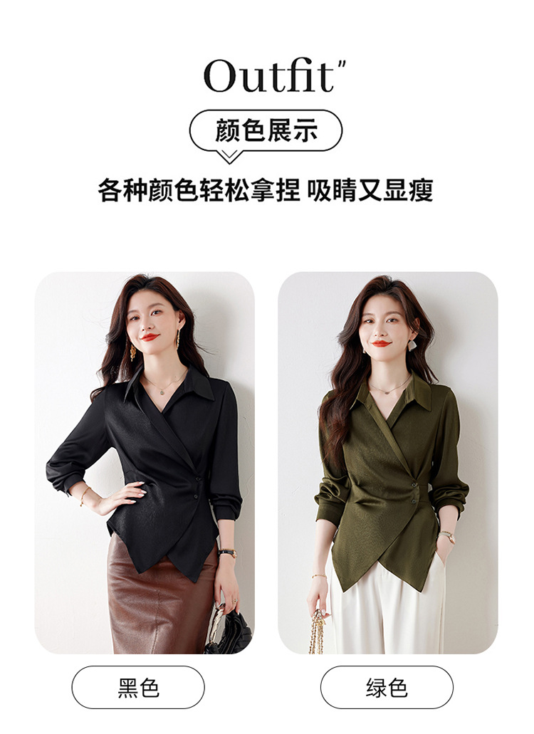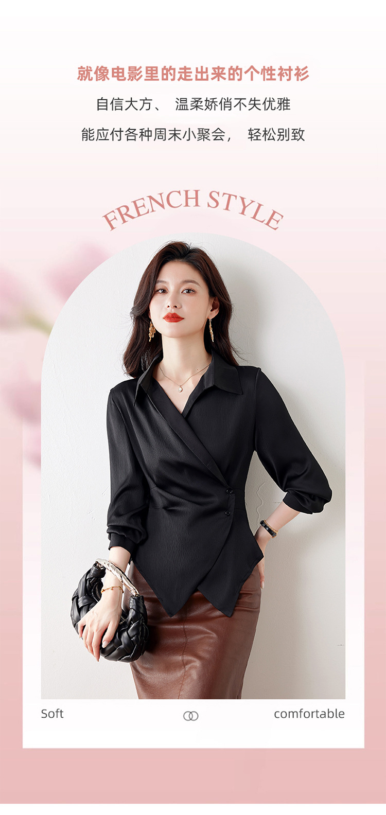KQL 403H7925法式收腰长袖衬衫显瘦上衣
