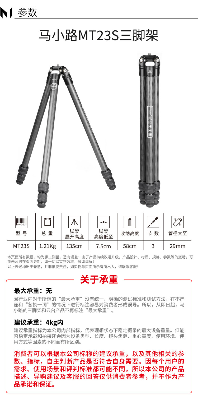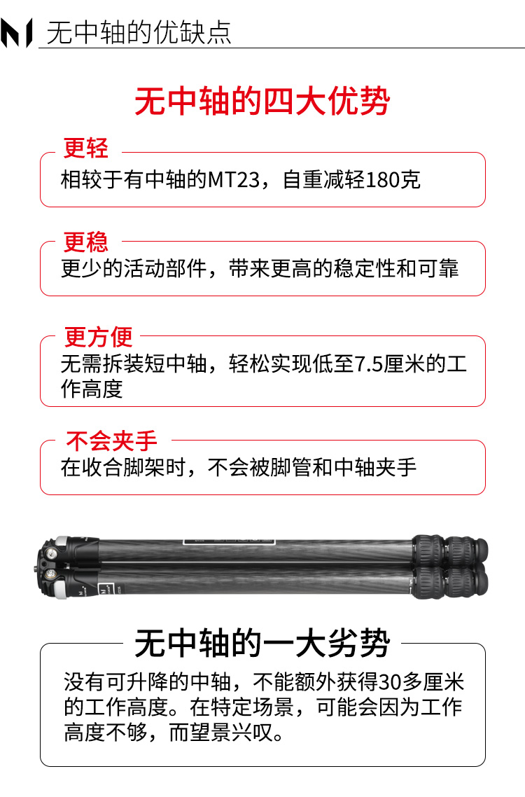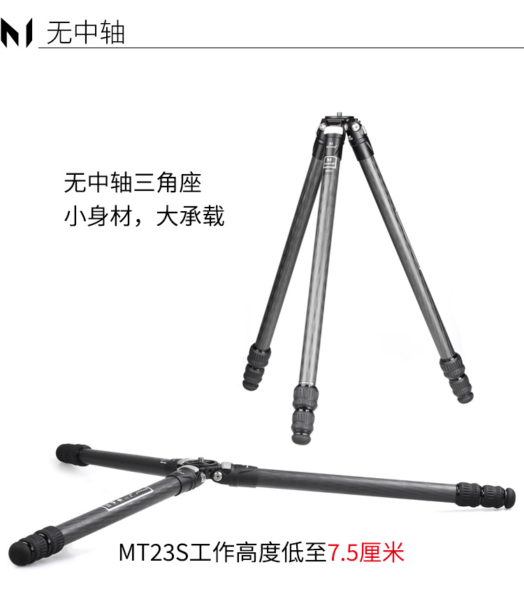 马小路Marsace MT23S 无中轴碳纤维三脚架 轻便稳定