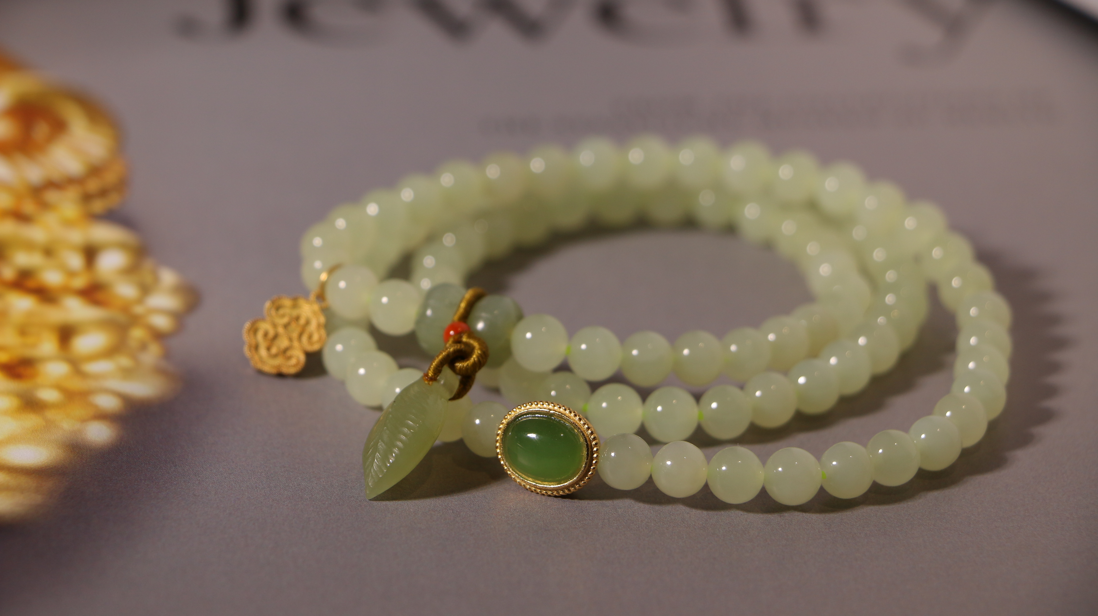 原创设计和田玉手链,可三圈当手链,可以当项链佩戴。