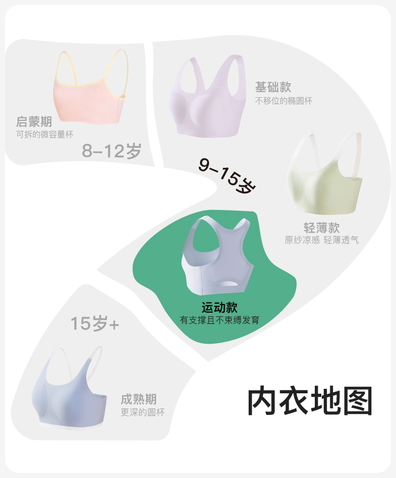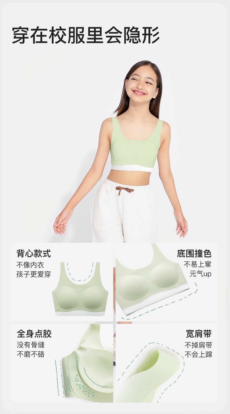 likeuu少女运动内衣透气女童学生撞色抹胸背心发育期ZY