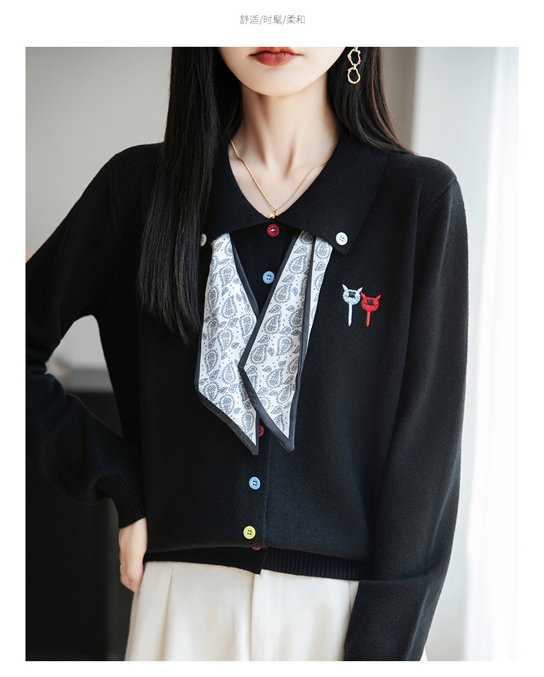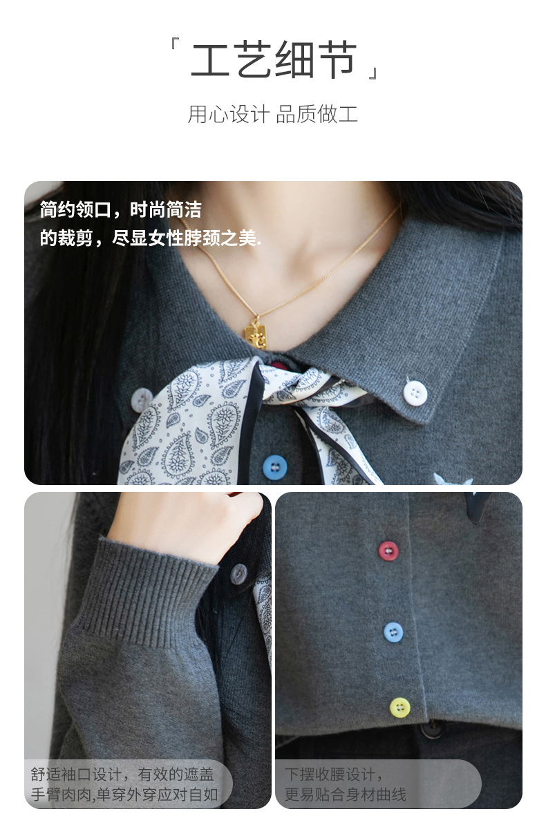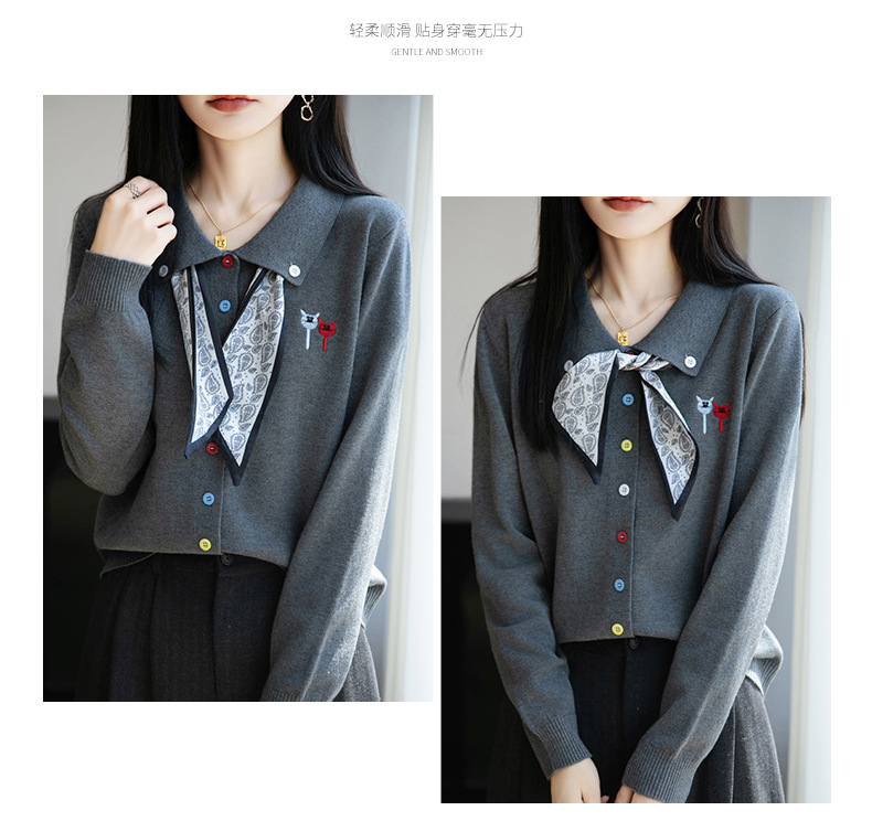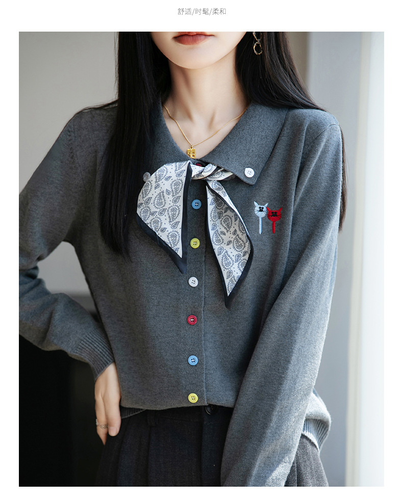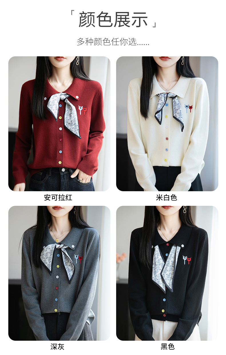 CC带丝巾的上衣高级感秋装针织开衫女2025新款漂亮洋气翻领毛衣外套