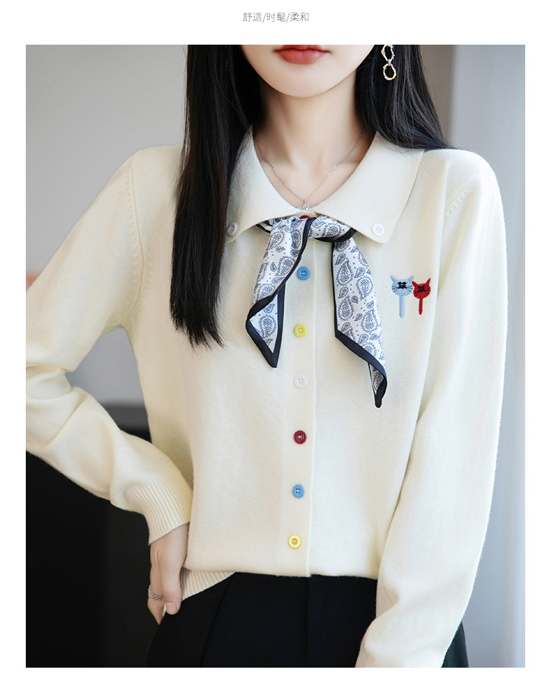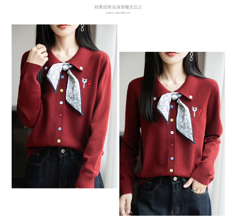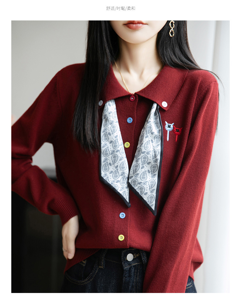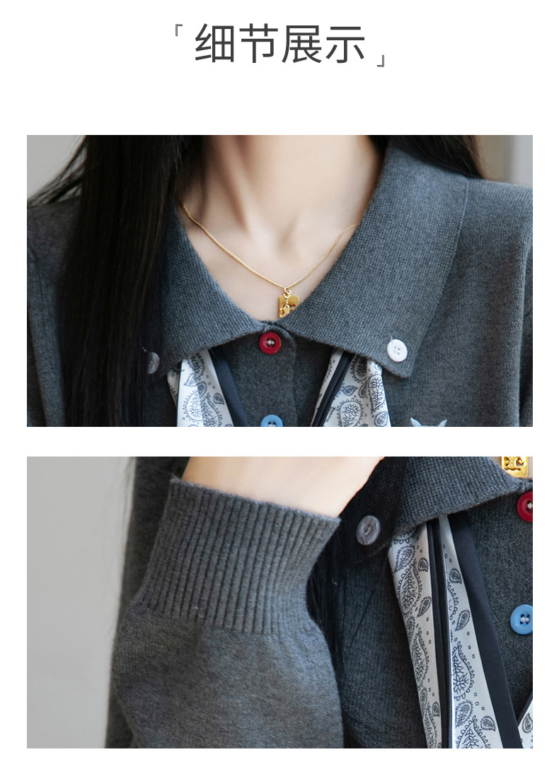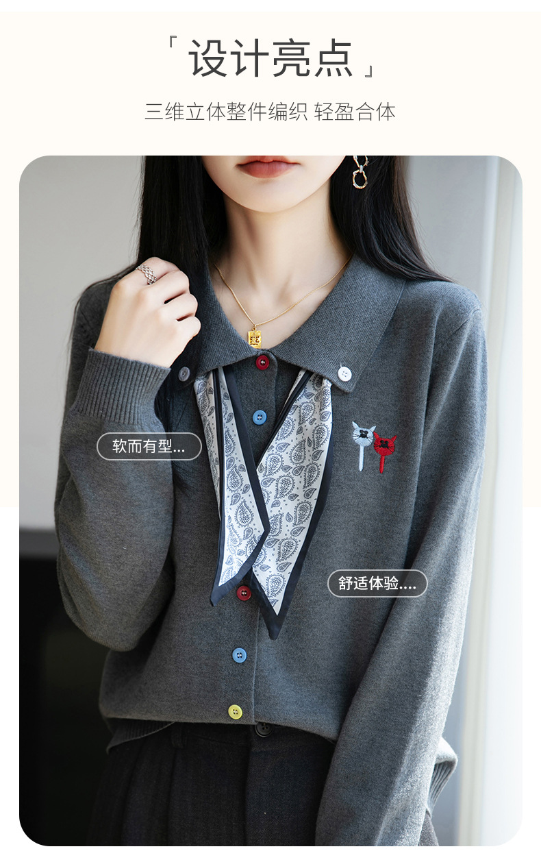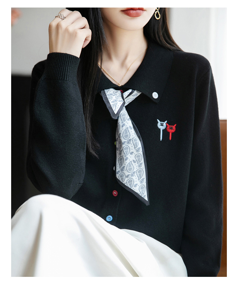 CC带丝巾的上衣高级感秋装针织开衫女2025新款漂亮洋气翻领毛衣外套
