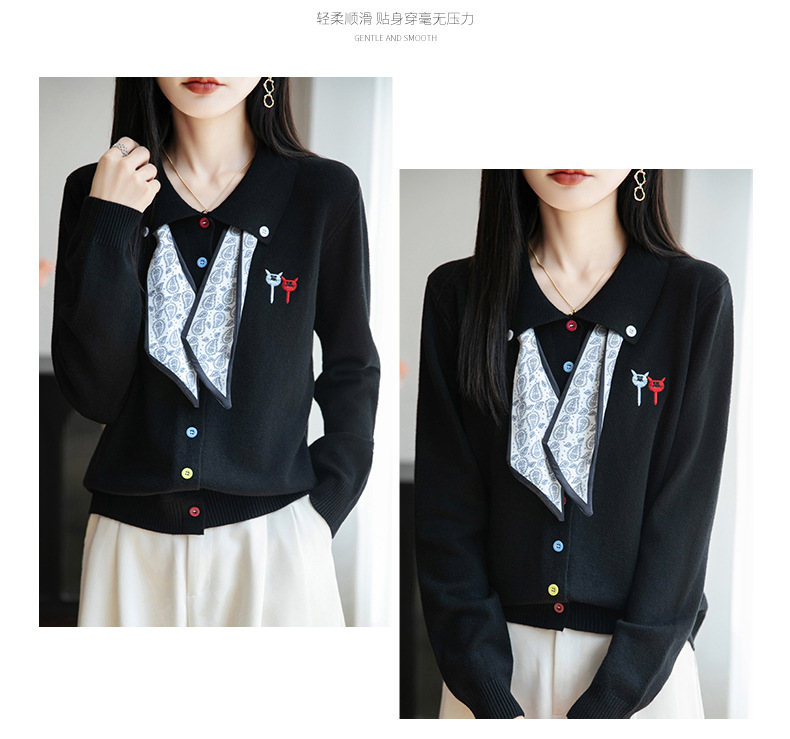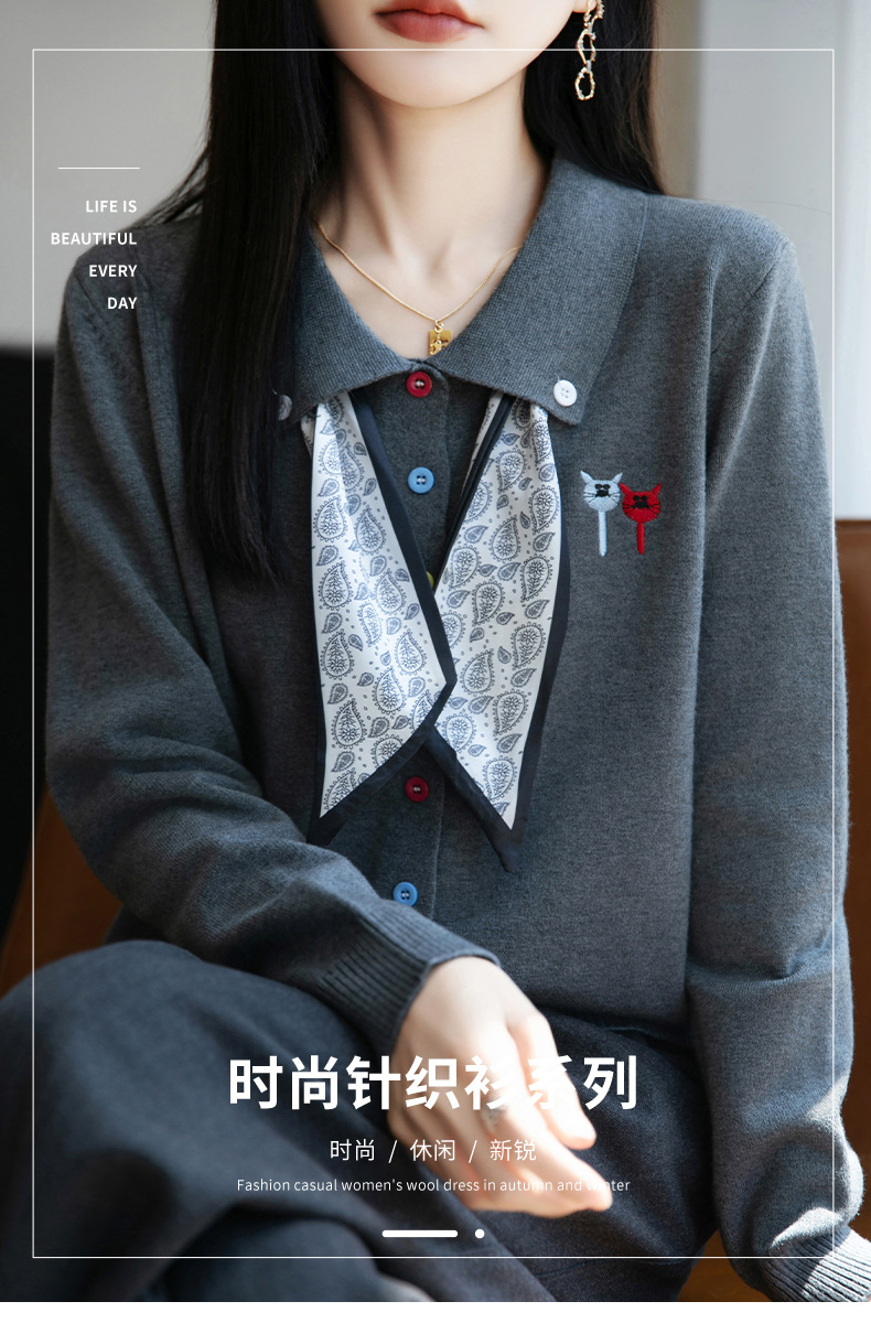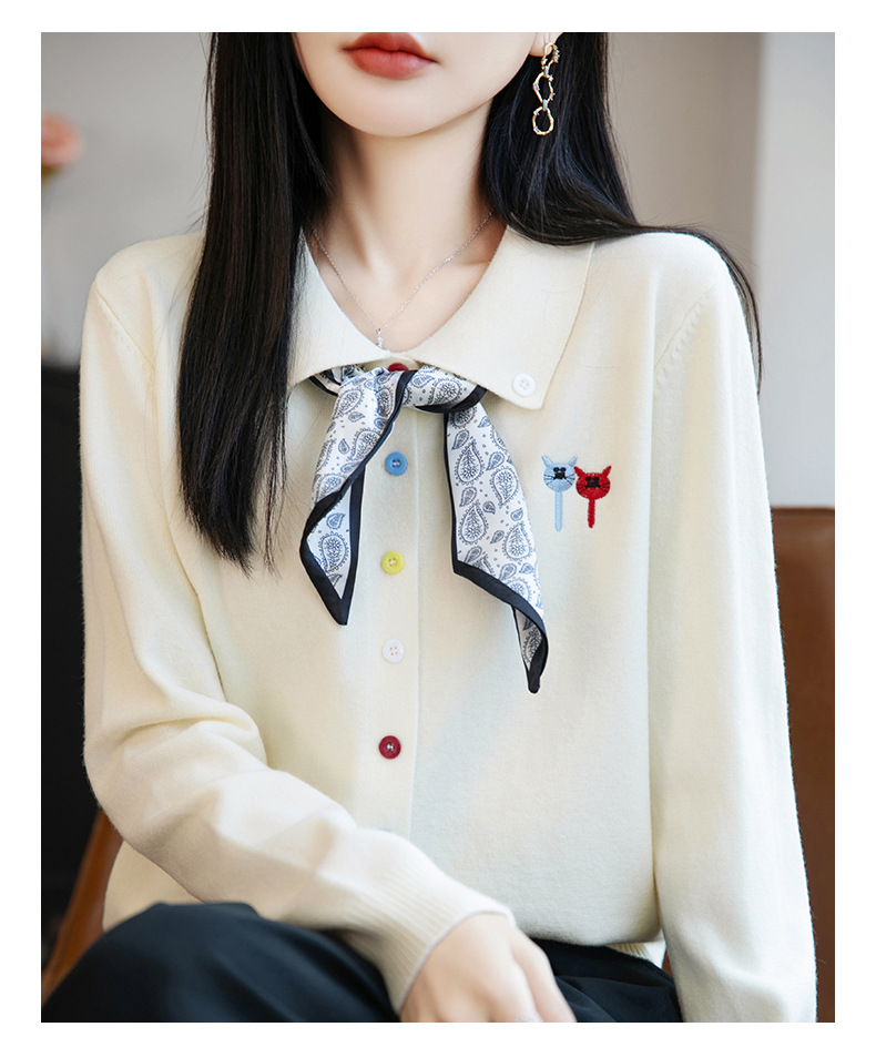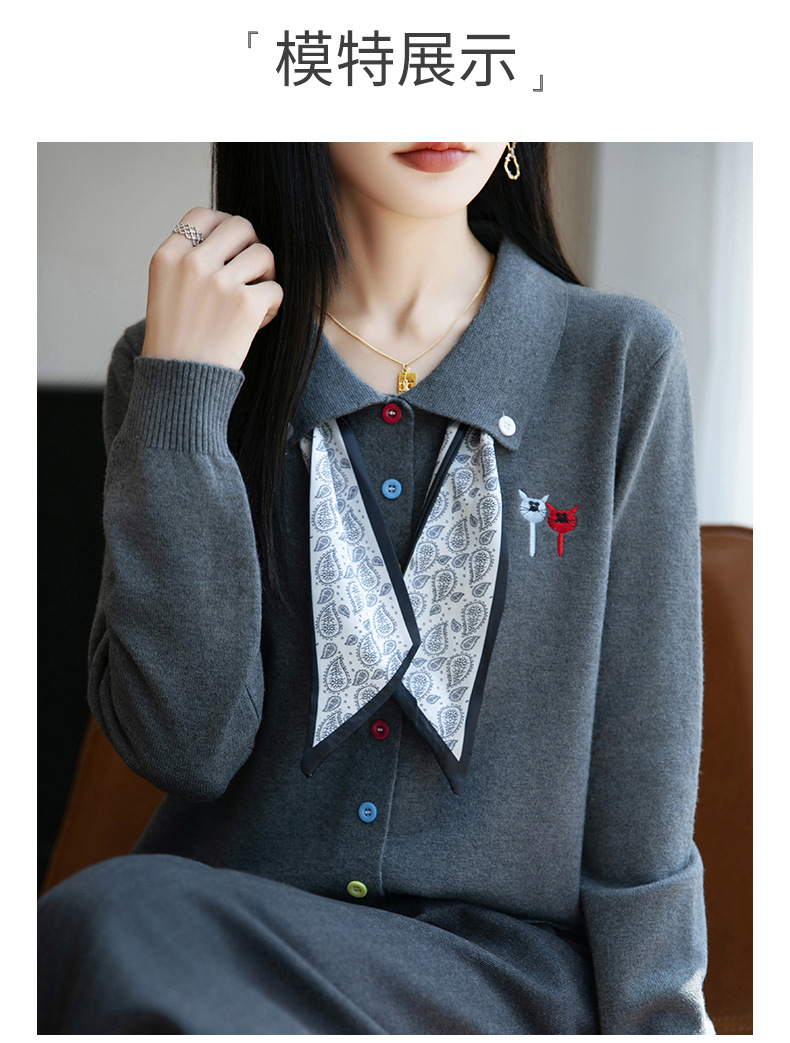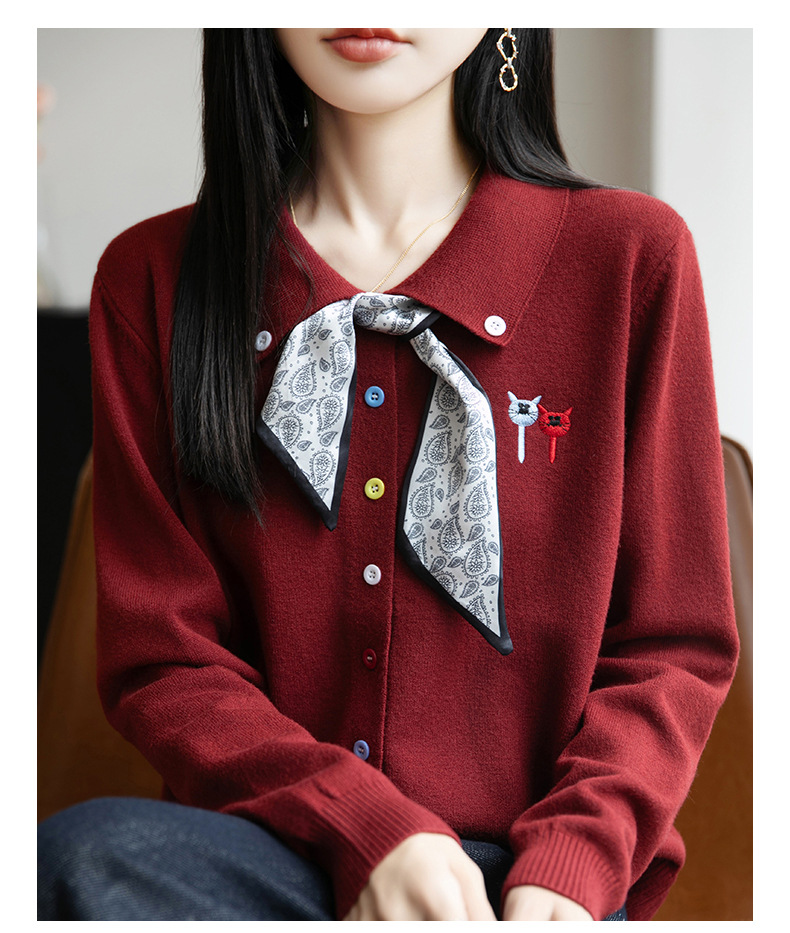 CC带丝巾的上衣高级感秋装针织开衫女2025新款漂亮洋气翻领毛衣外套