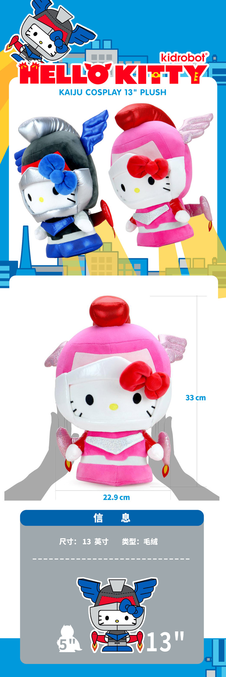 现货 Kidrobot 机甲凯蒂猫 Cosplay 怪兽系列 毛绒 摆件 Hello Kitty Cosplay Kaiju Mechazoar