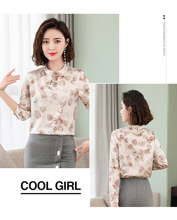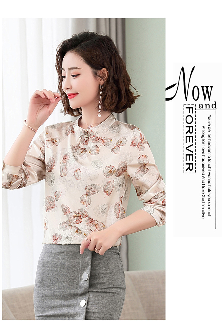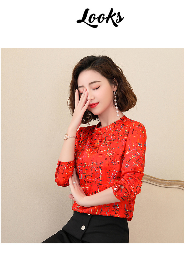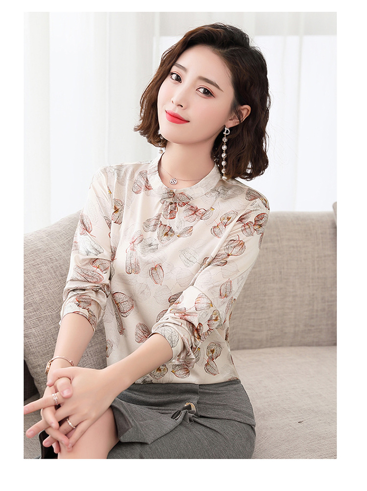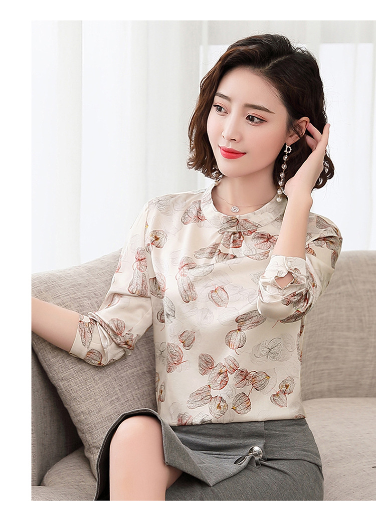 上海旗袍厂ASE-1920气质圆领个性印花长袖真丝小衫