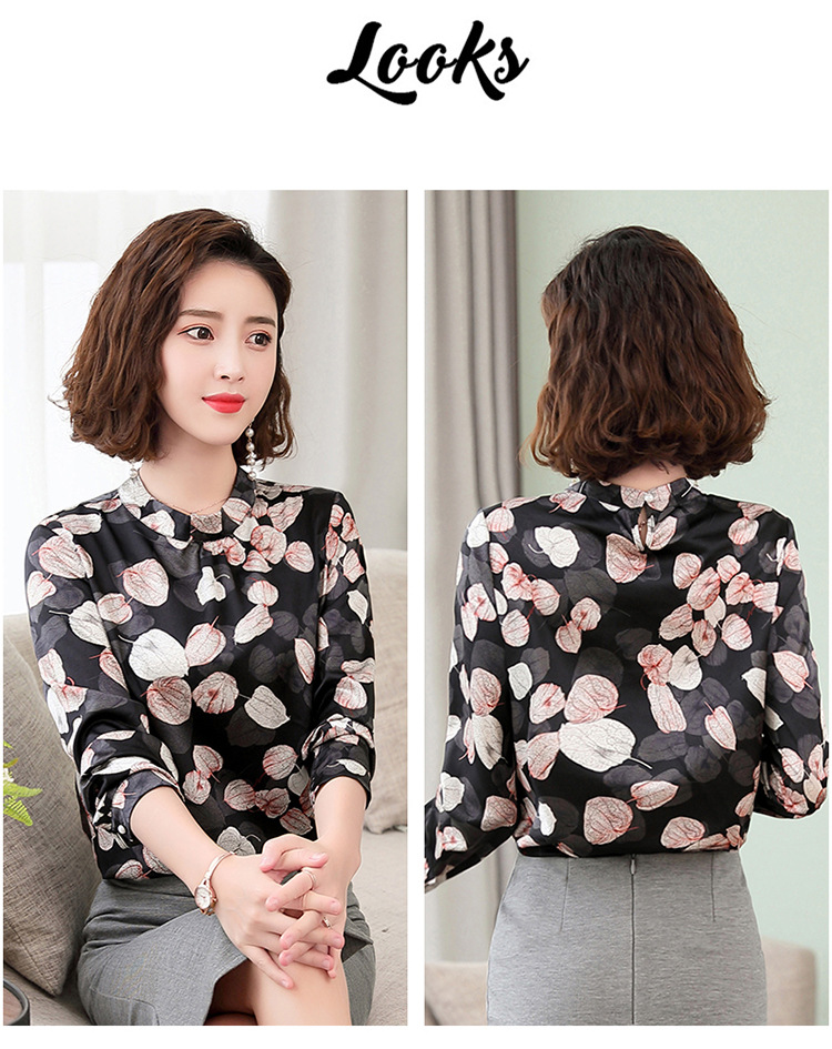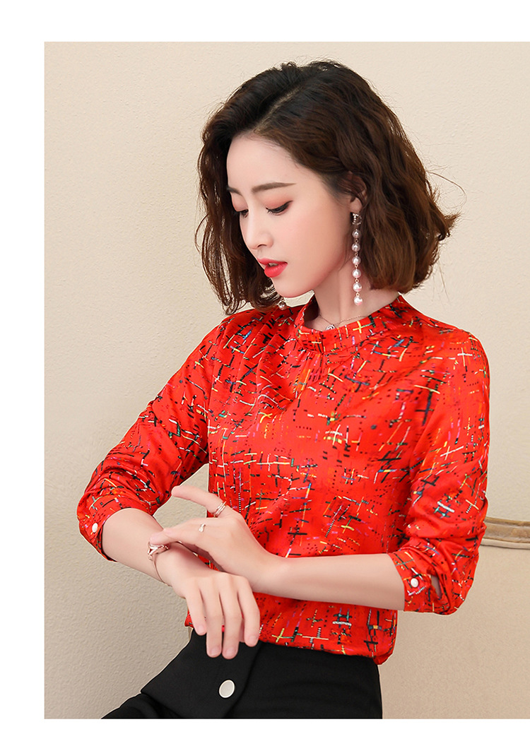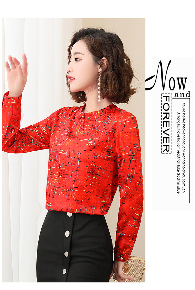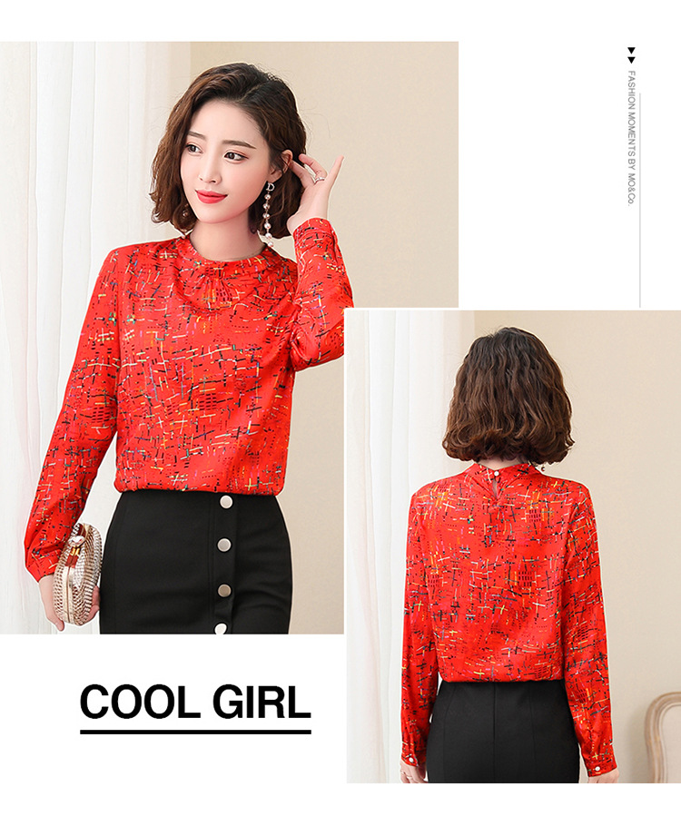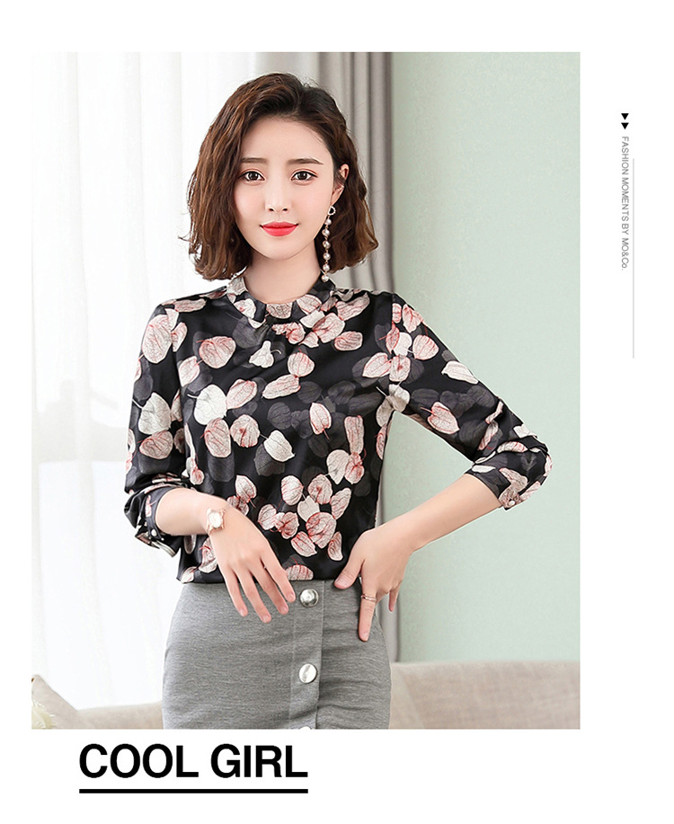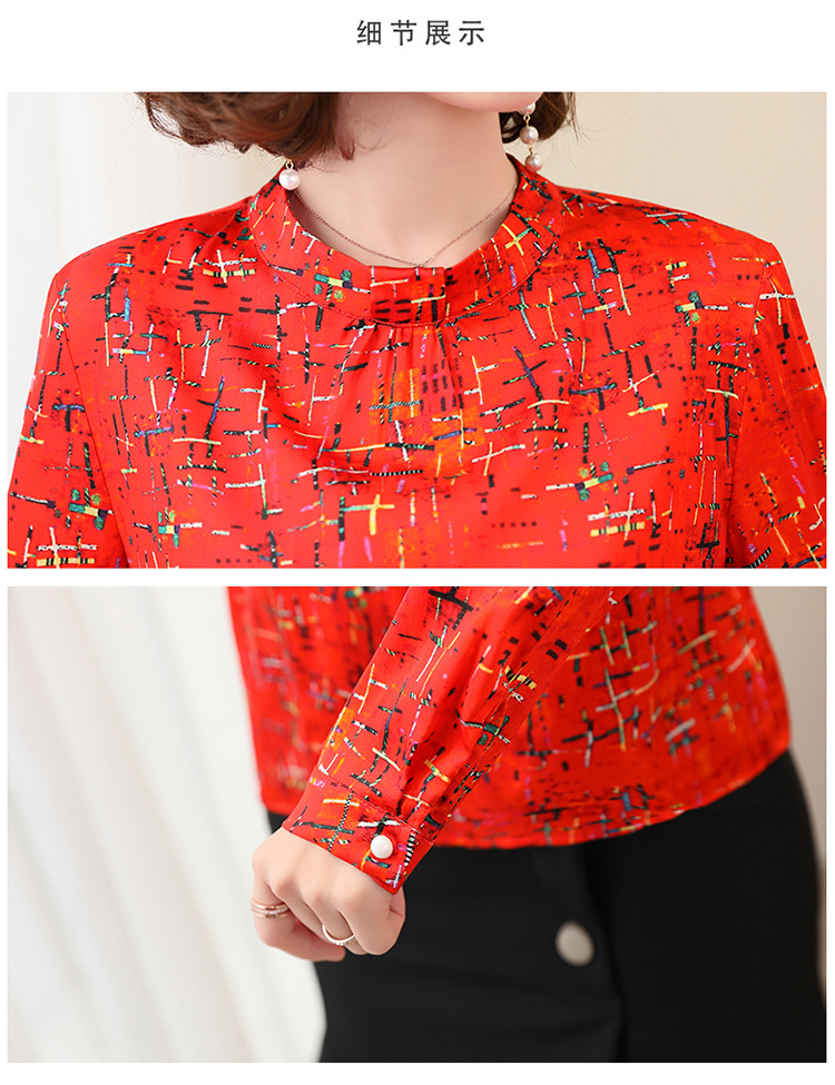 上海旗袍厂ASE-1920气质圆领个性印花长袖真丝小衫