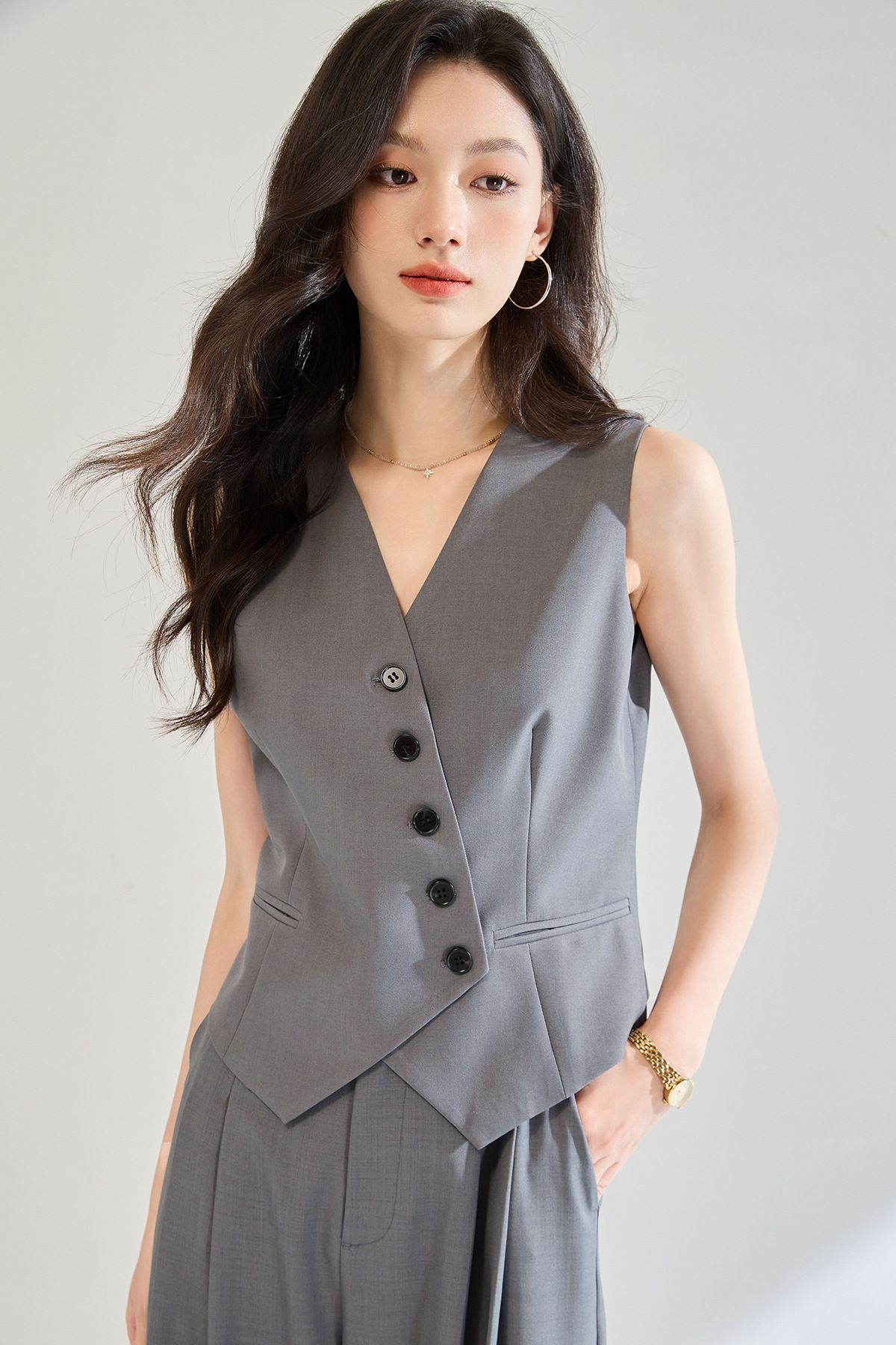 马甲设计感满满,不对称的纽扣排列增添时尚亮点,
