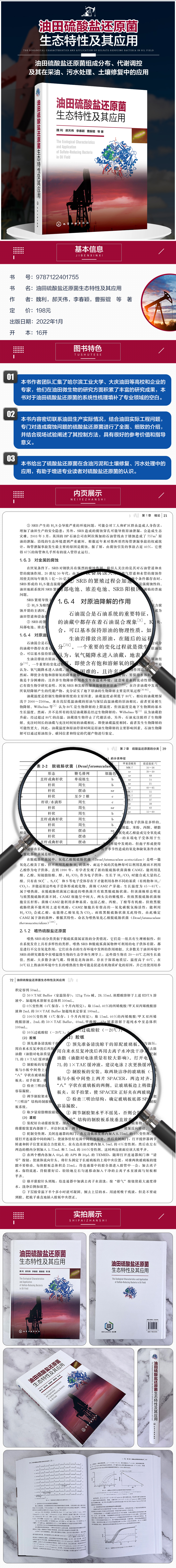 本书主要围绕油田硫酸盐还原菌展开,首先介绍了硫酸盐还原菌的分类、组成、生态分布规律及检测方法;其次介绍了硫酸盐还原菌的代谢途径和关键蛋白;再次介绍了硫酸盐还原菌的危害和控制方法;zui后介绍了硫酸盐还原菌在微生物采油、污水处理及其他环保领域的应用。 本书内容翔实、重点突出,理论与实践有机结合,具有较强的技术应用性和针对性,可供从事油田环境污染治理、油田污水处理等的工程技术人员、科研人员和管理人员参考,也可供高等学校环境工程、市政工程、生物工程及相关专业师生参阅。