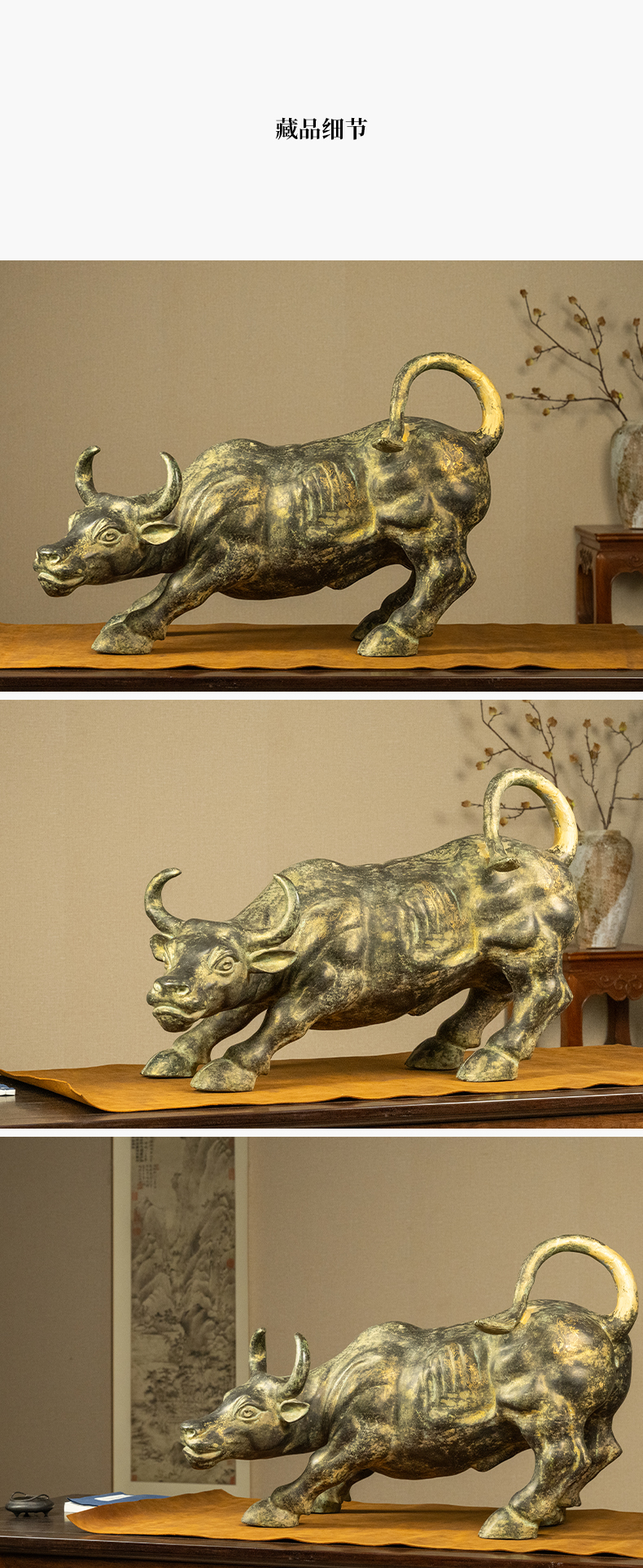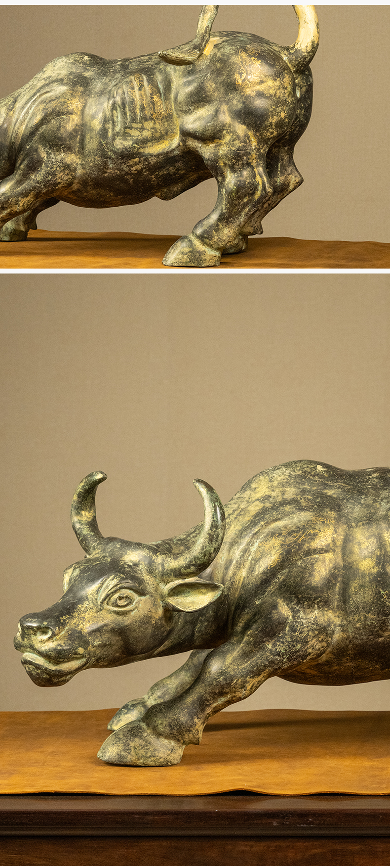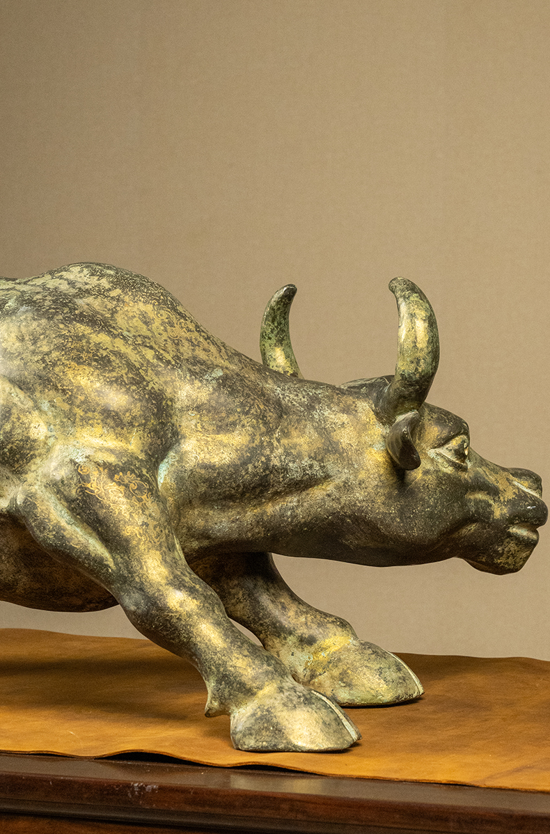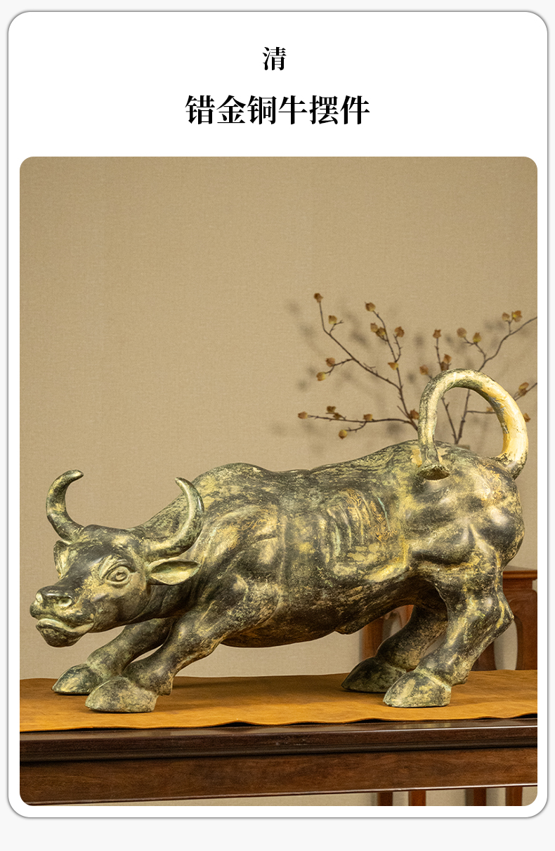 清 错金铜牛摆件