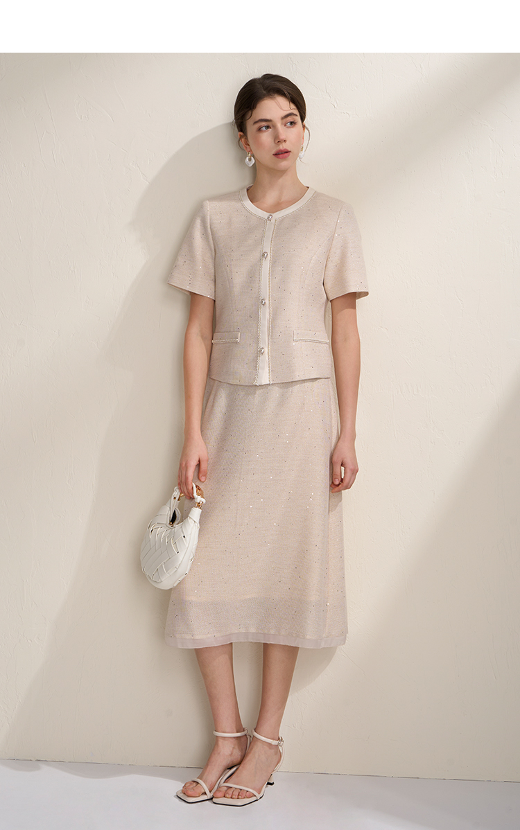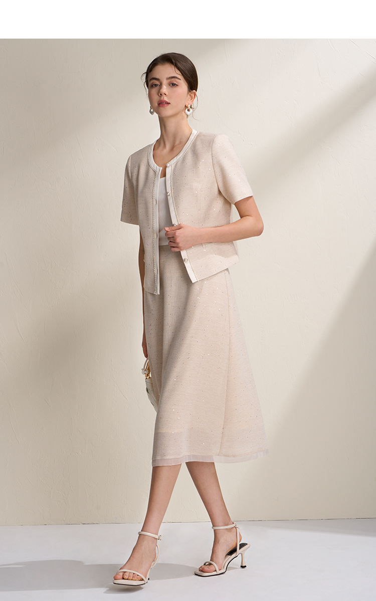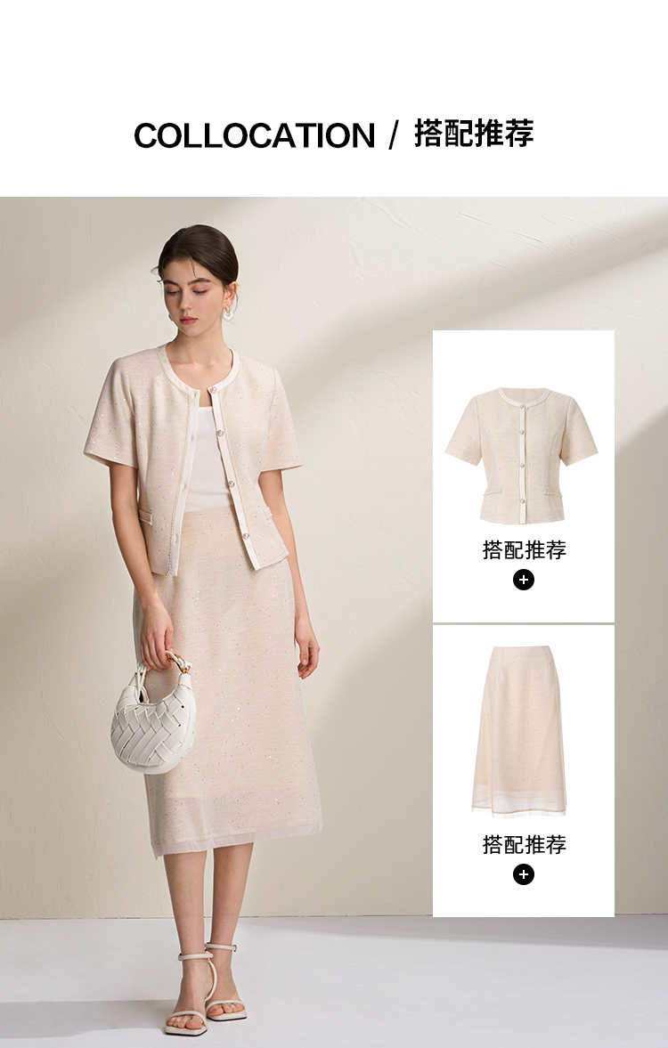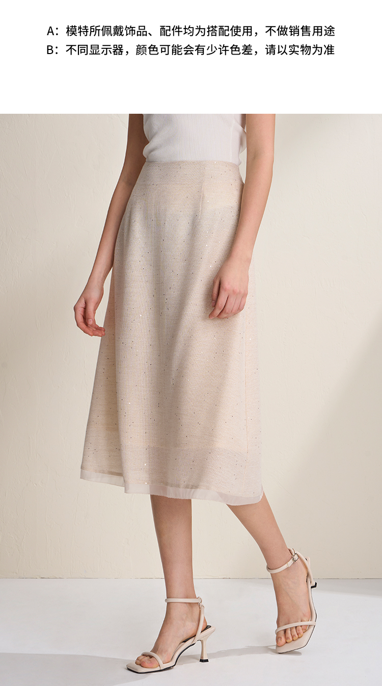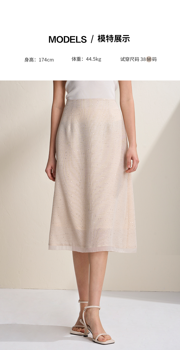 EITIE爱特爱小香风亮片优雅百搭显瘦通勤A字半身裙2026夏季新款B2606214