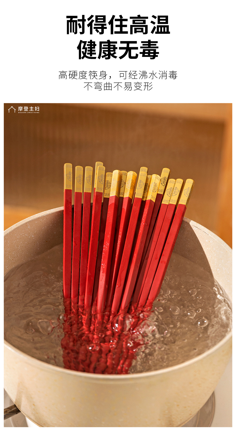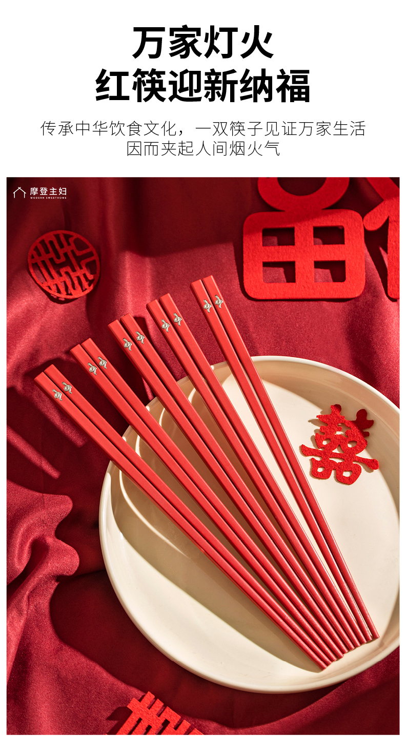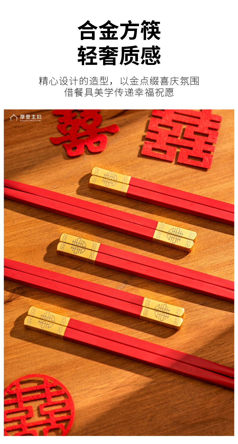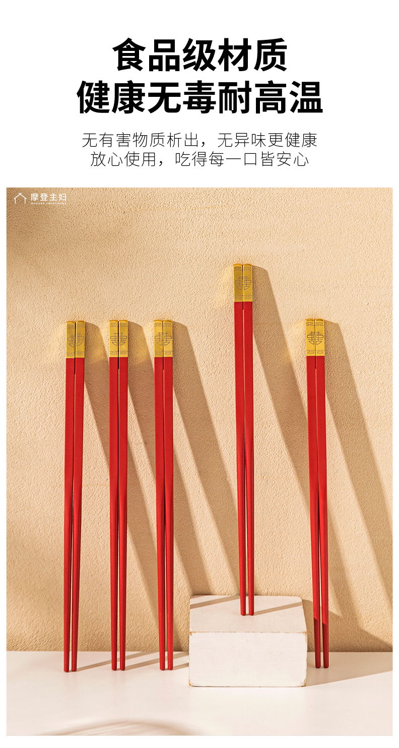 摩登主妇筷子家用高档抗菌防霉2025新款结婚新年福字合金筷子餐具
