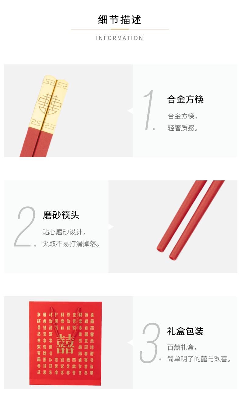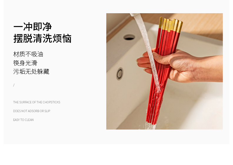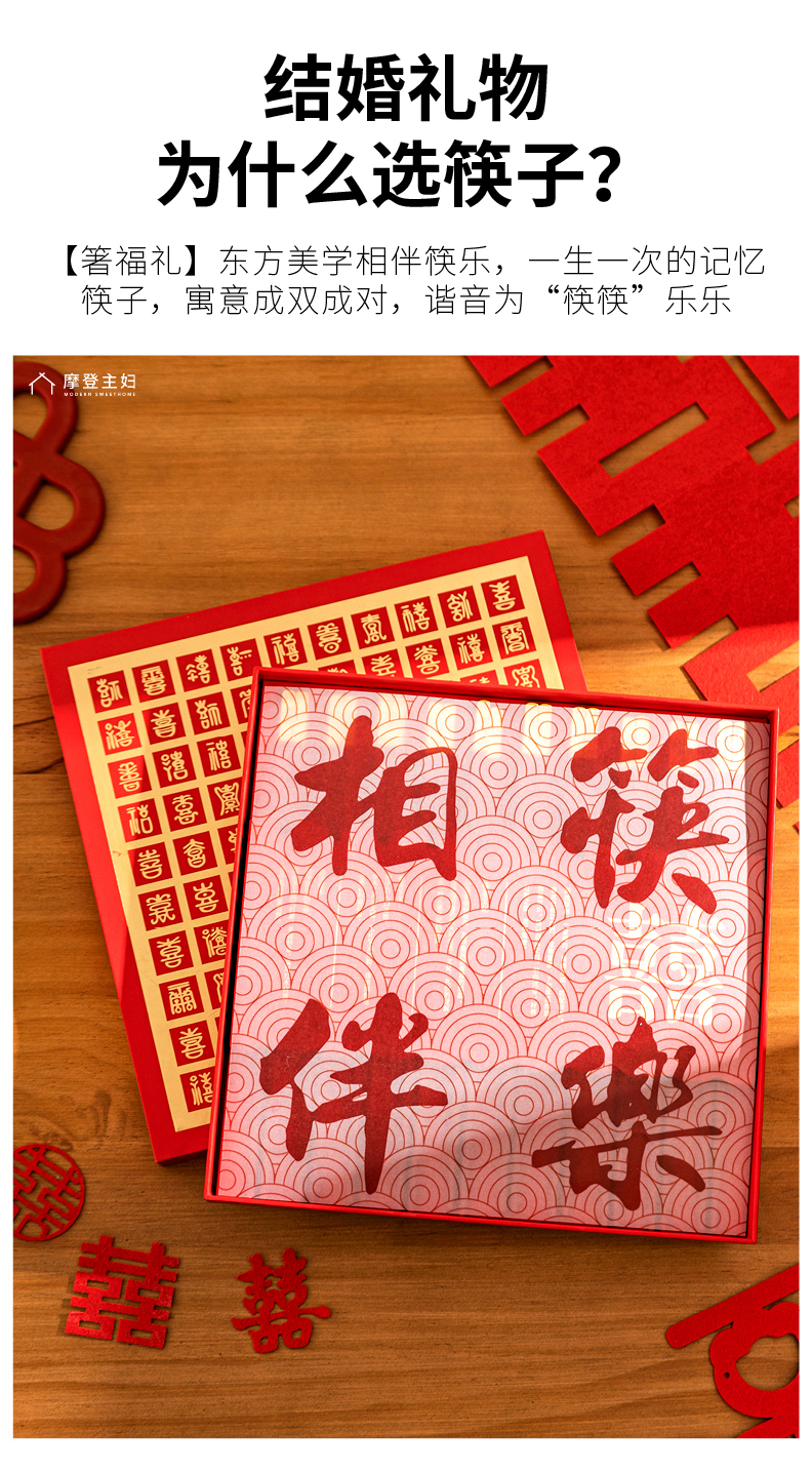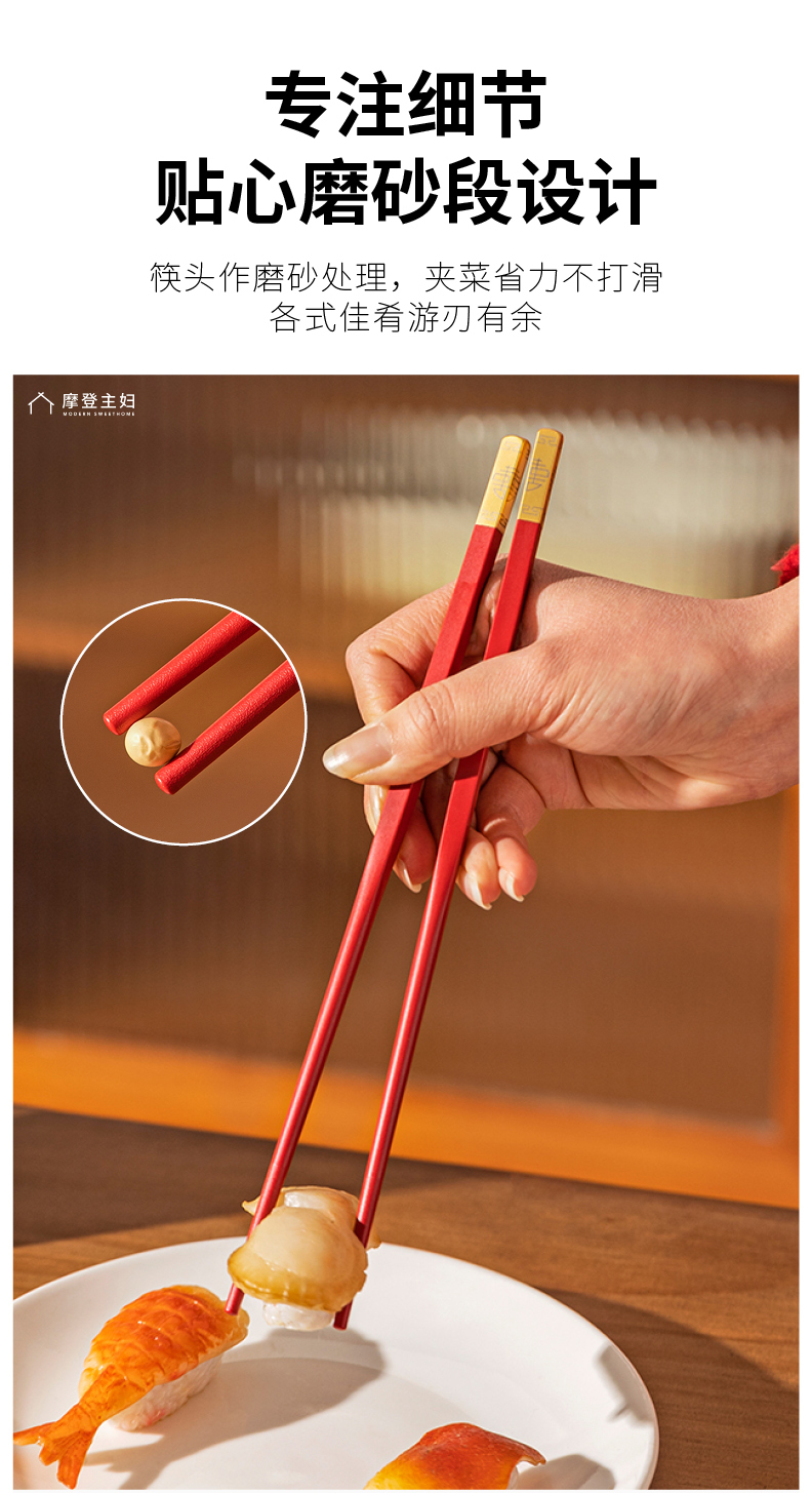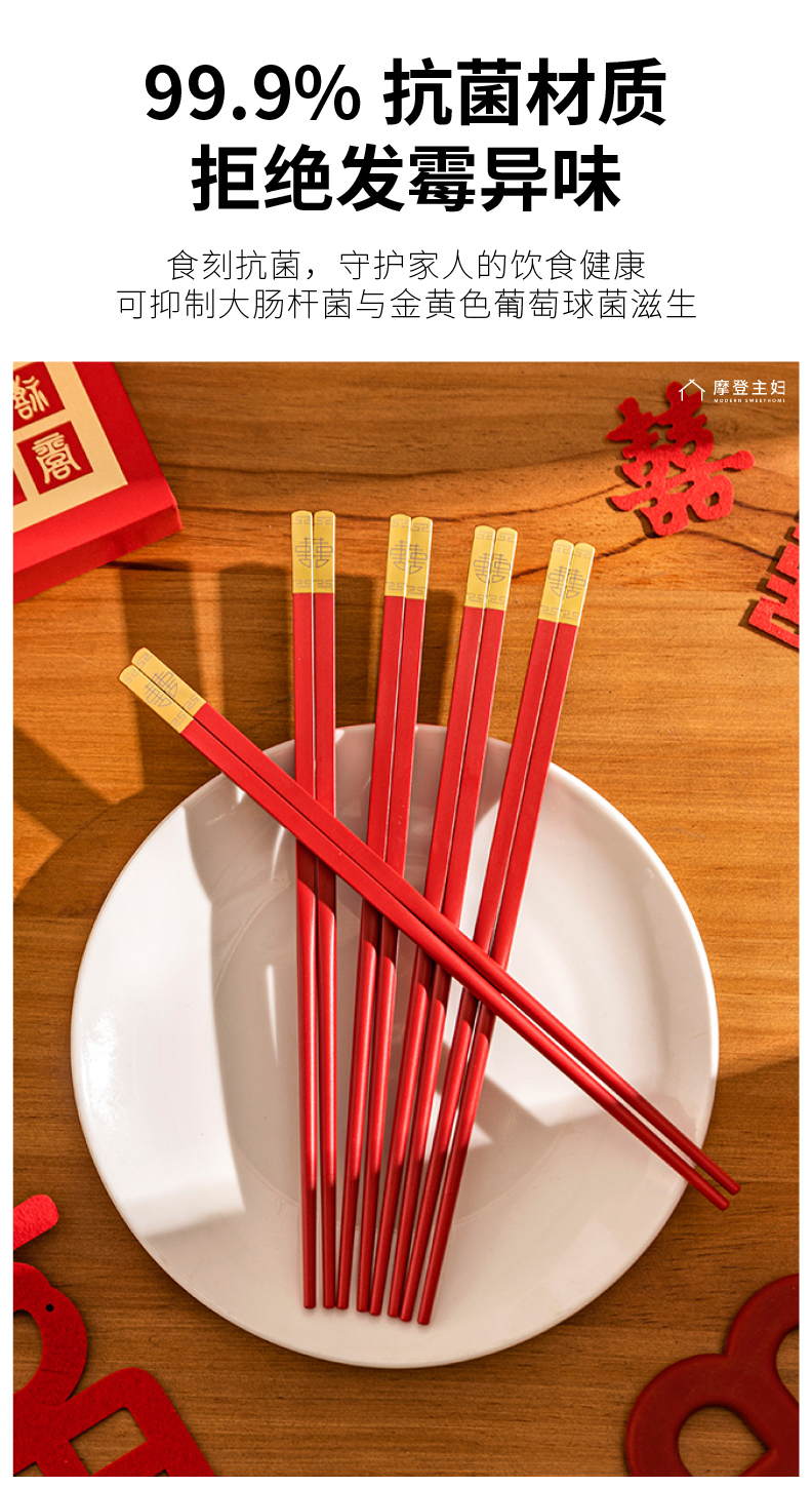 摩登主妇筷子家用高档抗菌防霉2025新款结婚新年福字合金筷子餐具