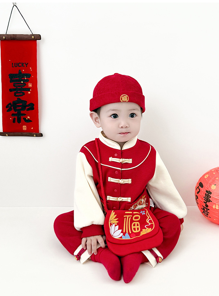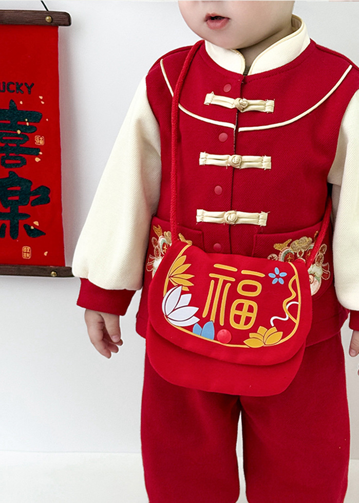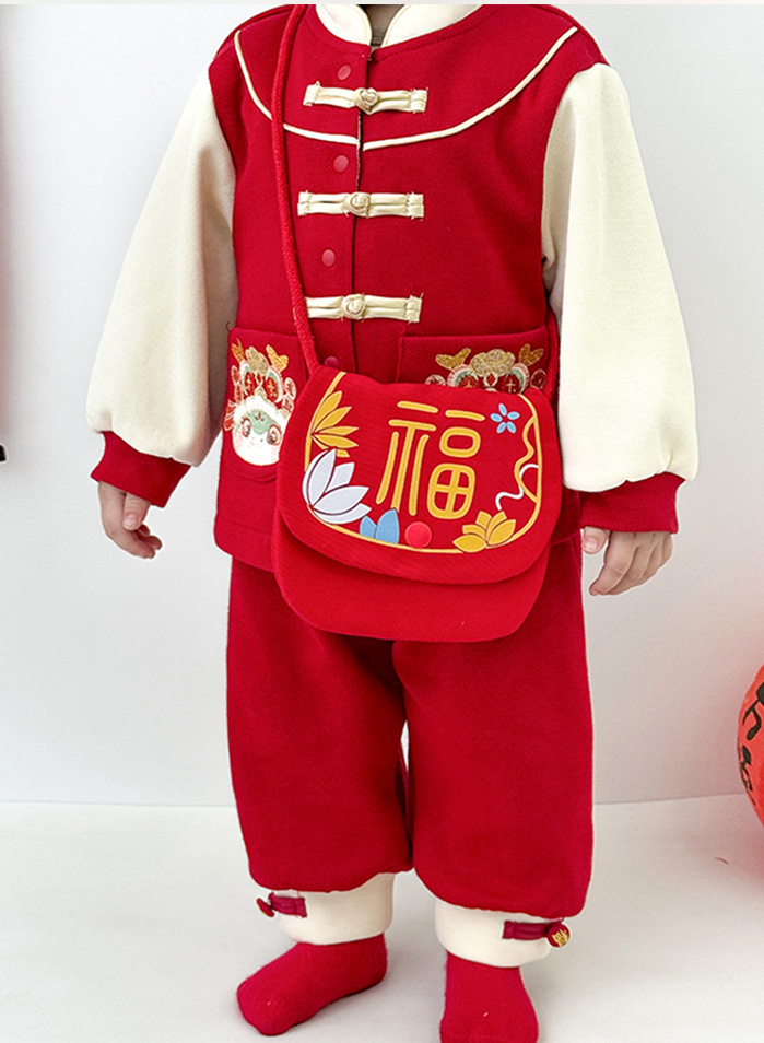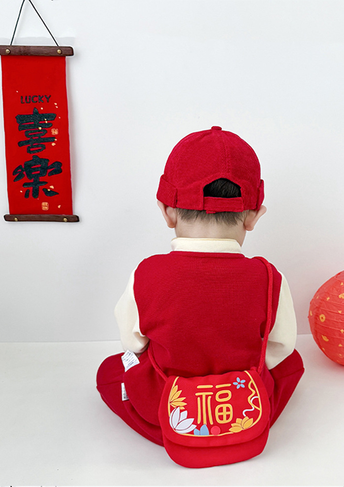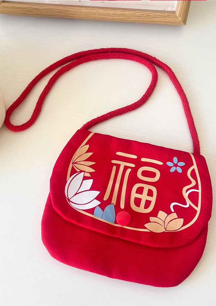 雀说 新年拜年包包儿童婴儿红色新年压岁钱包喜庆国风斜挎包宝宝零钱包5ZF-10509