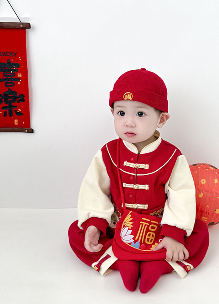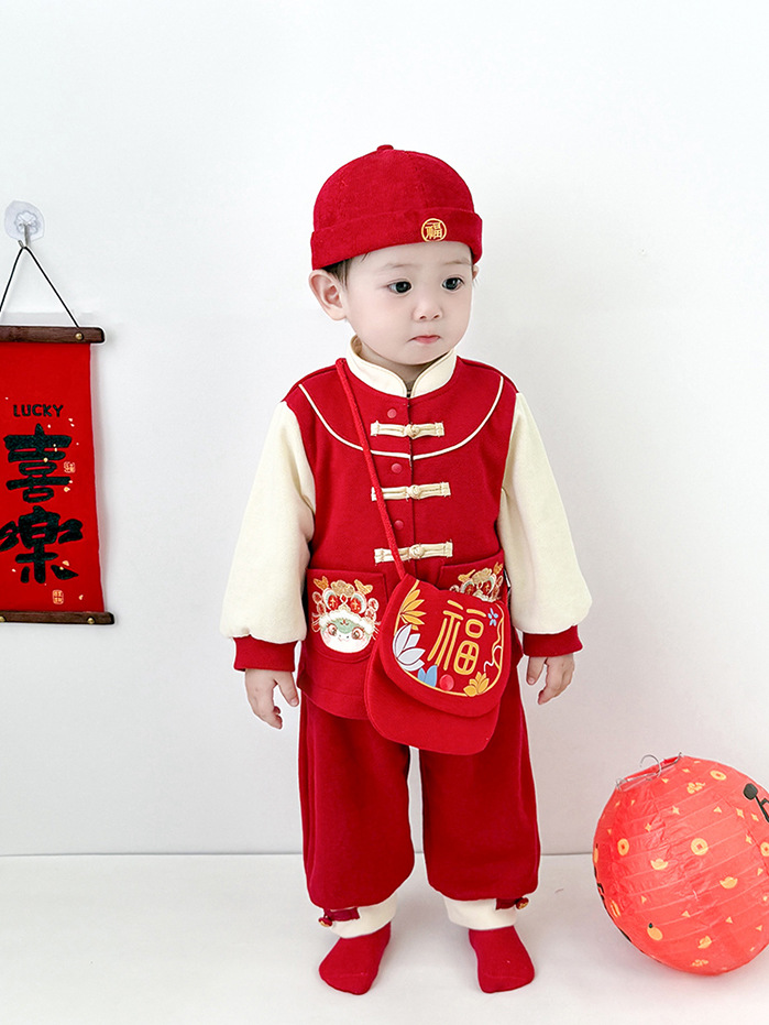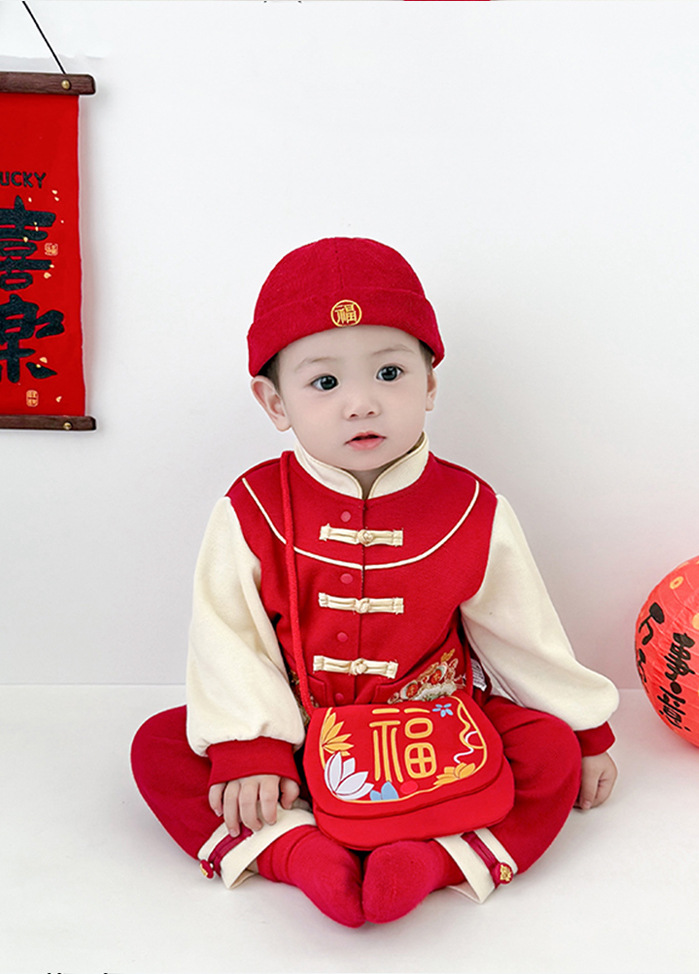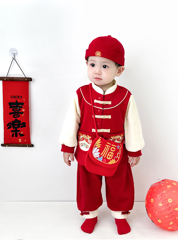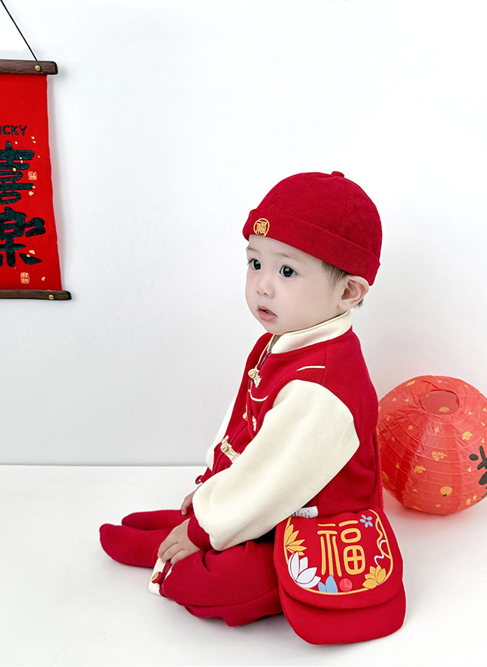 雀说 新年拜年包包儿童婴儿红色新年压岁钱包喜庆国风斜挎包宝宝零钱包5ZF-10509