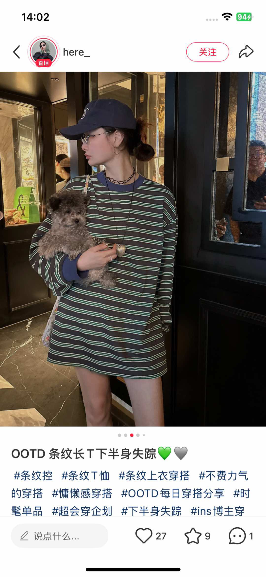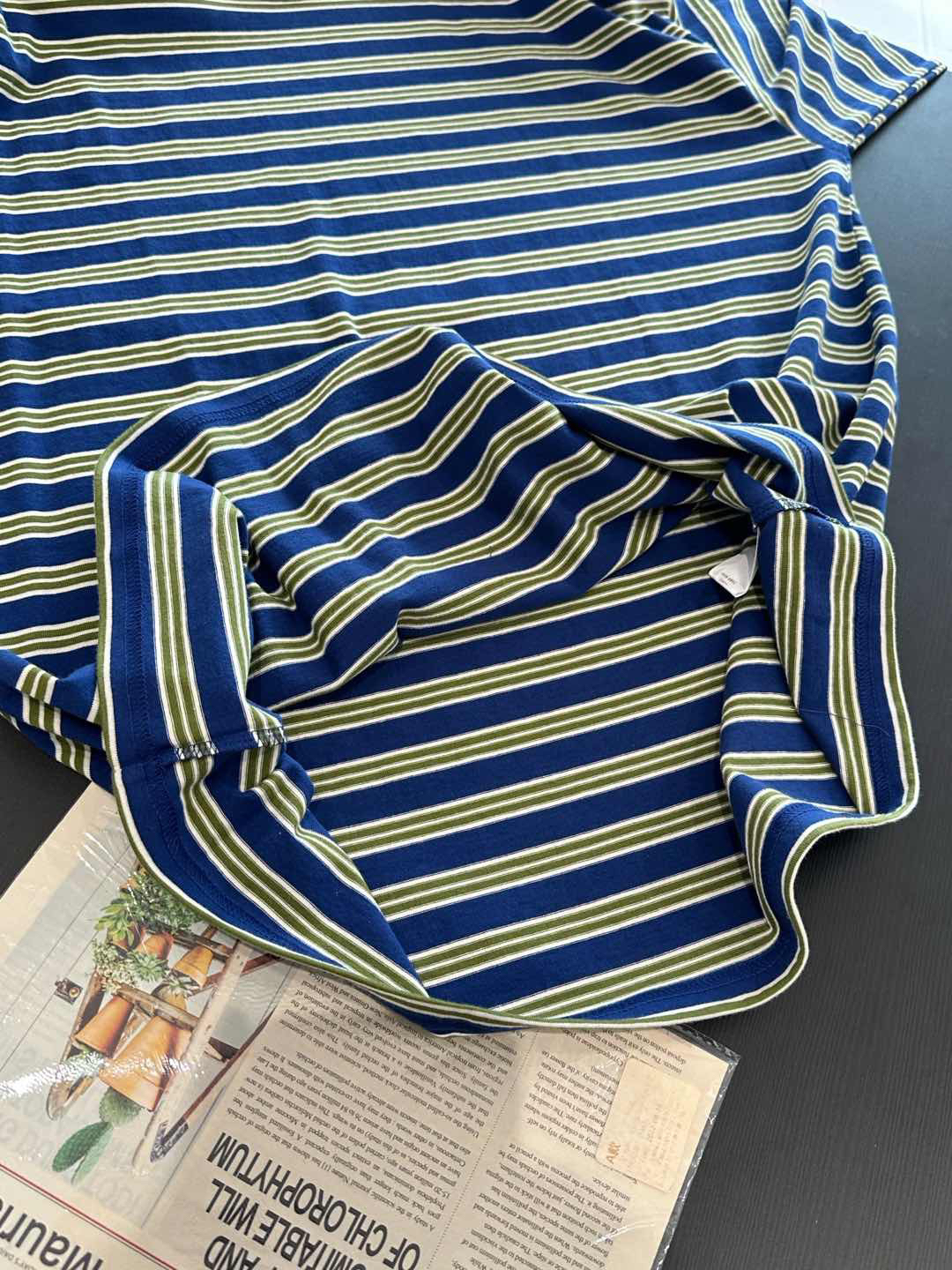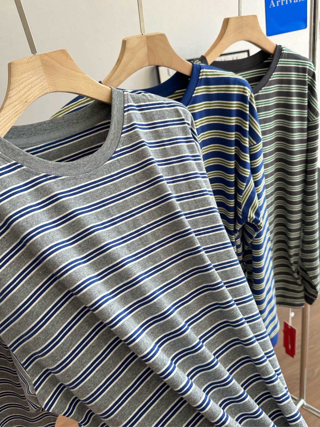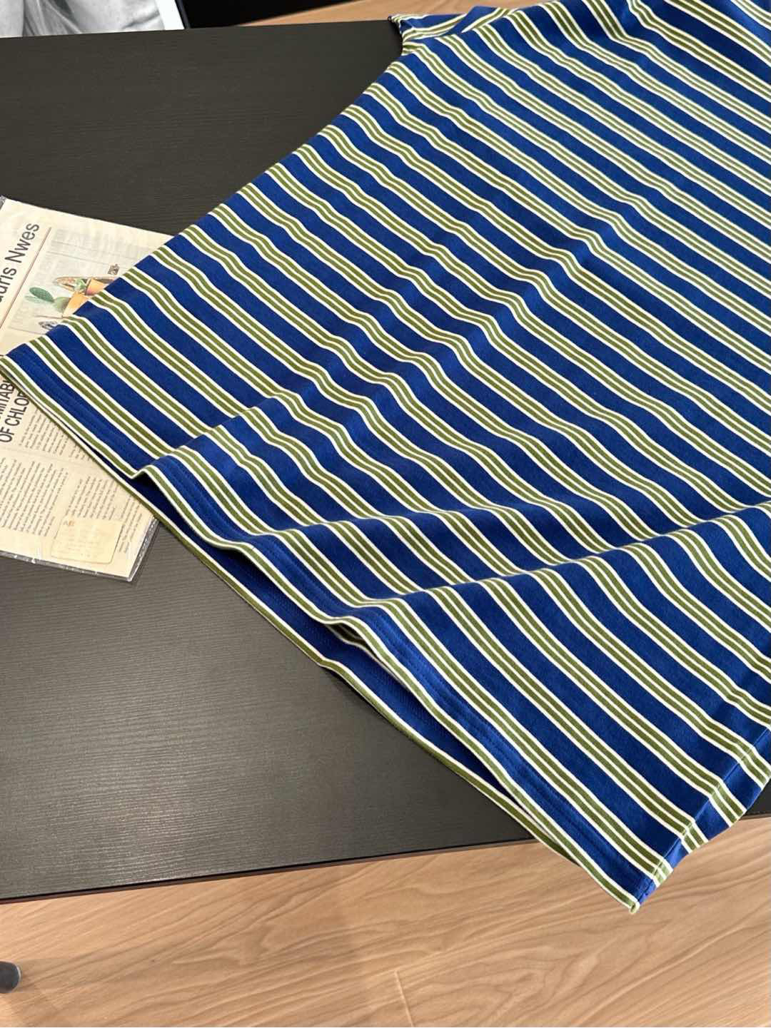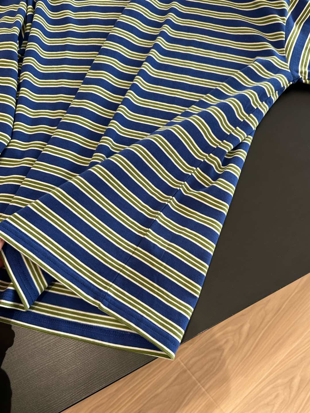 180g纯棉质感肌理面料,亲肤舒适不刺激皮肤,质地细腻柔软有骨感,具有良好的透气吸湿性不起球不变形,带有弹力,上身轻松无束缚感,条纹视觉上也有显瘦的效果,质感很good👍🏻面料做工都是相当精致,底边本布锁边工艺,二本车工走线,针码缜密紧实,侧缝拼接对条工艺,细节感满分!