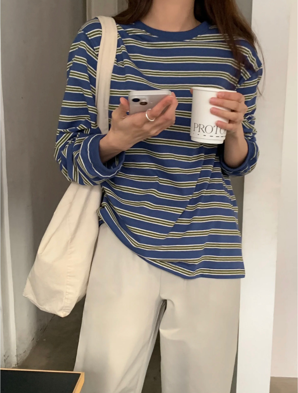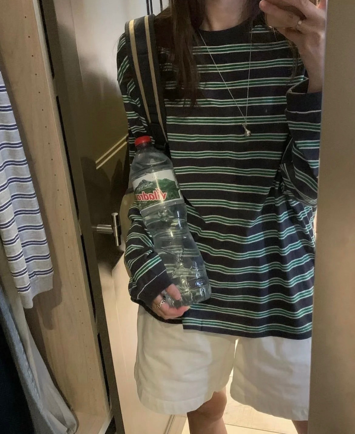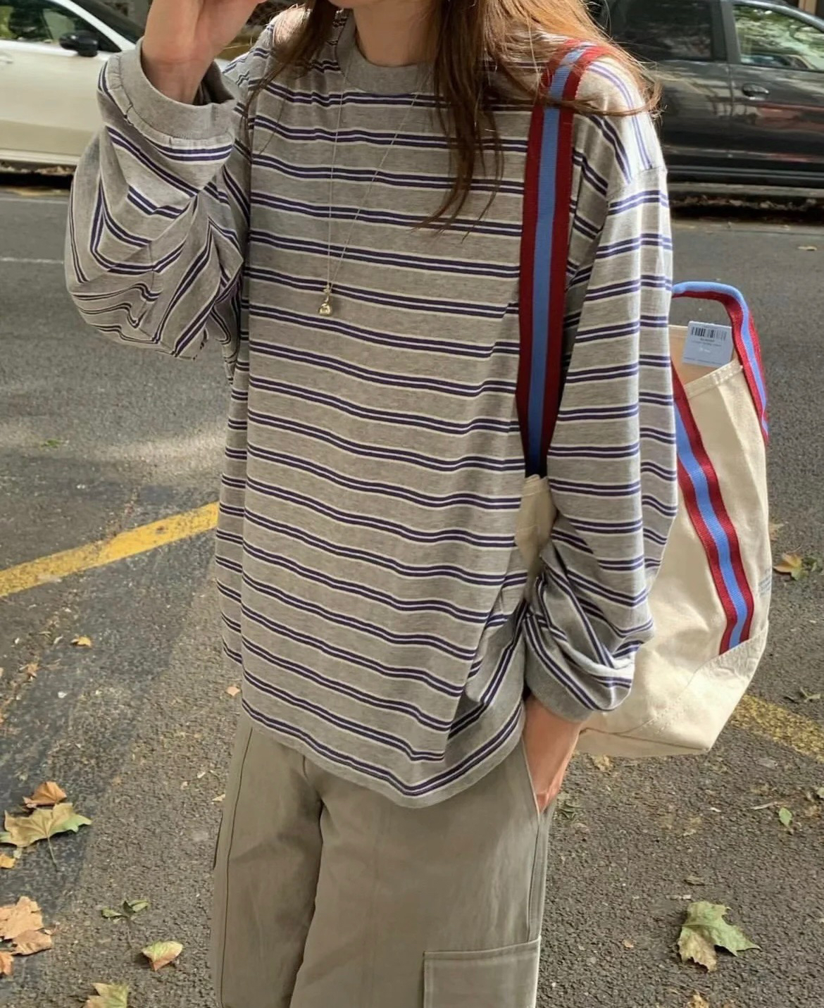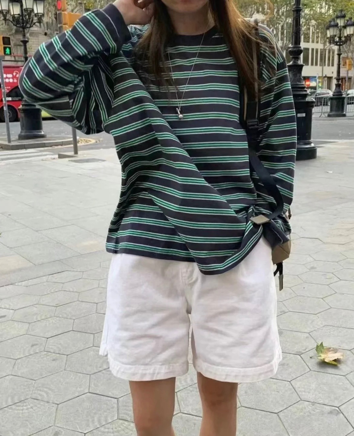 🔺经典条纹元素长袖T恤万金油”单品miu系学院风,轻松减龄条纹tee我和青春有个约定~ over size版型,对各种身材的姐妹都超级友好,无论你是娇小可爱,还是高挑修长,它都能轻松容纳你的美丽,微胖的姐妹也完全不用担心,