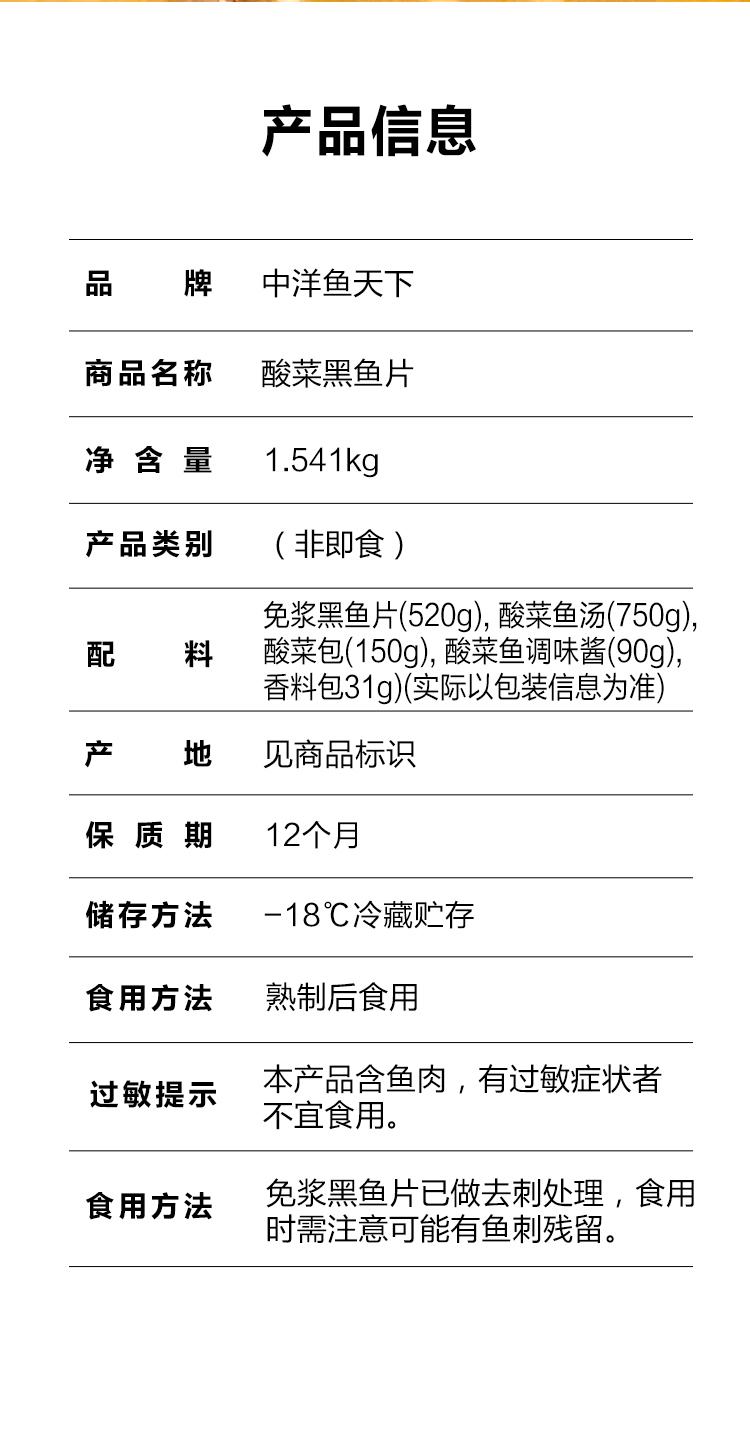 中洋鱼天下 速冻老坛酸菜鱼1.541kg 快手菜配料包