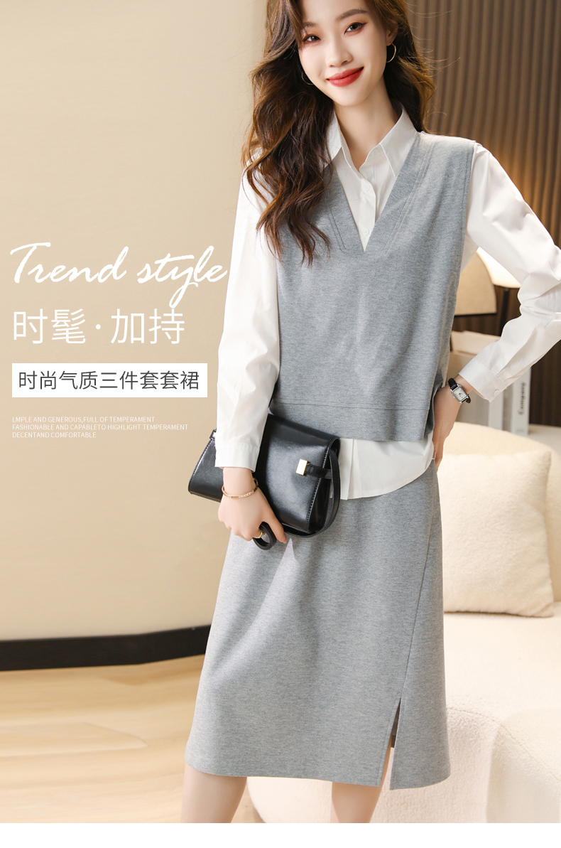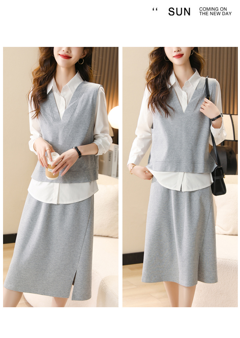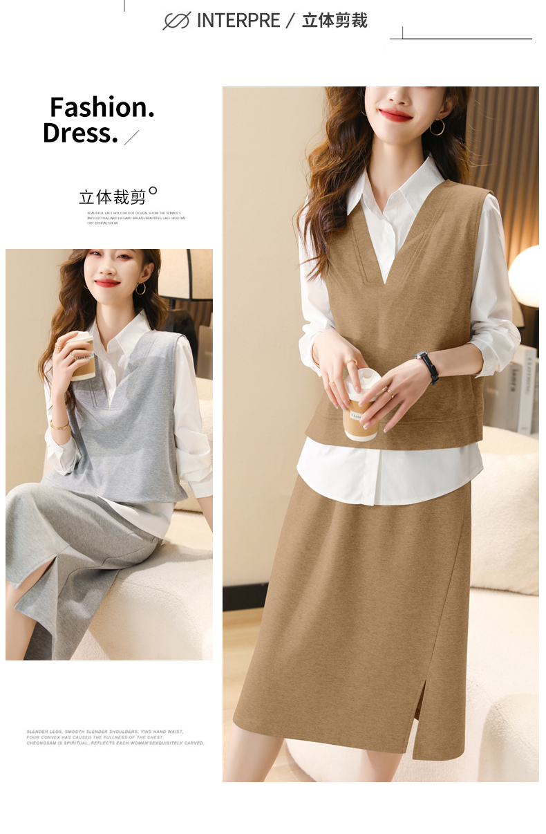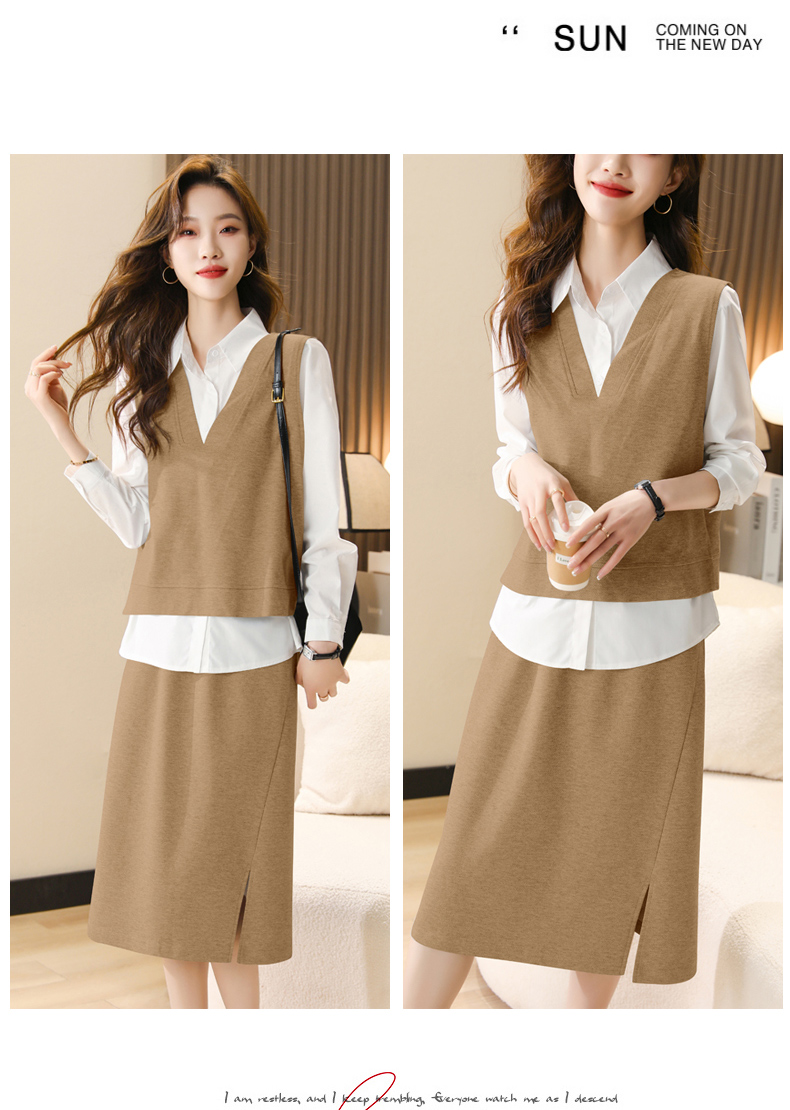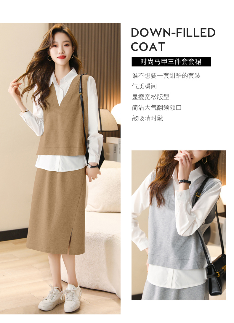 时尚休闲,气质马甲衬衣半身裙三件套HR-XSILU2301
