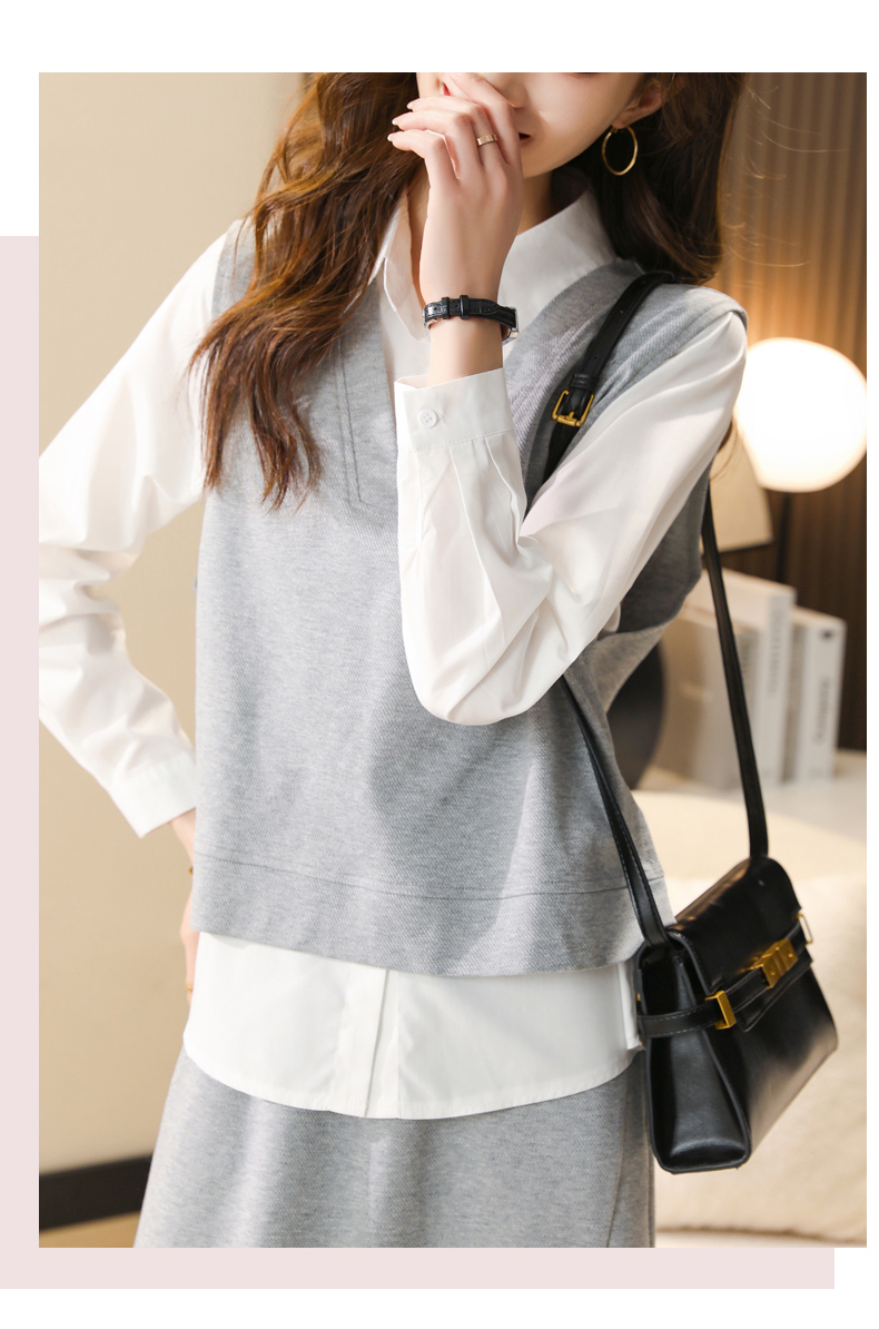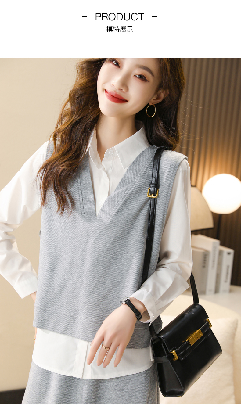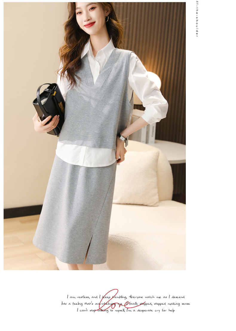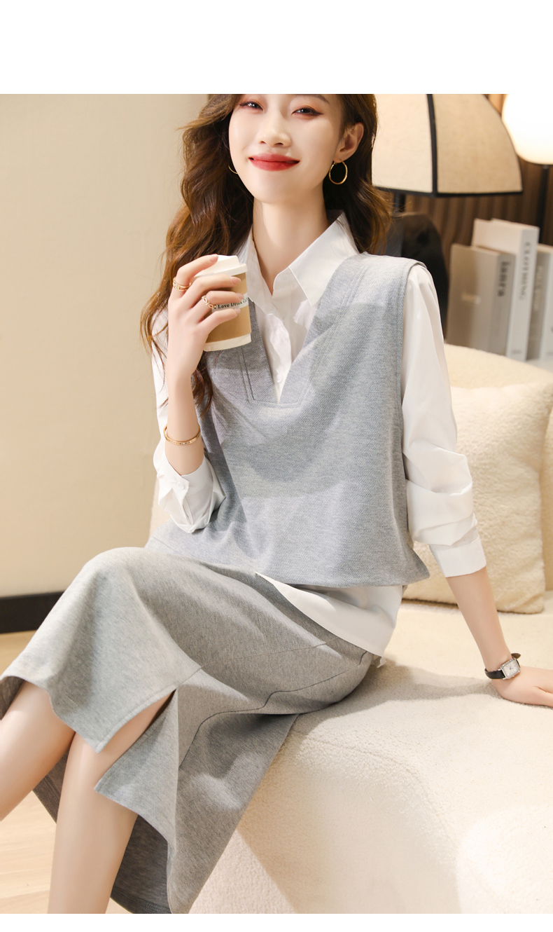 时尚休闲,气质马甲衬衣半身裙三件套HR-XSILU2301