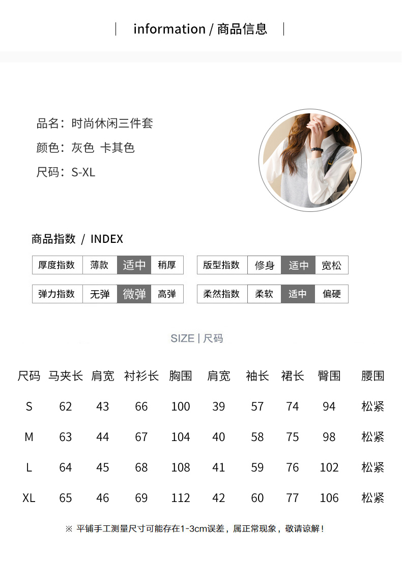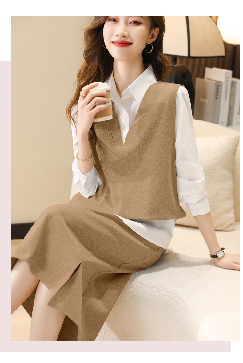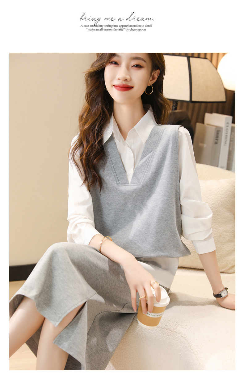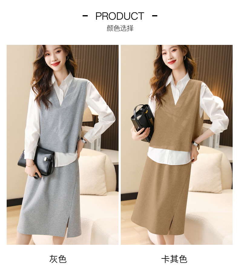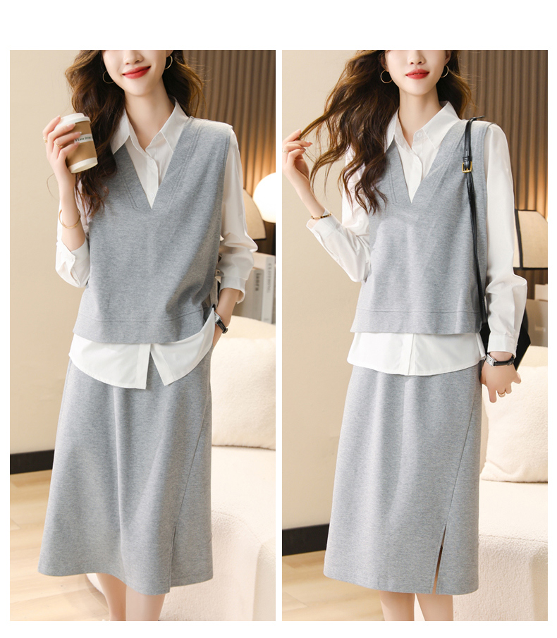 时尚休闲,气质马甲衬衣半身裙三件套HR-XSILU2301