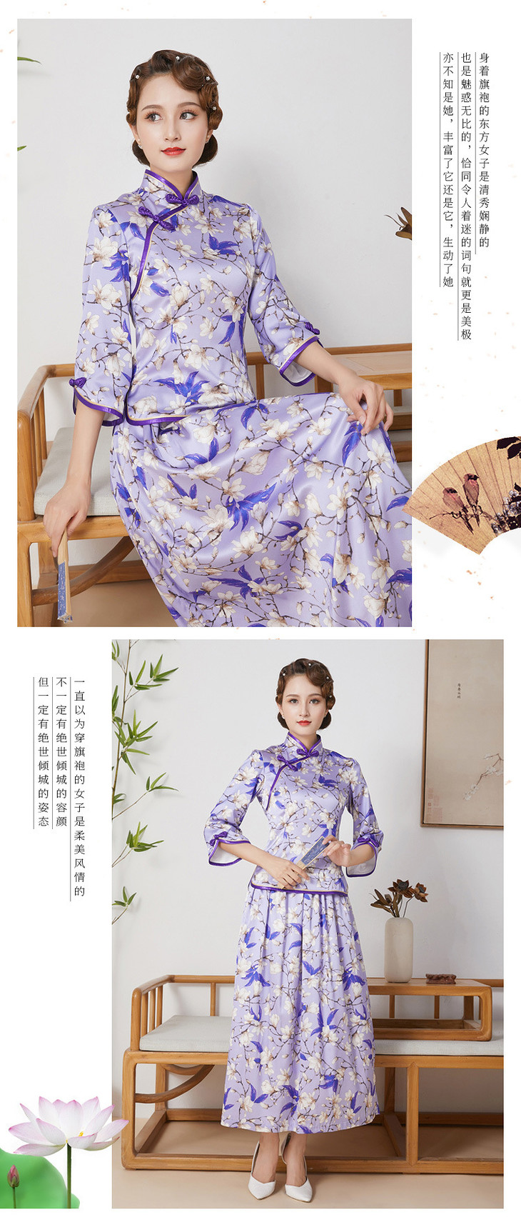 FD-QC1697943新款真丝长款手工盘扣旗袍