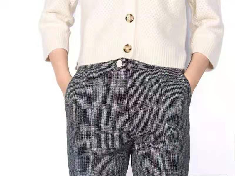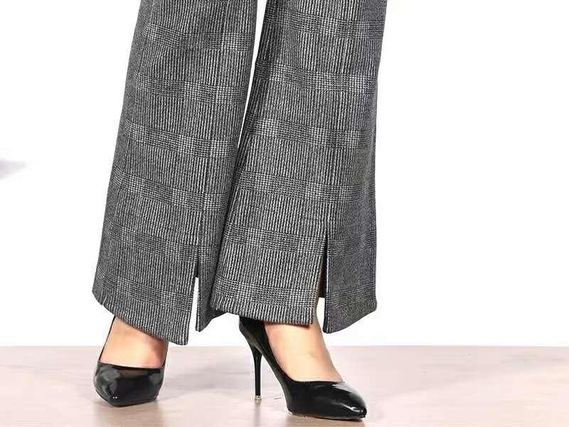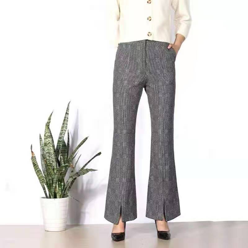 韵魅格纹休闲微喇叭裤