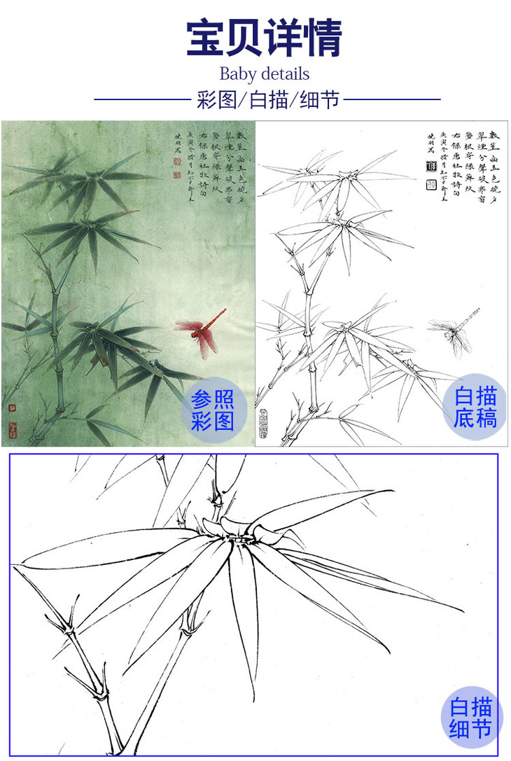 李晓明工笔花鸟白描底稿-梅兰竹菊四册页之三-斗方小品册页-K126