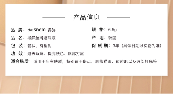 【门店直发】得鲜(the saem) 遮瑕液6.5g