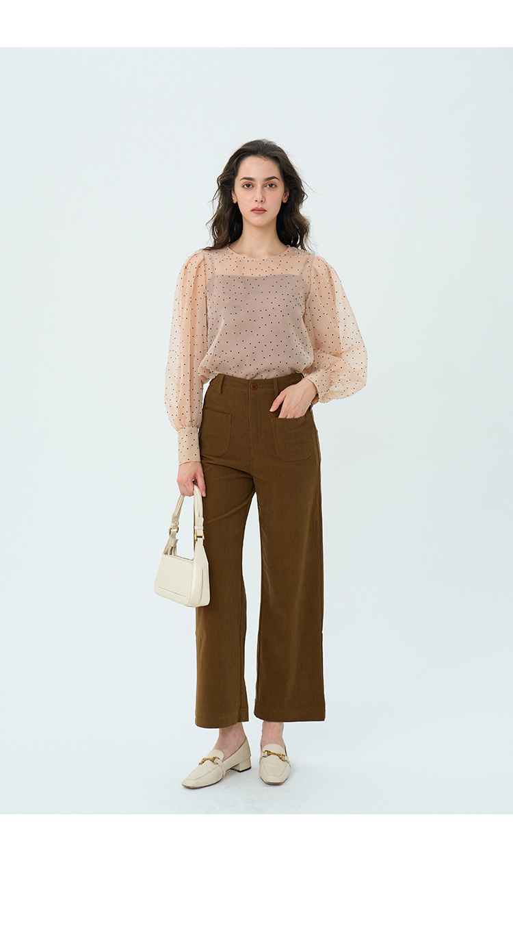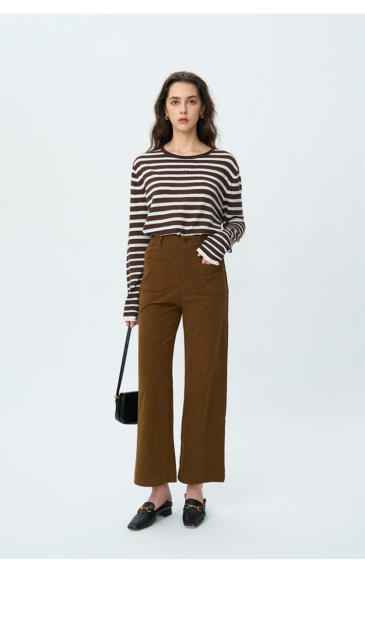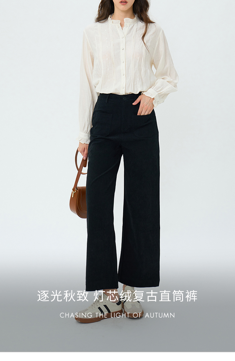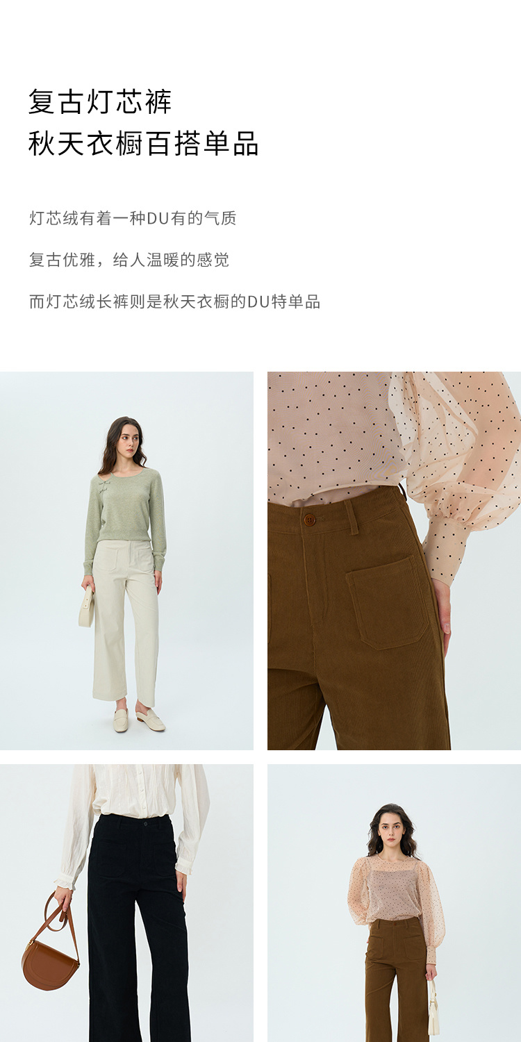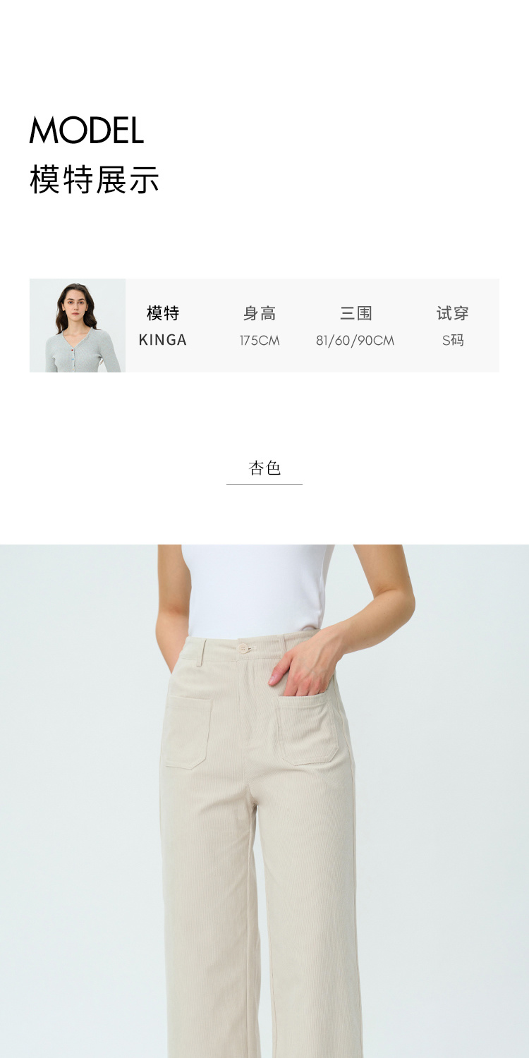 【周四精选福利】HeyDress复古灯芯绒休闲裤高腰宽松直筒裤双前兜设计感裤子