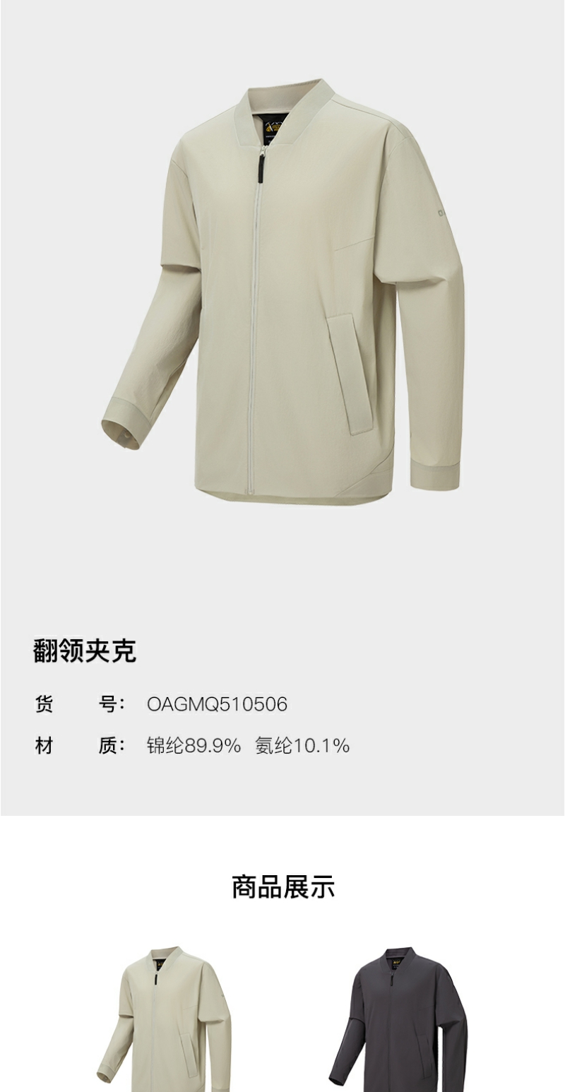 OZARK奥索卡2025春夏新品立领夹克梭织外套男休闲上衣OAGMQ510506