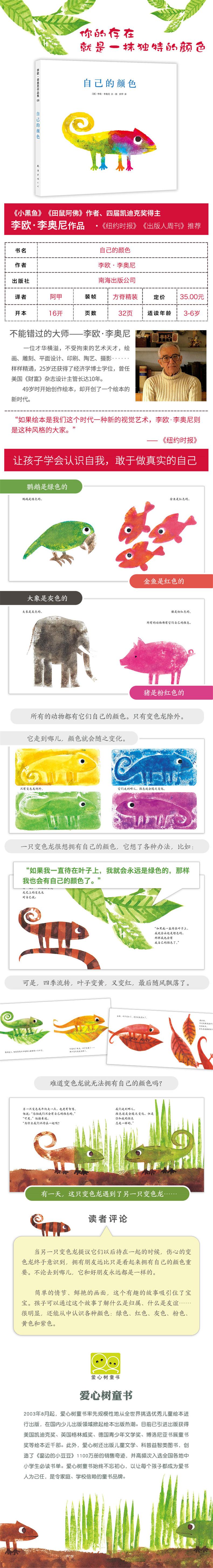 变色龙很苦恼,因为他没有自己的颜色,他总是走到哪儿,颜色就变成什么样。有一天,他遇见了另外一只变色龙,他们约定:既然改变不了现实的条件,就一起改变身上的颜色。从此以后,两只变色龙过上了快乐而满足的生活……