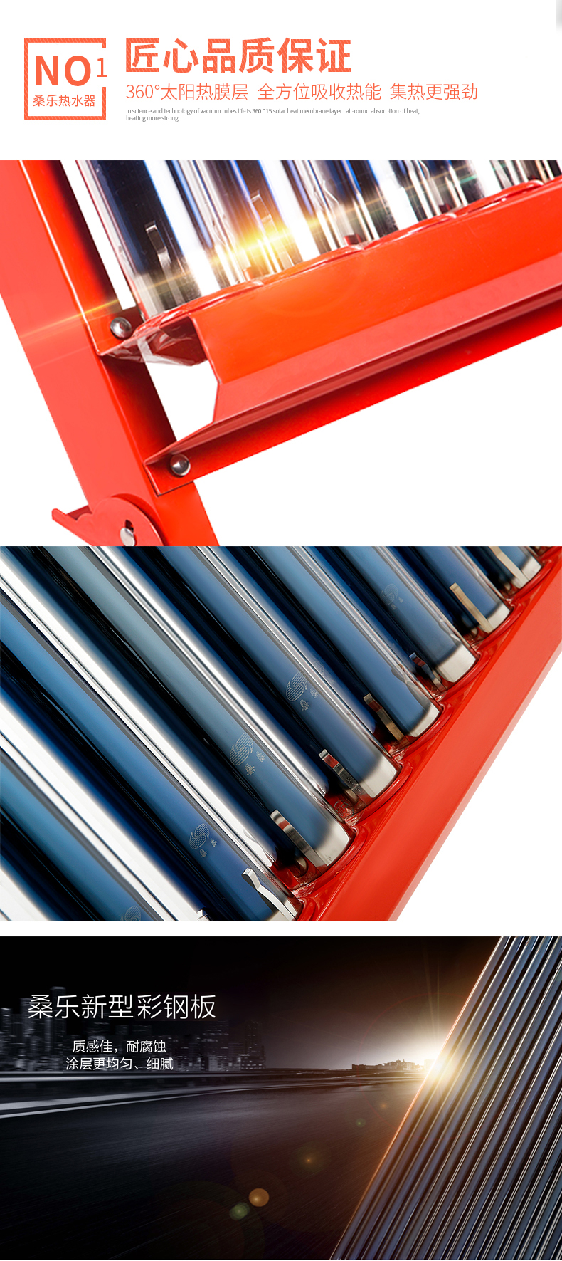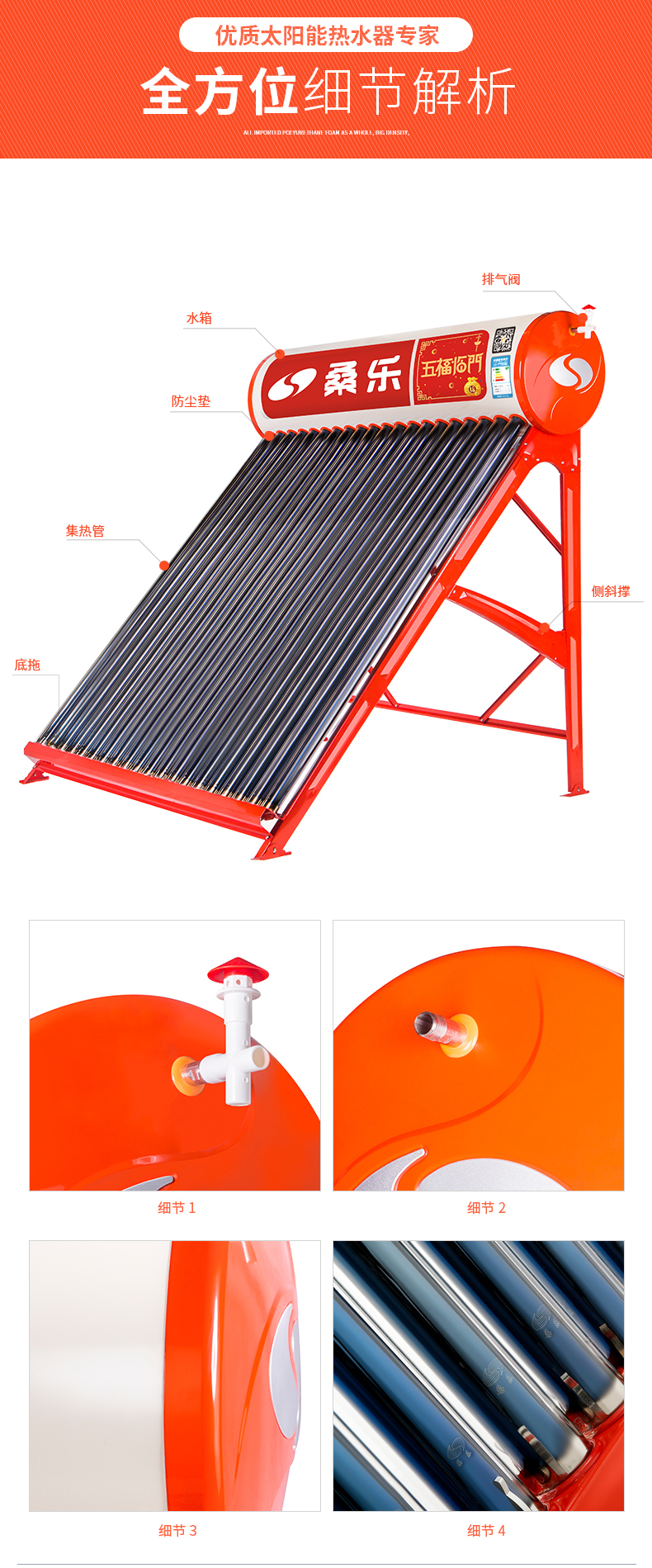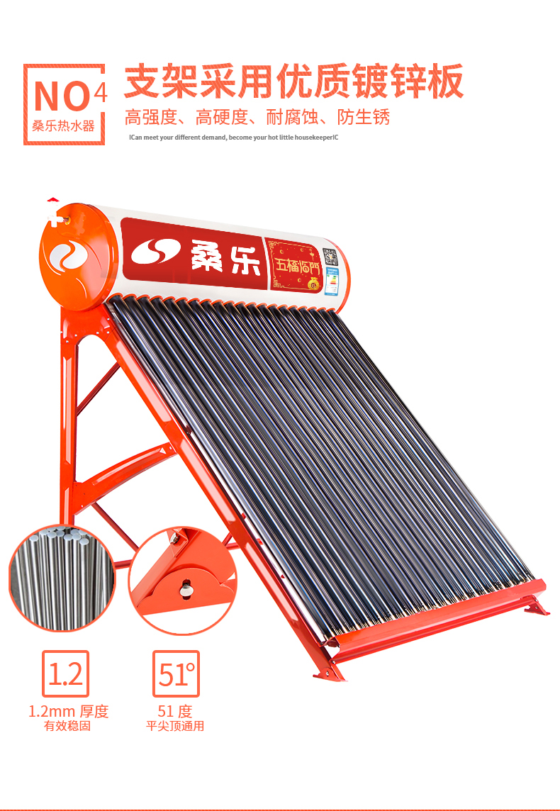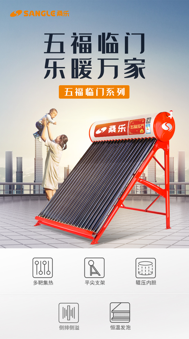 桑乐(SANGLE)太阳能热水器家用 五福临门 火红机身,金色铭文,辊压内胆,整发保温,高规集热