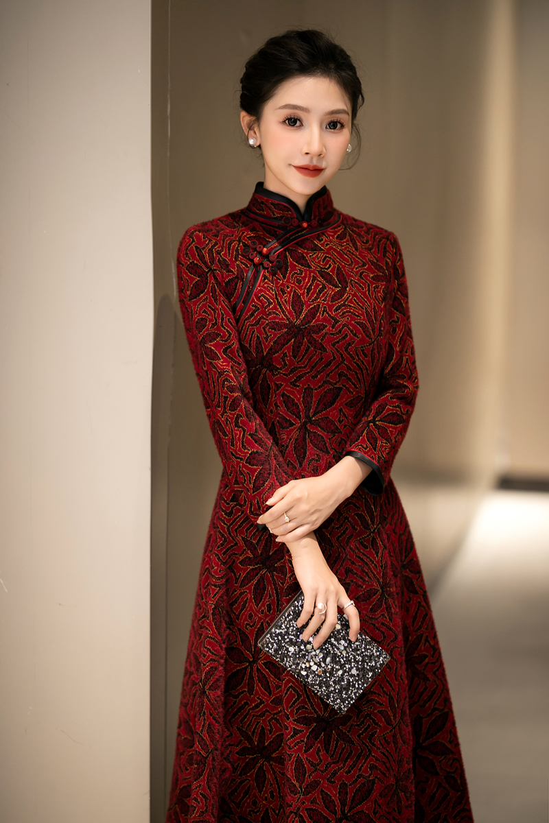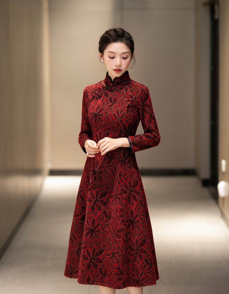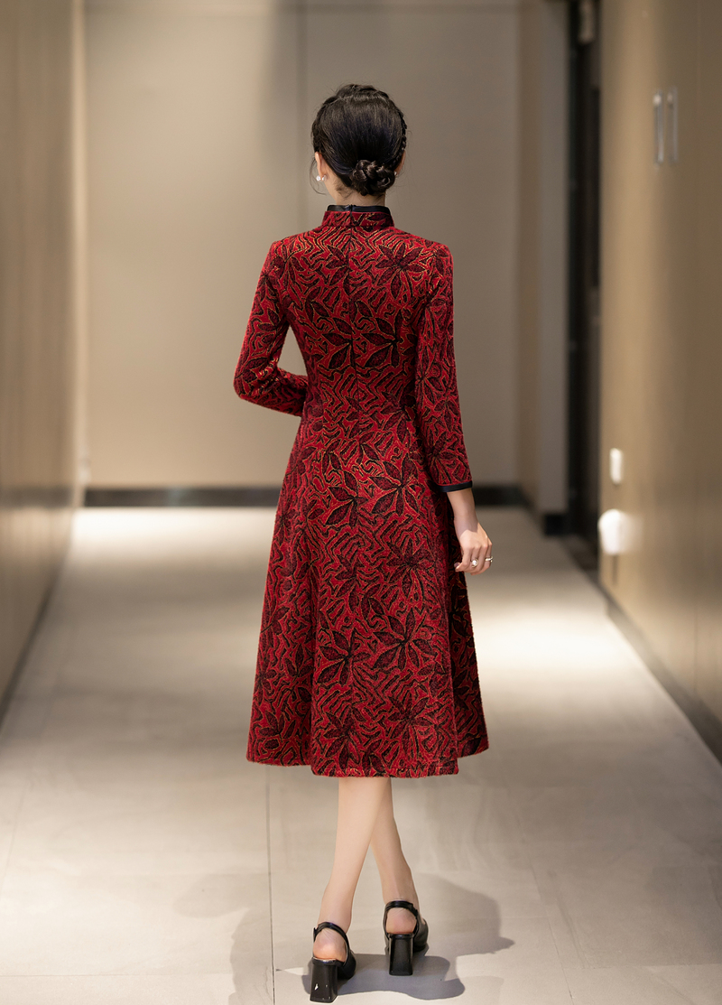 TQX39505秋冬2023新款复古连衣裙女高档妈妈装改良旗袍中国风日常穿中长款