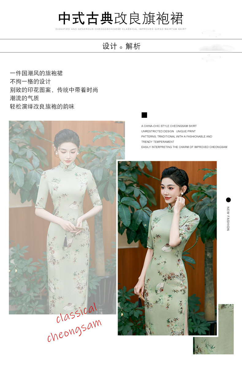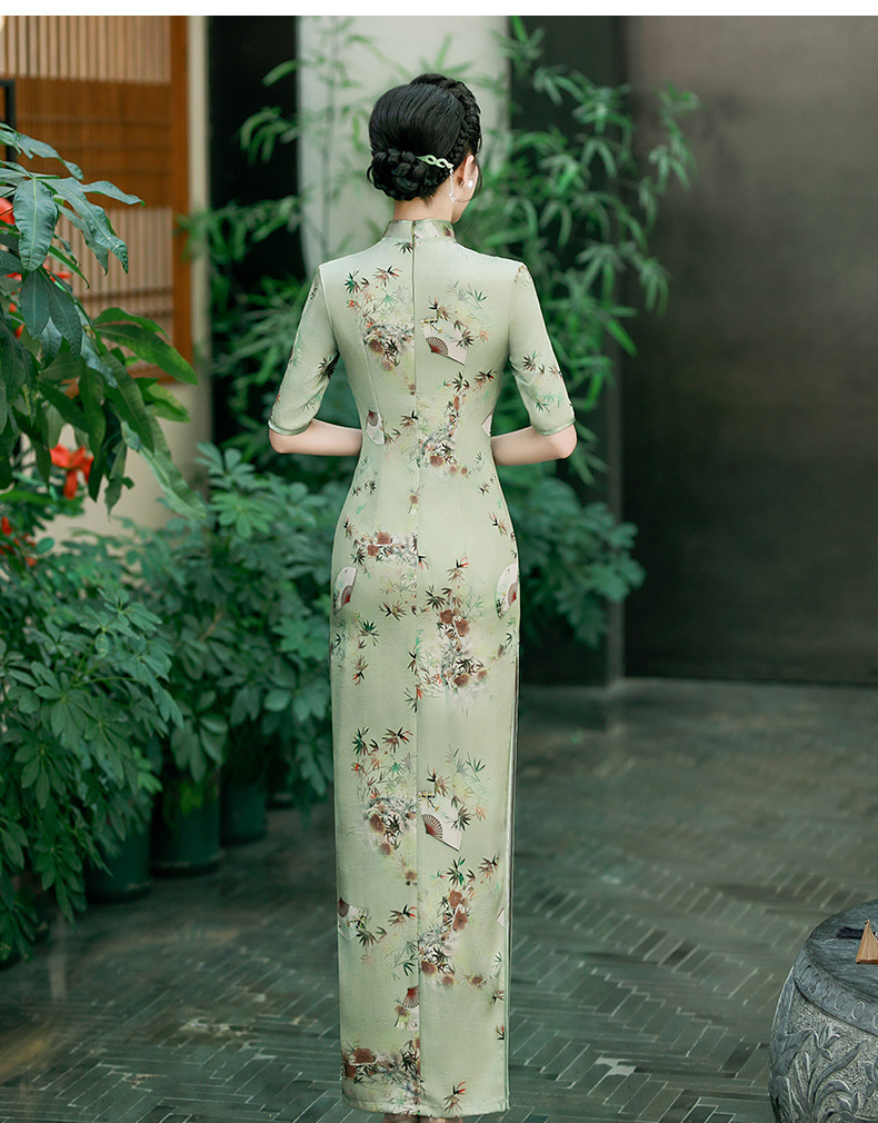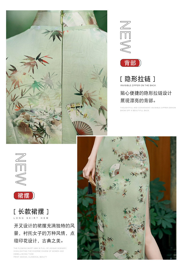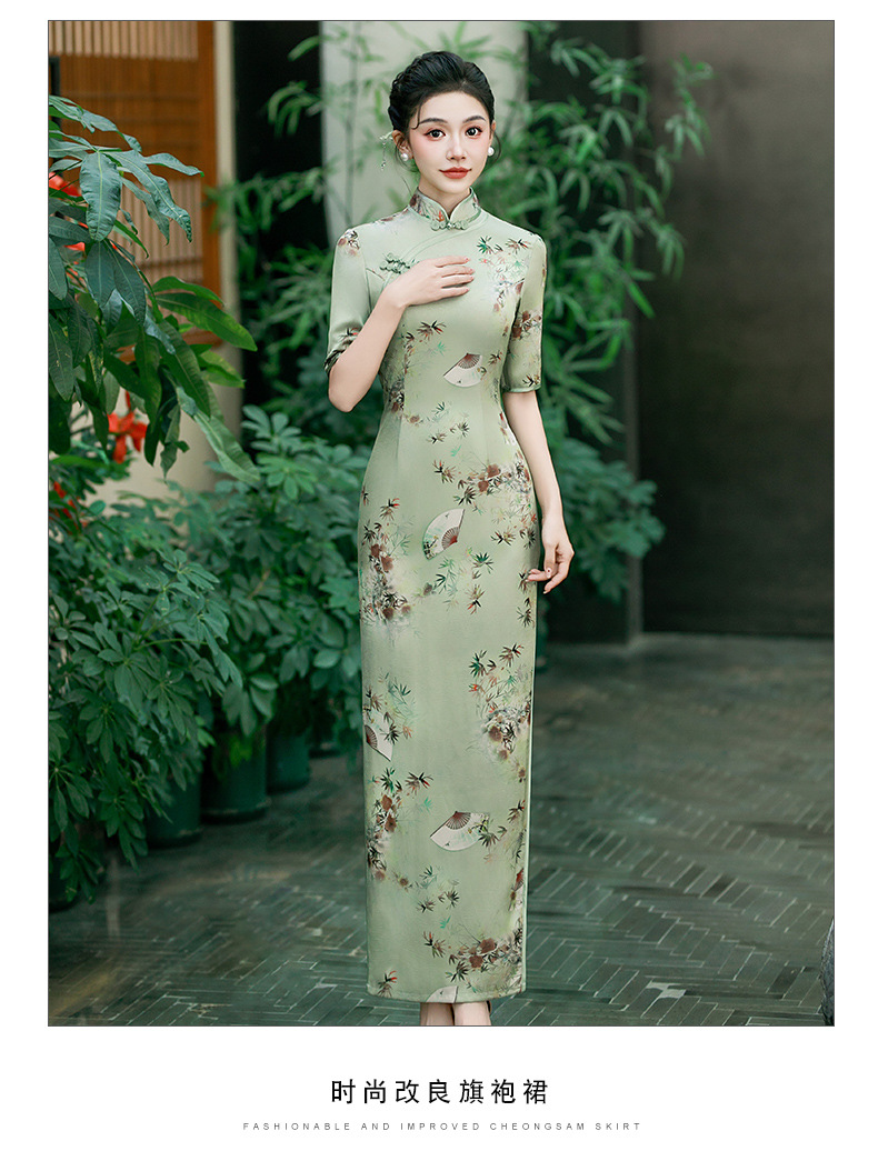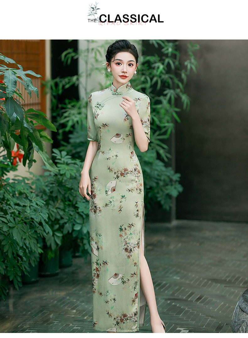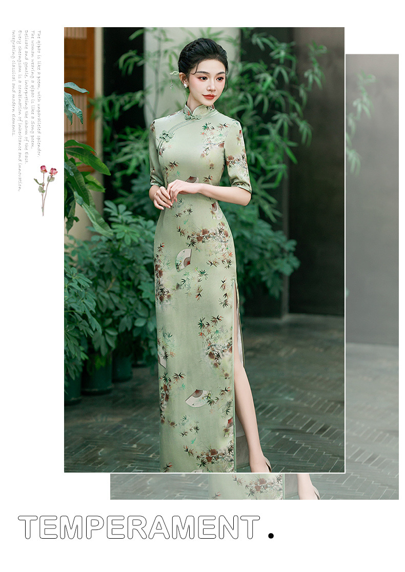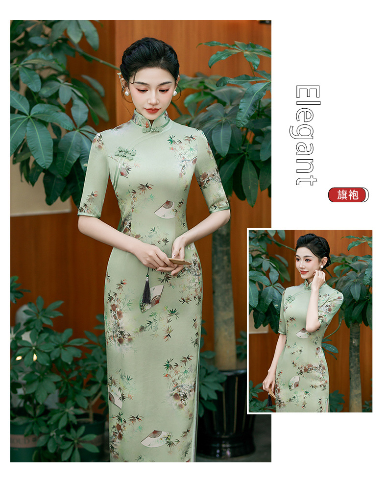 中式走秀旗袍2025新款高端大气复古主持人演出服长裙素雅日常可穿