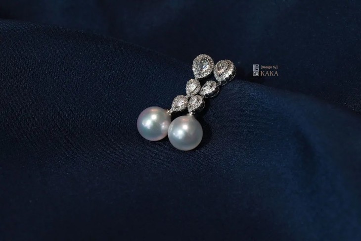 这是今年春天闭关的一个想法,把翡翠版本的“听雨”延伸一个轻奢的akoya珍珠版本。
