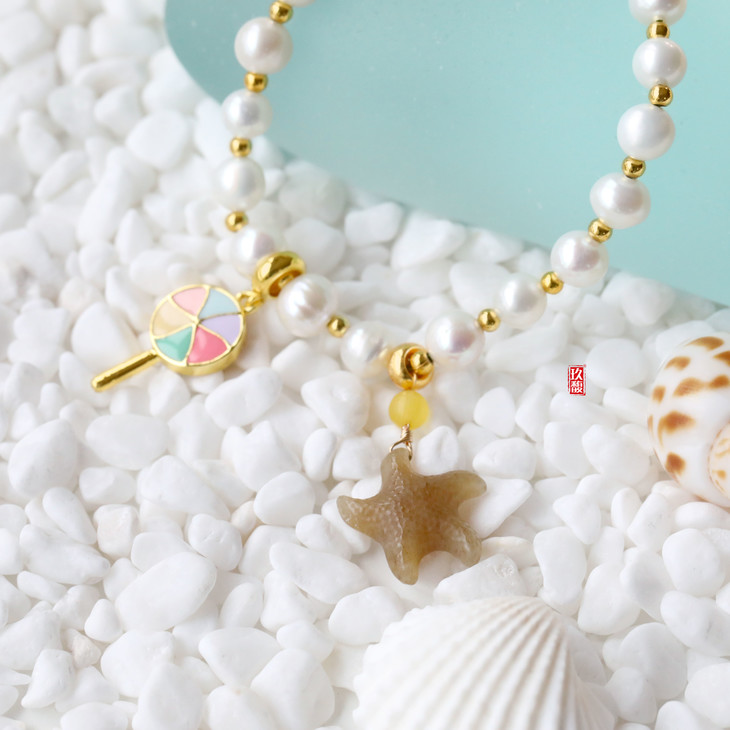 配件:天然淡水珍珠、彩色珐琅小吊坠