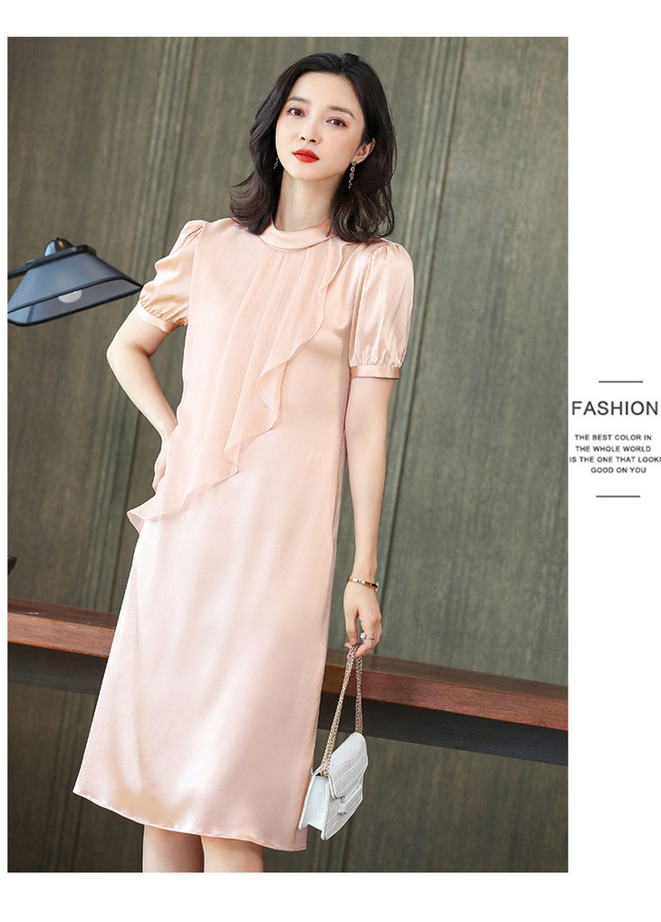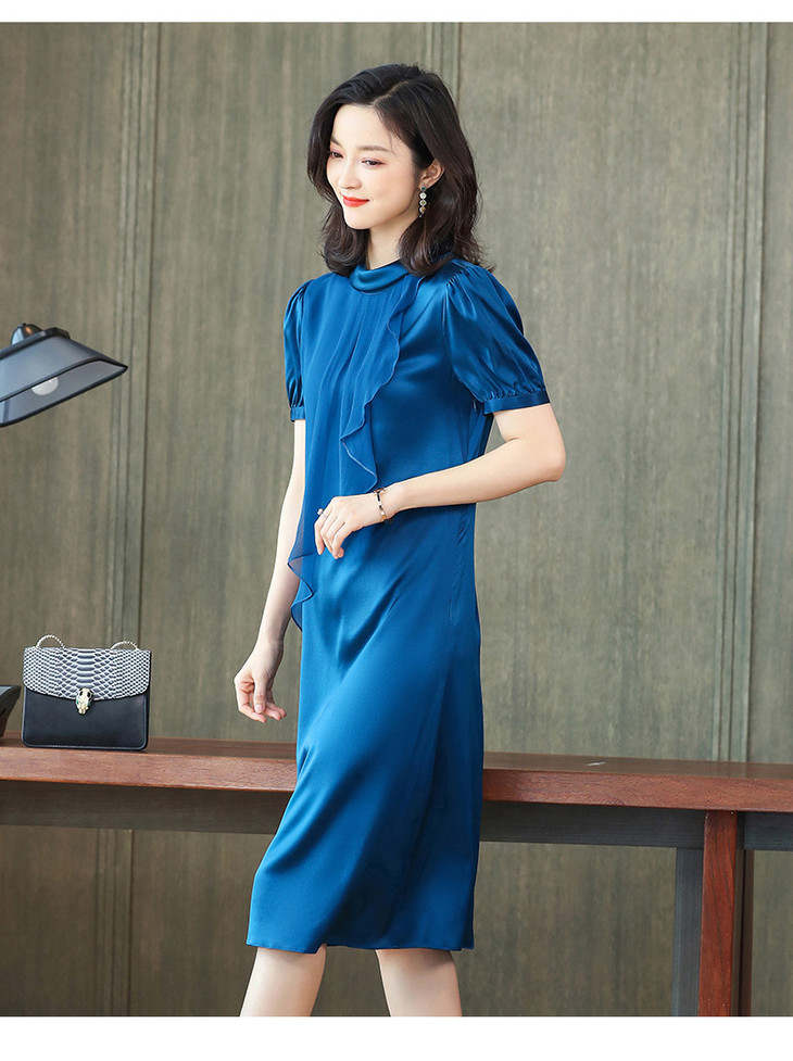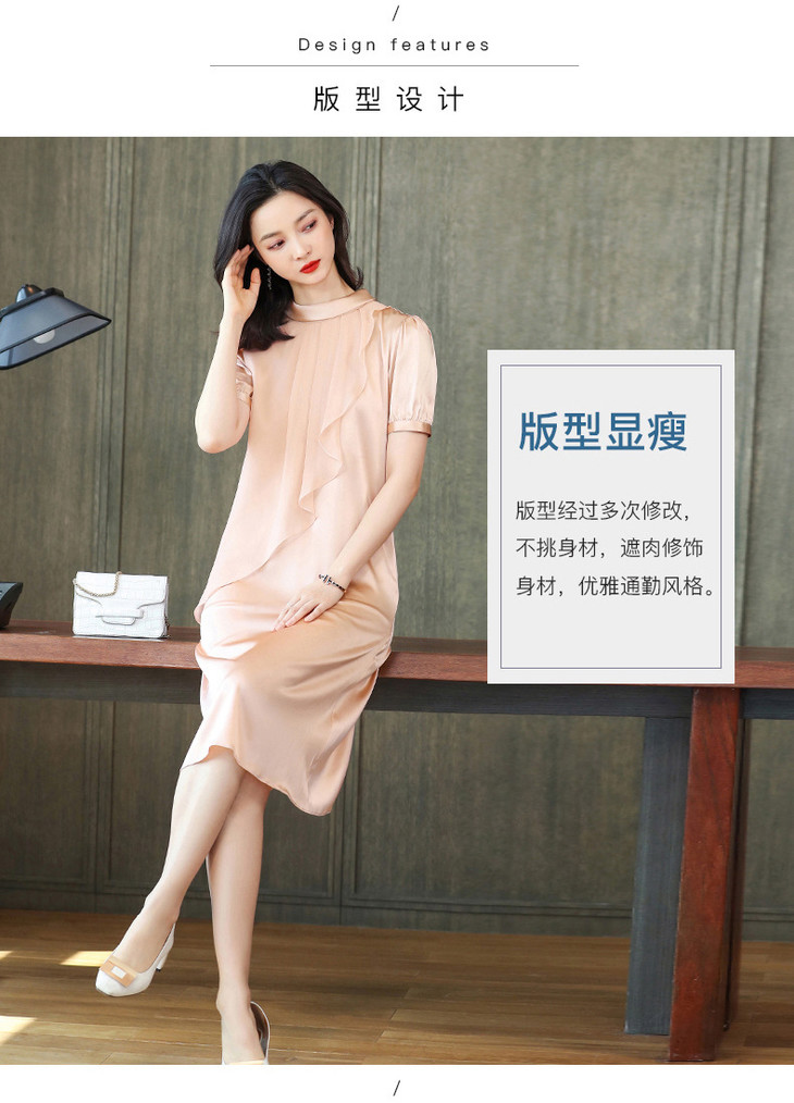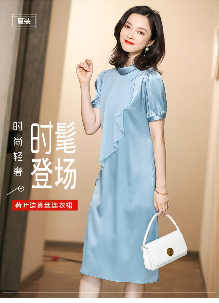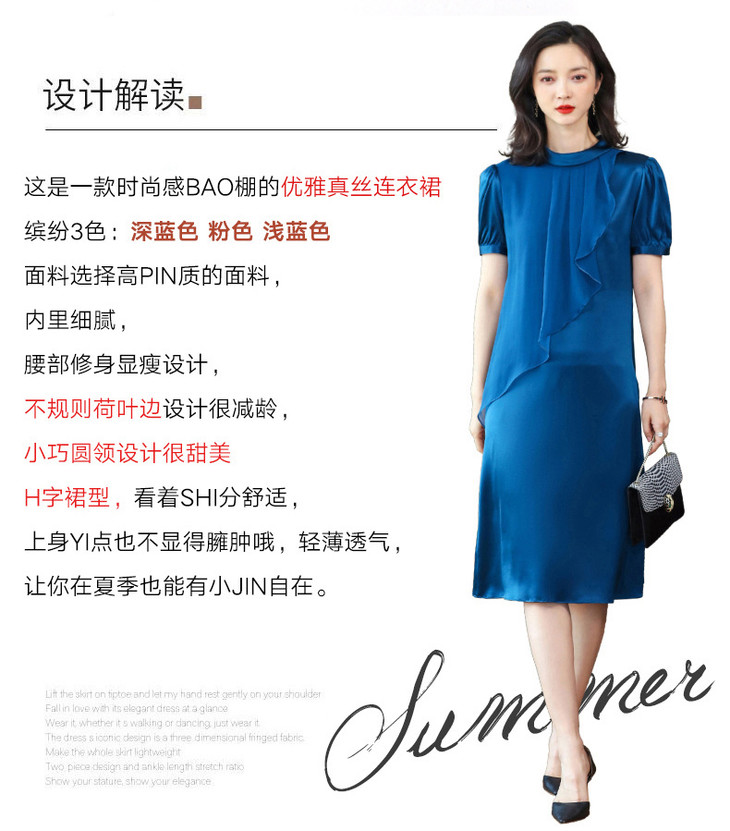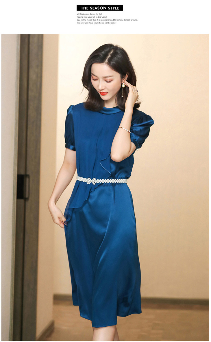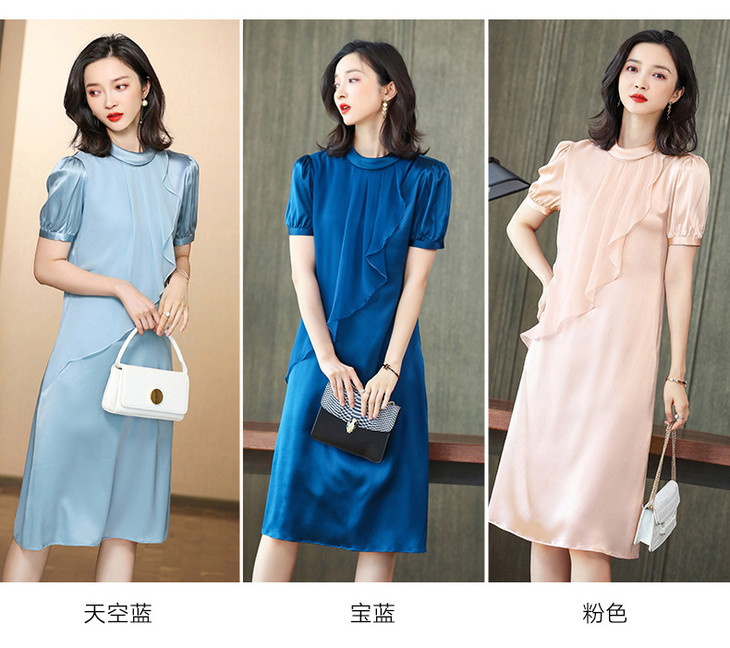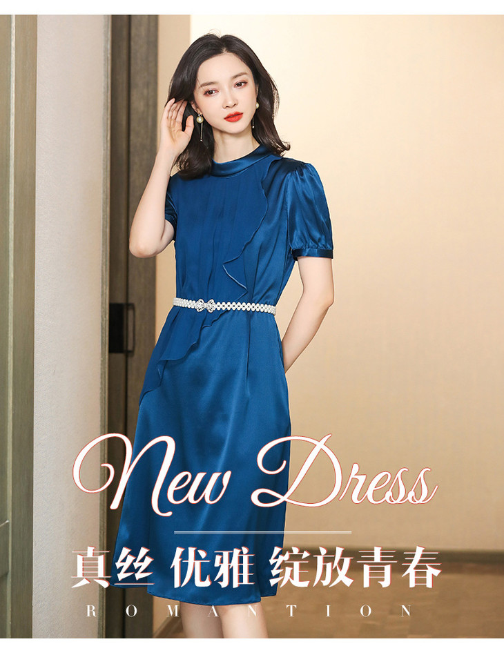 ASE-6638优雅大气荷叶边领气质真丝连衣裙(配腰带)