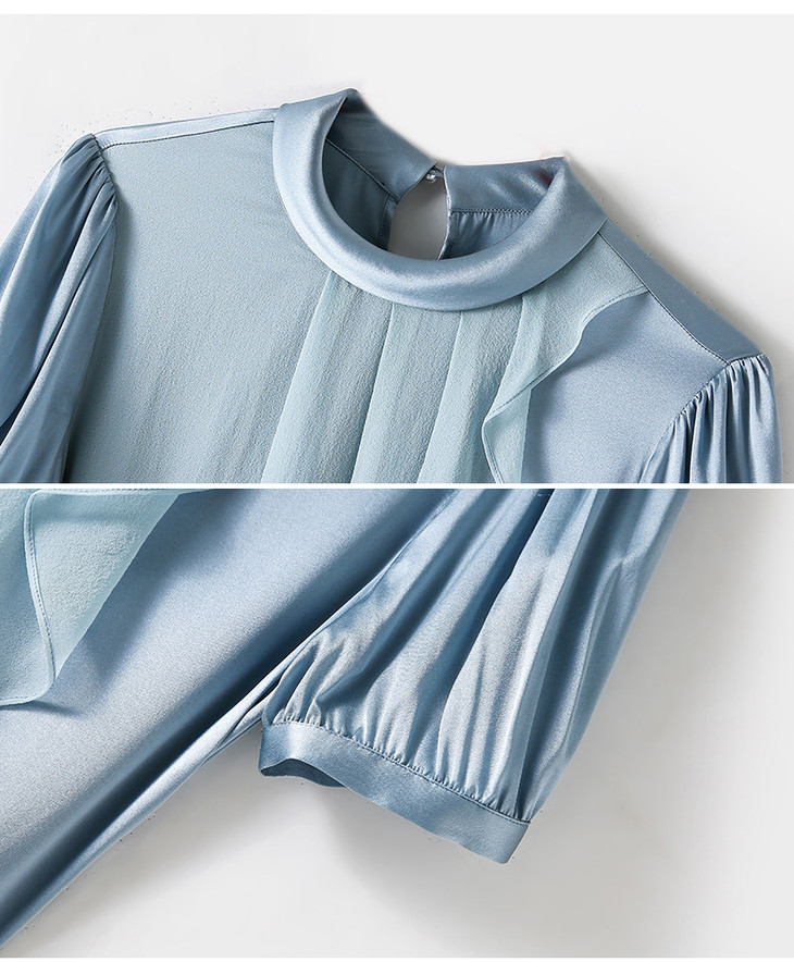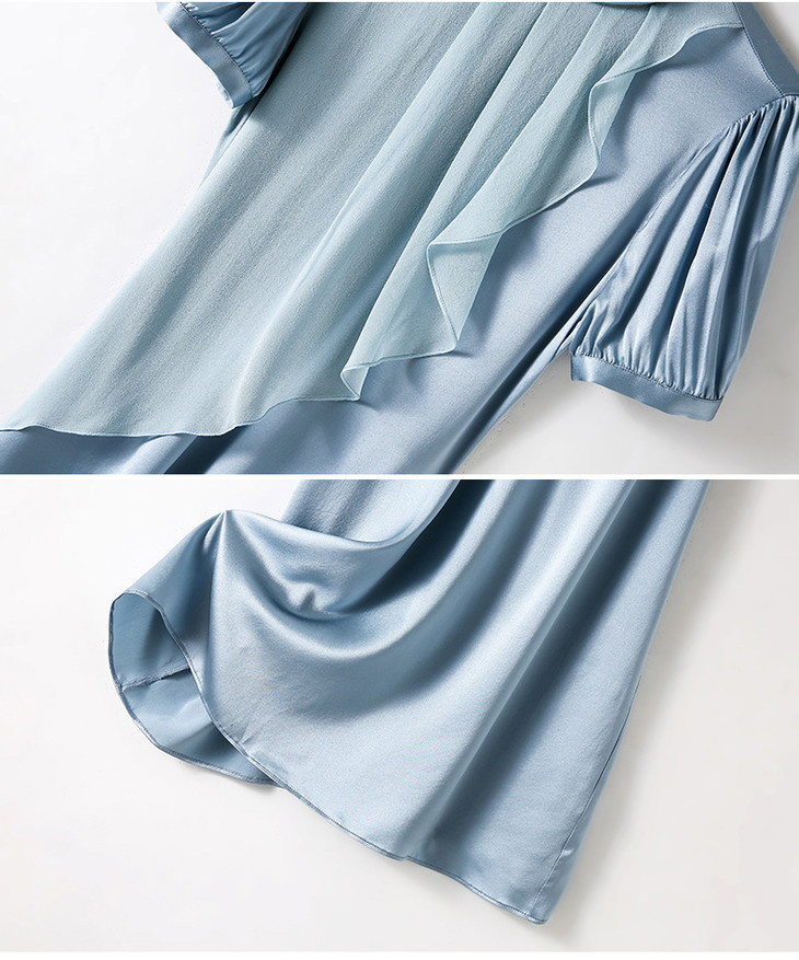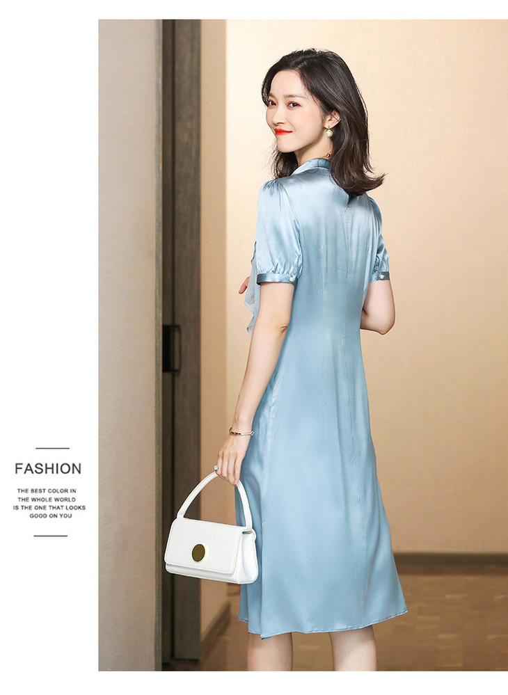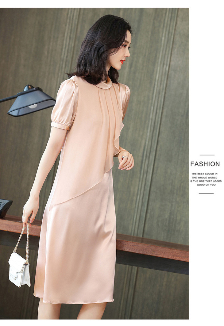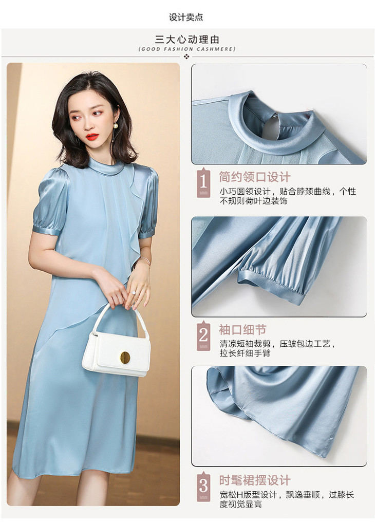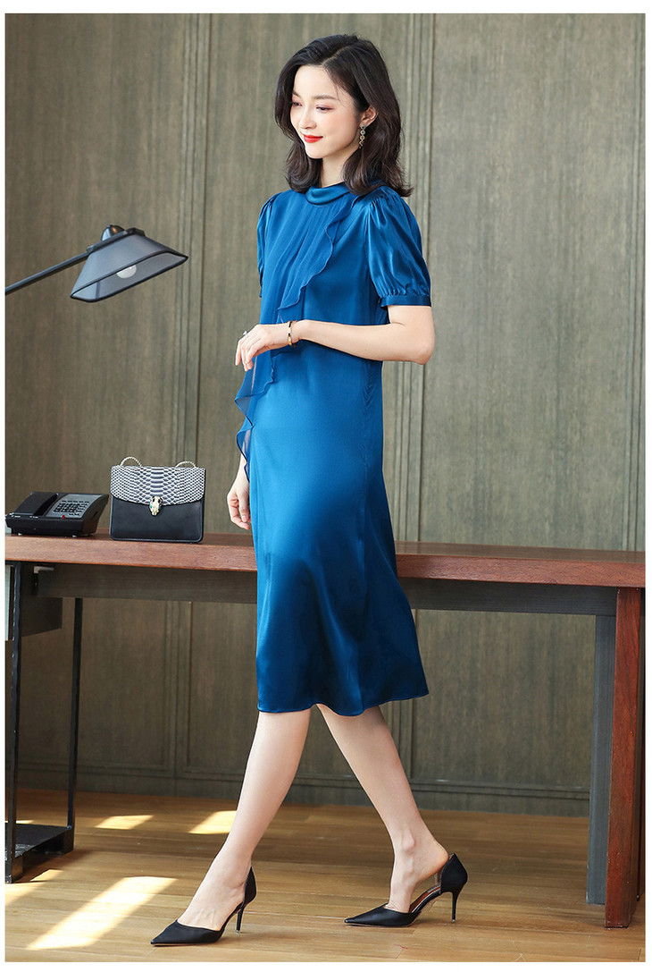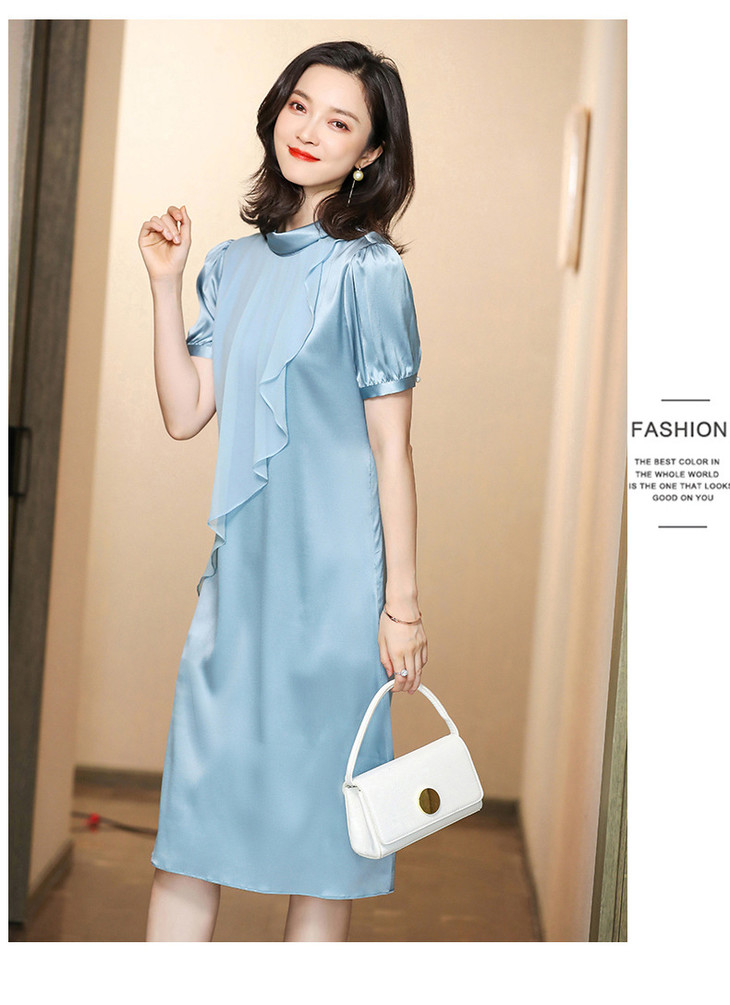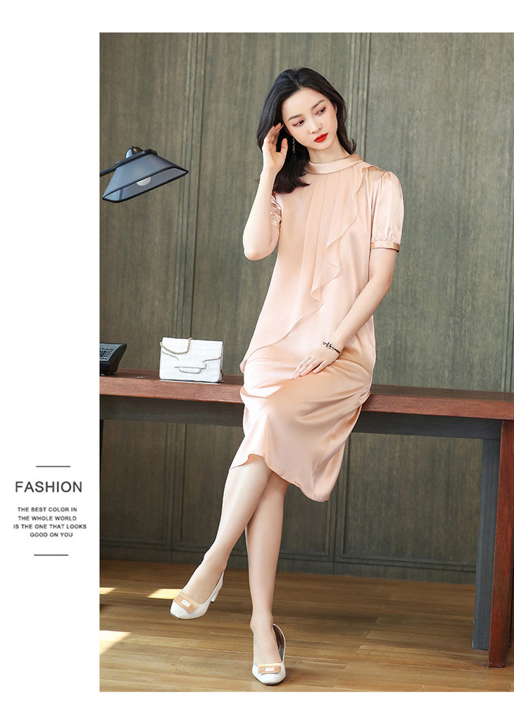 ASE-6638优雅大气荷叶边领气质真丝连衣裙(配腰带)