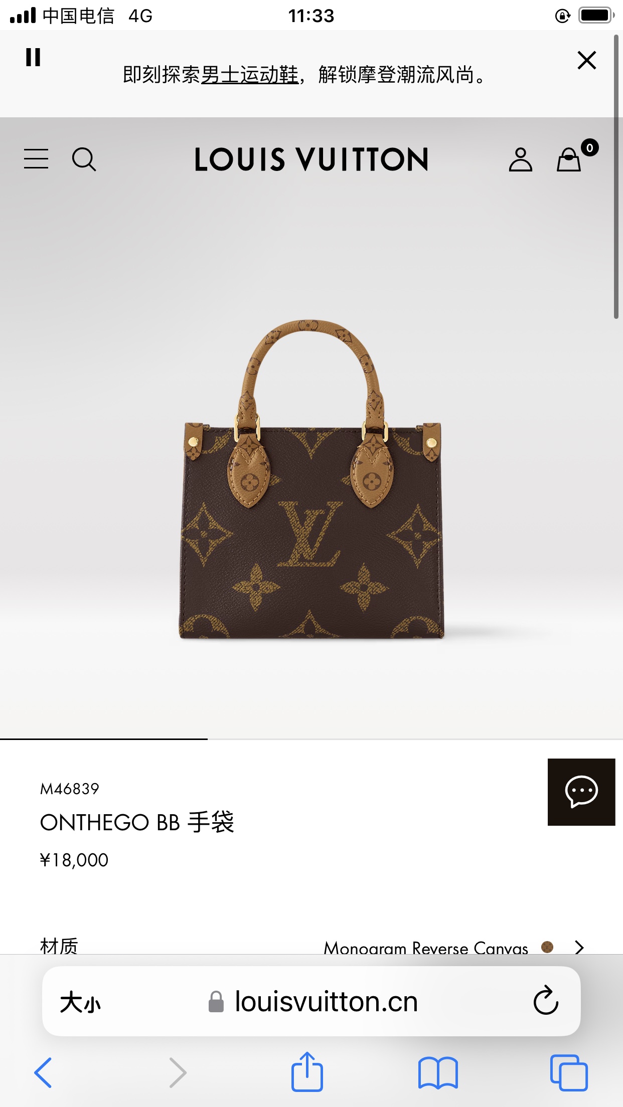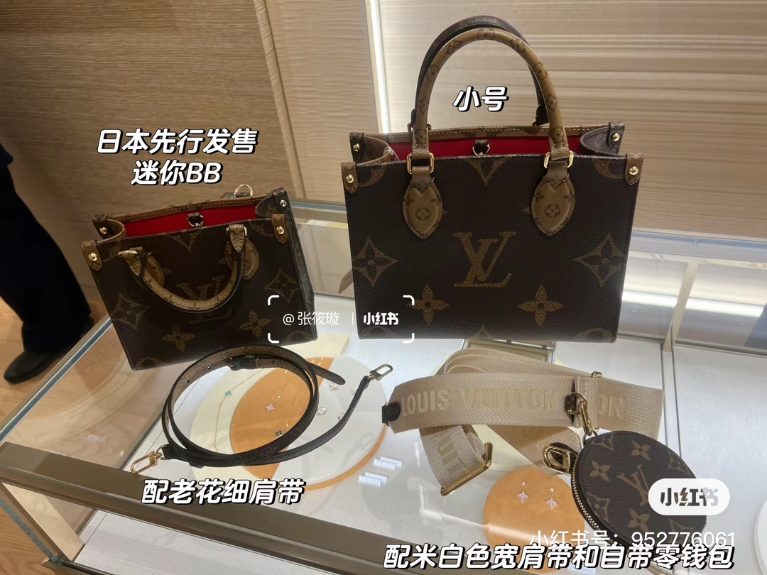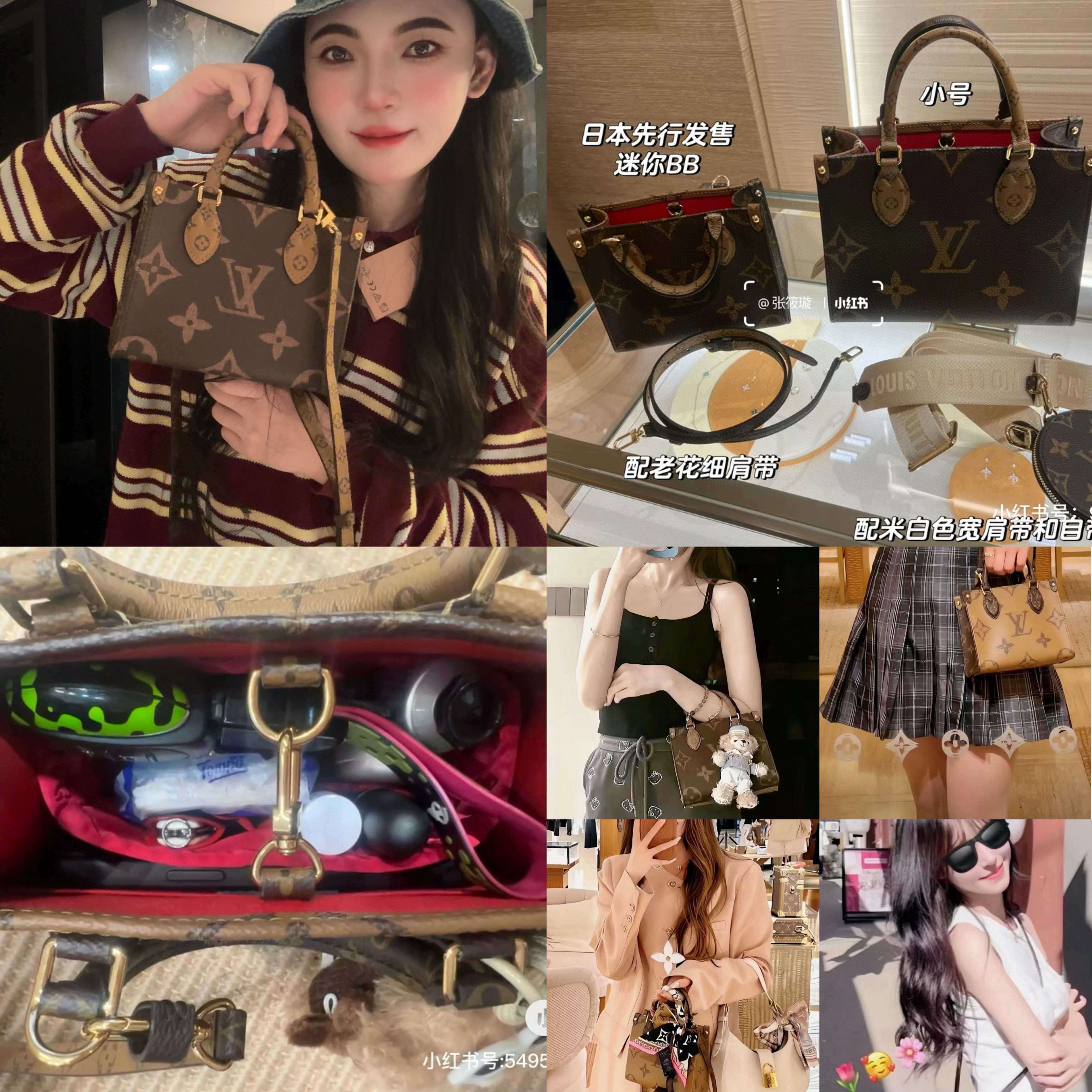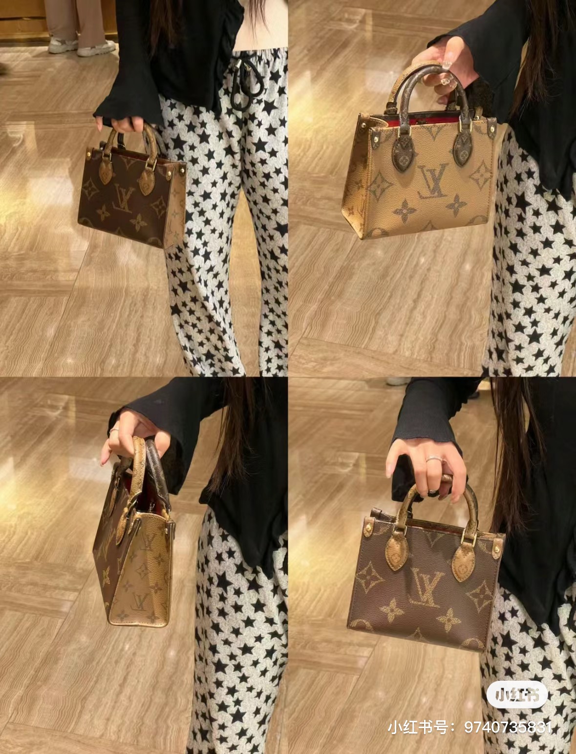 目前订货要等三个月!驴 小丛林迷你号 但是官方叫法 Lv onthego BB 因为它确实不大说是BB 一点不为过!整体设计形状和小号大号一致 正反方两种花色拼接 给人视觉错觉就是换一面又是另一个包的感觉!