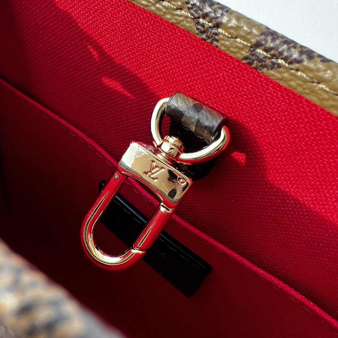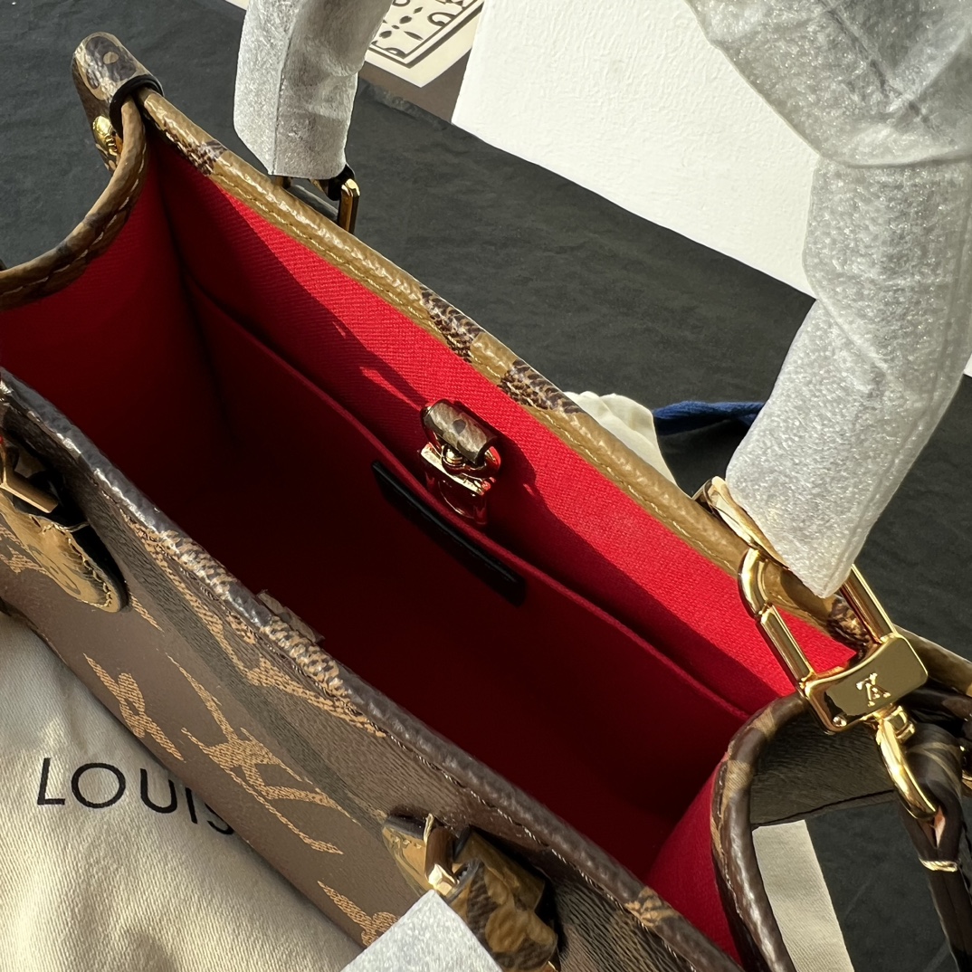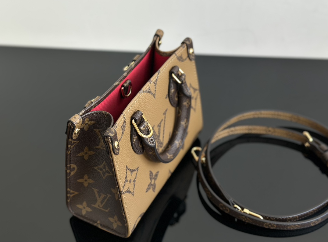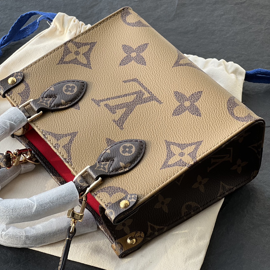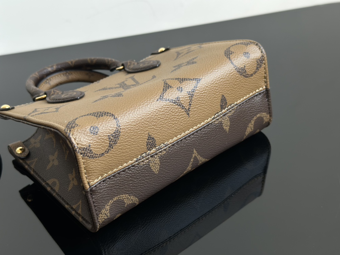 目前订货要等三个月!驴 小丛林迷你号 但是官方叫法 Lv onthego BB 因为它确实不大说是BB 一点不为过!整体设计形状和小号大号一致 正反方两种花色拼接 给人视觉错觉就是换一面又是另一个包的感觉!