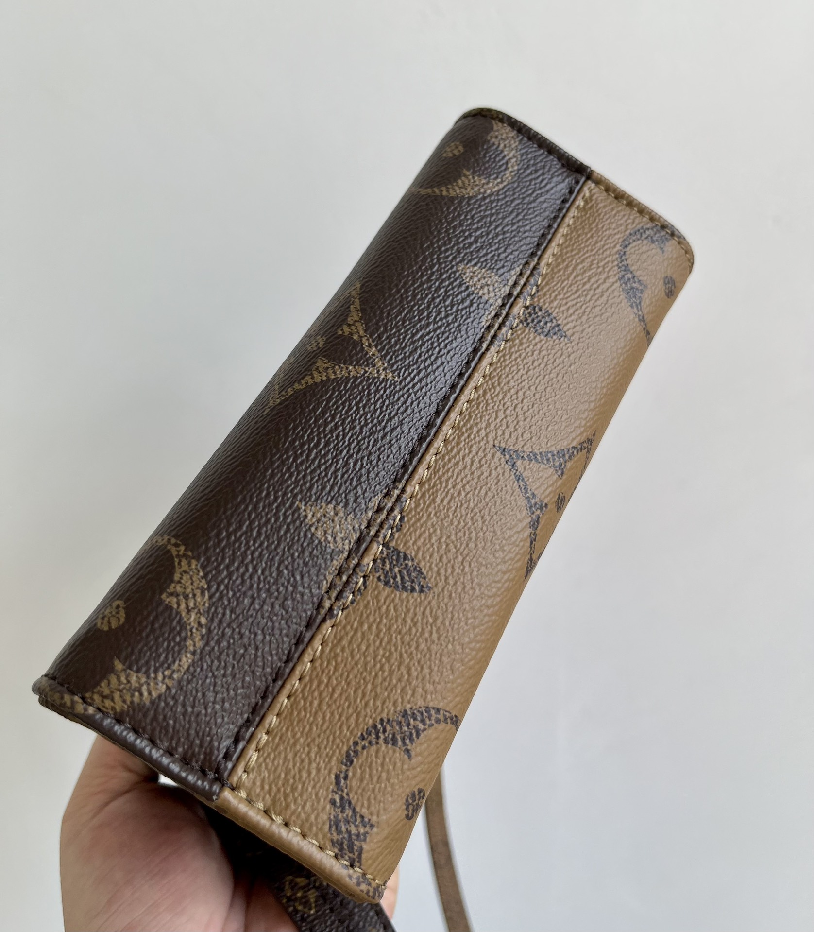 驴 小丛林迷你号 但是官方叫法 L*v BB 因为它确实不大说是BB 一点不为过!整体设计形状和小号大号一致 正反方两种花色拼接 给人视觉错觉就是换一面又是另一个包的感觉!配有长肩带可以拆卸,自由组合。