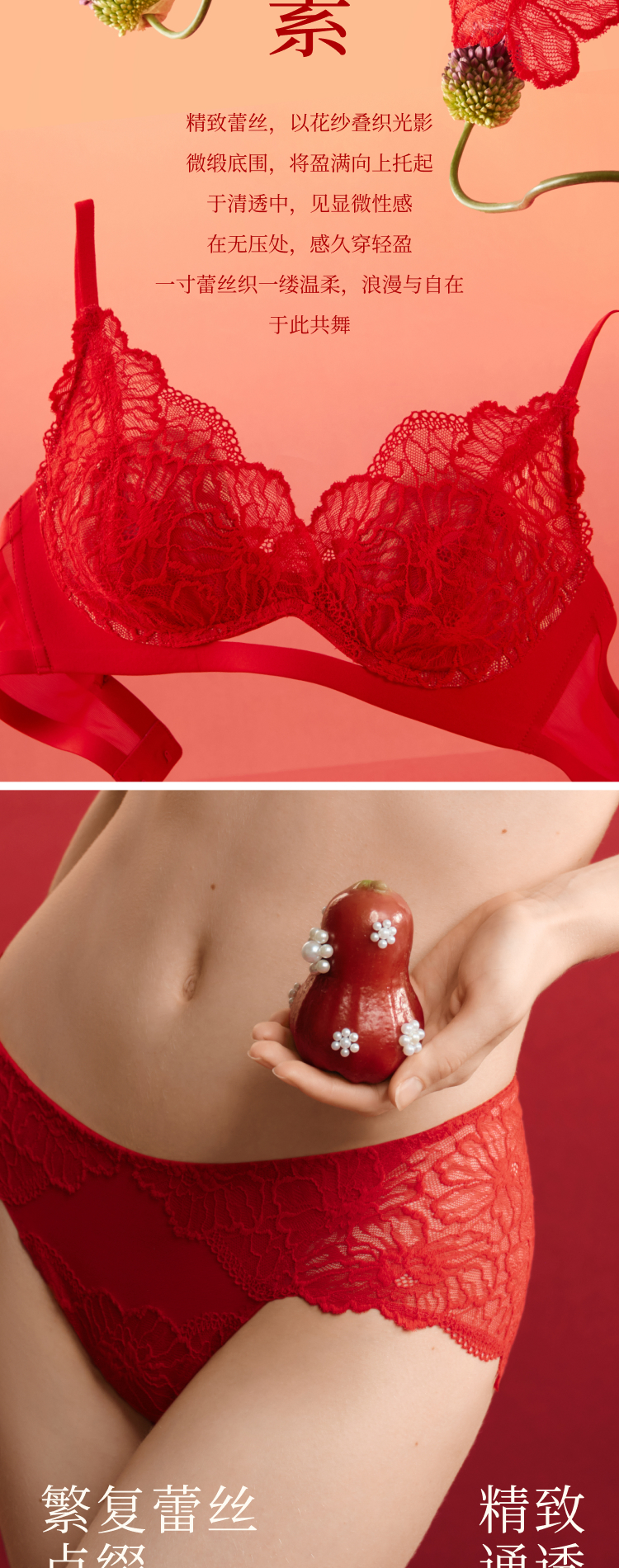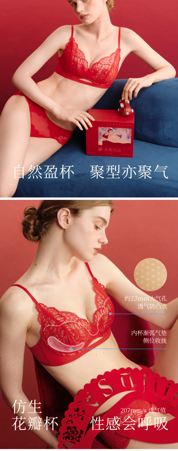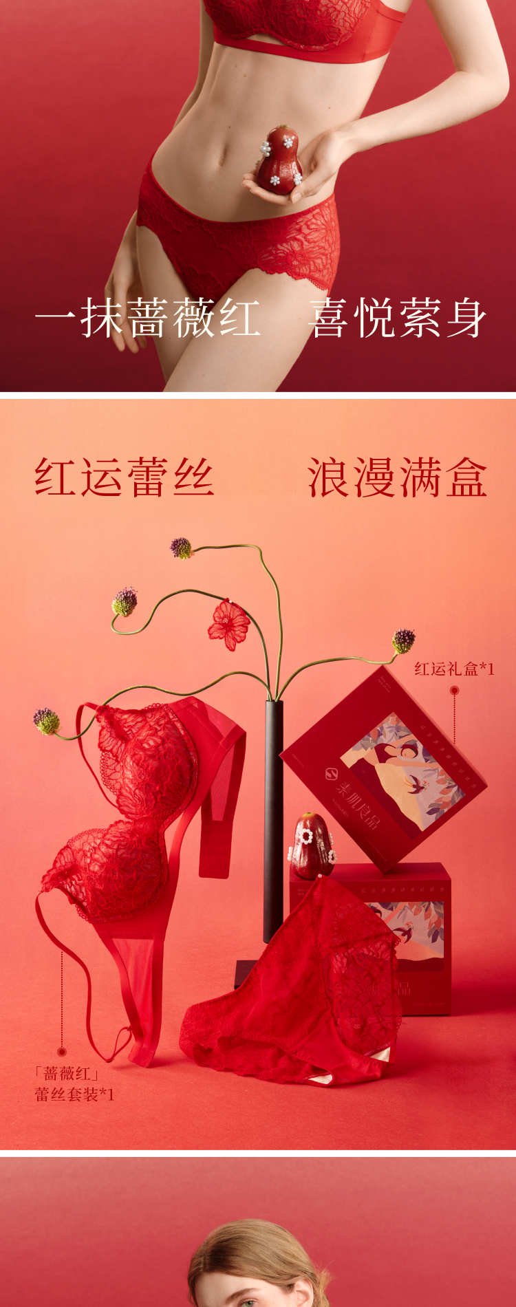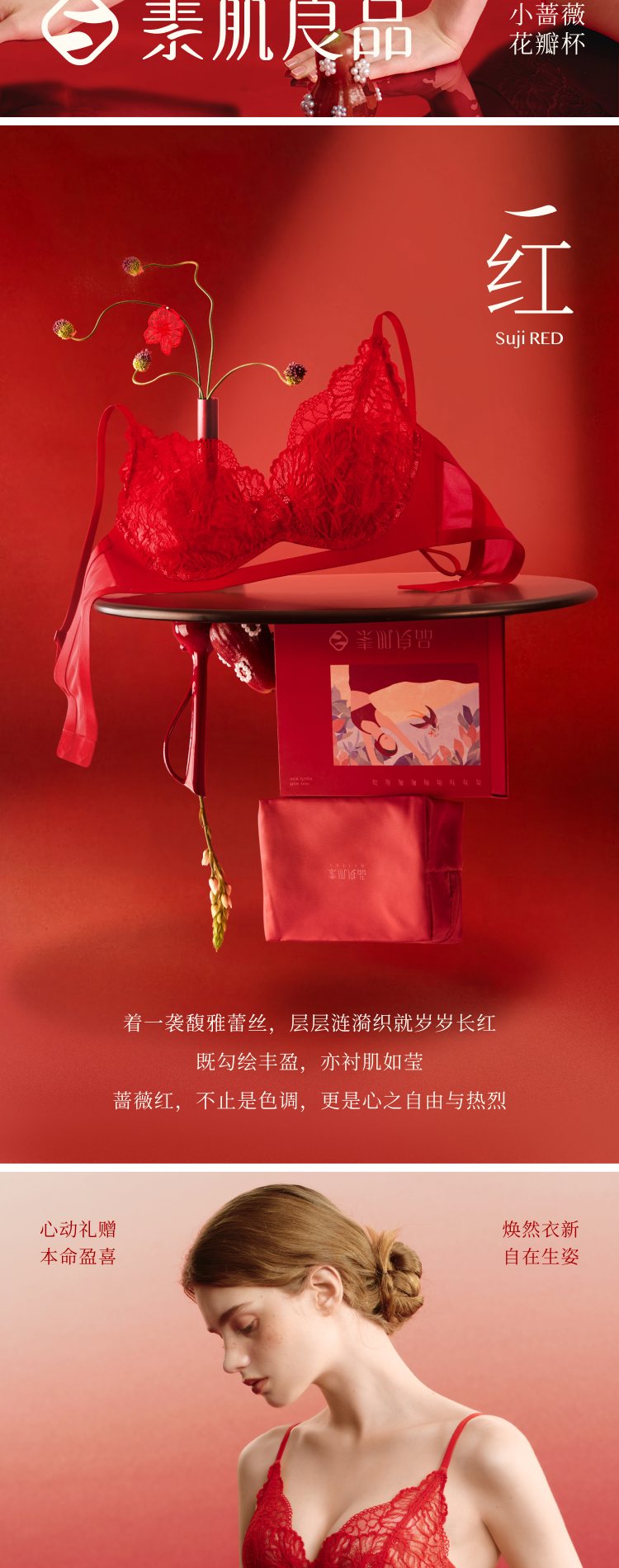 (小眠专属)素肌良品「小蔷薇套装」红运礼盒 | 精致蕾丝杯,适合A-C Cup,含内衣+内裤