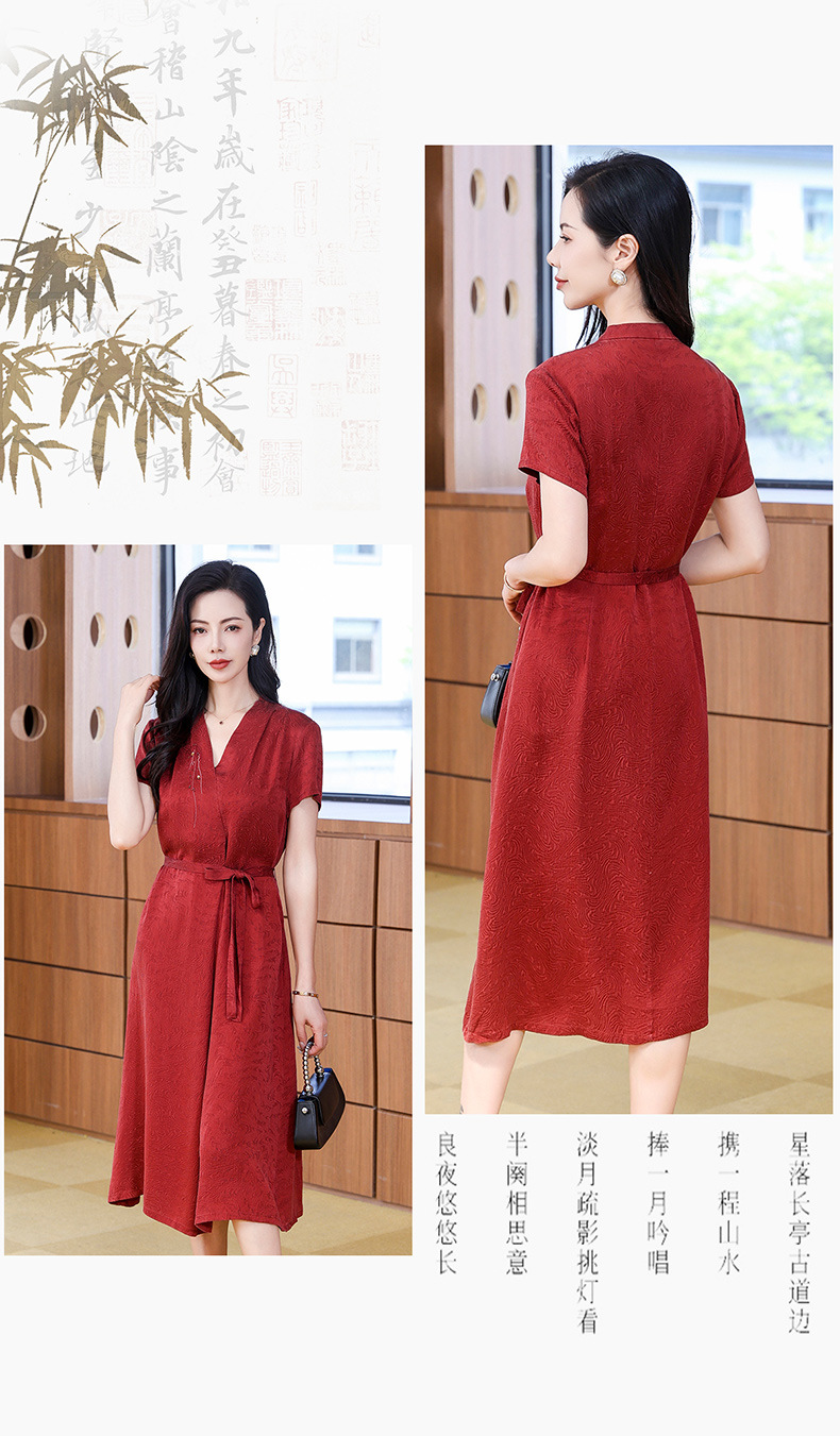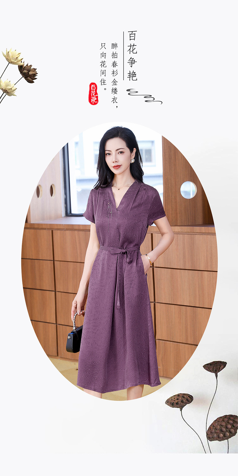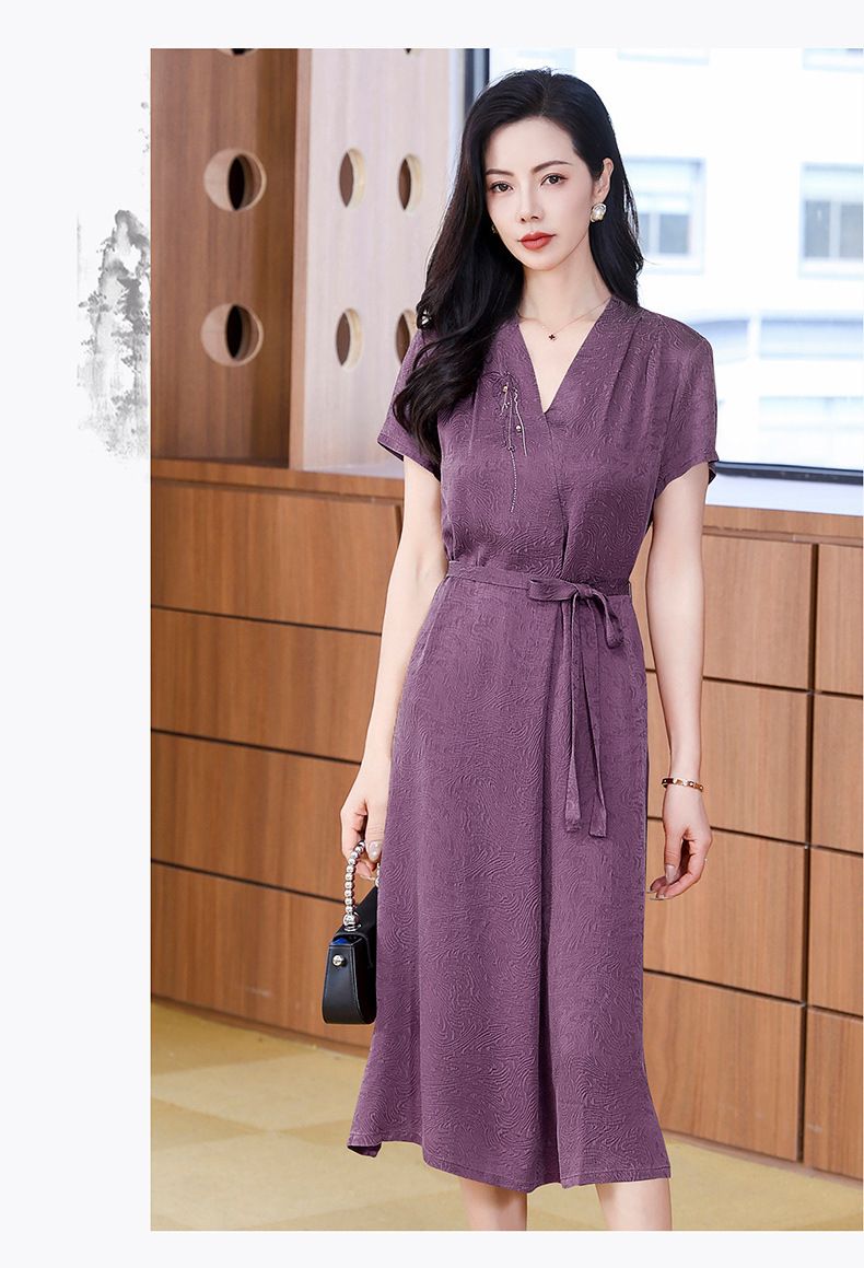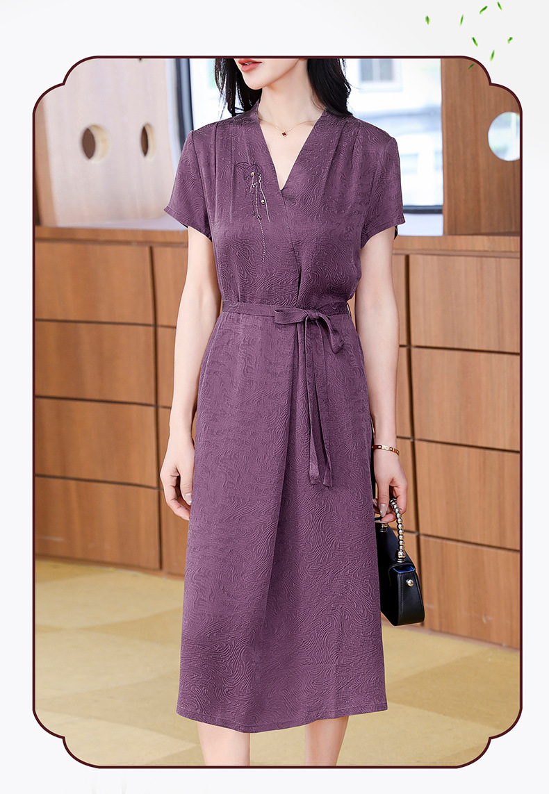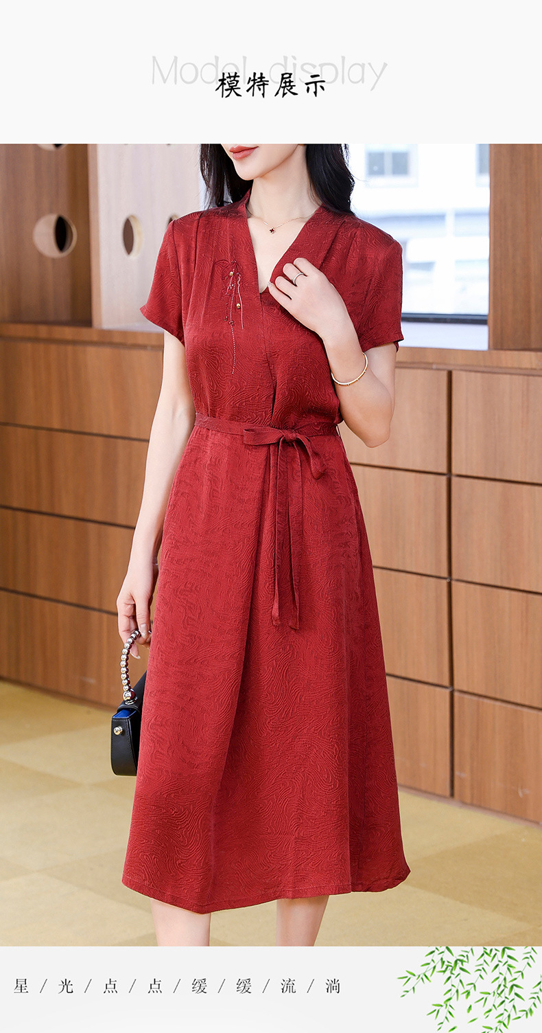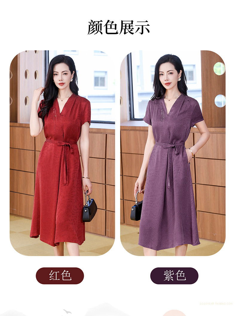 丁摩 夏装冠乐绉香云纱真丝连衣裙女装气质短袖裙子5ZF-221930