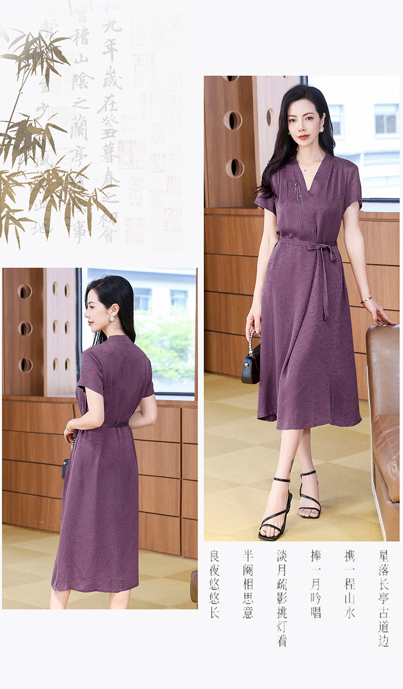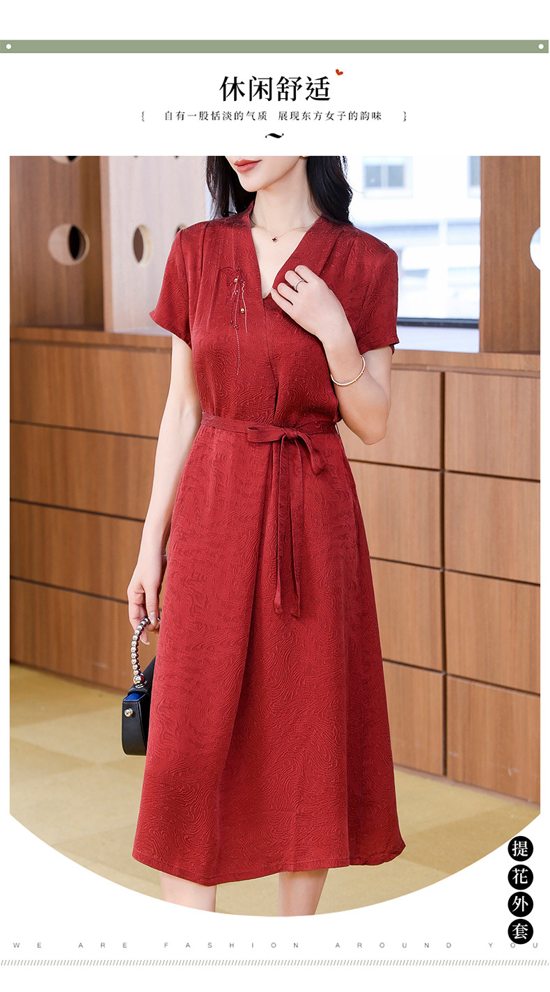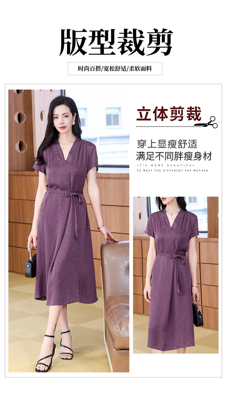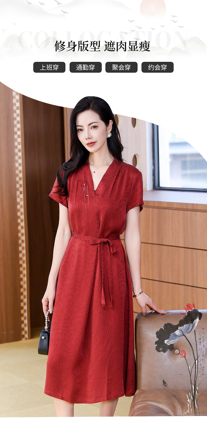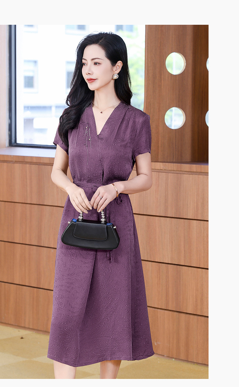 丁摩 夏装冠乐绉香云纱真丝连衣裙女装气质短袖裙子5ZF-221930