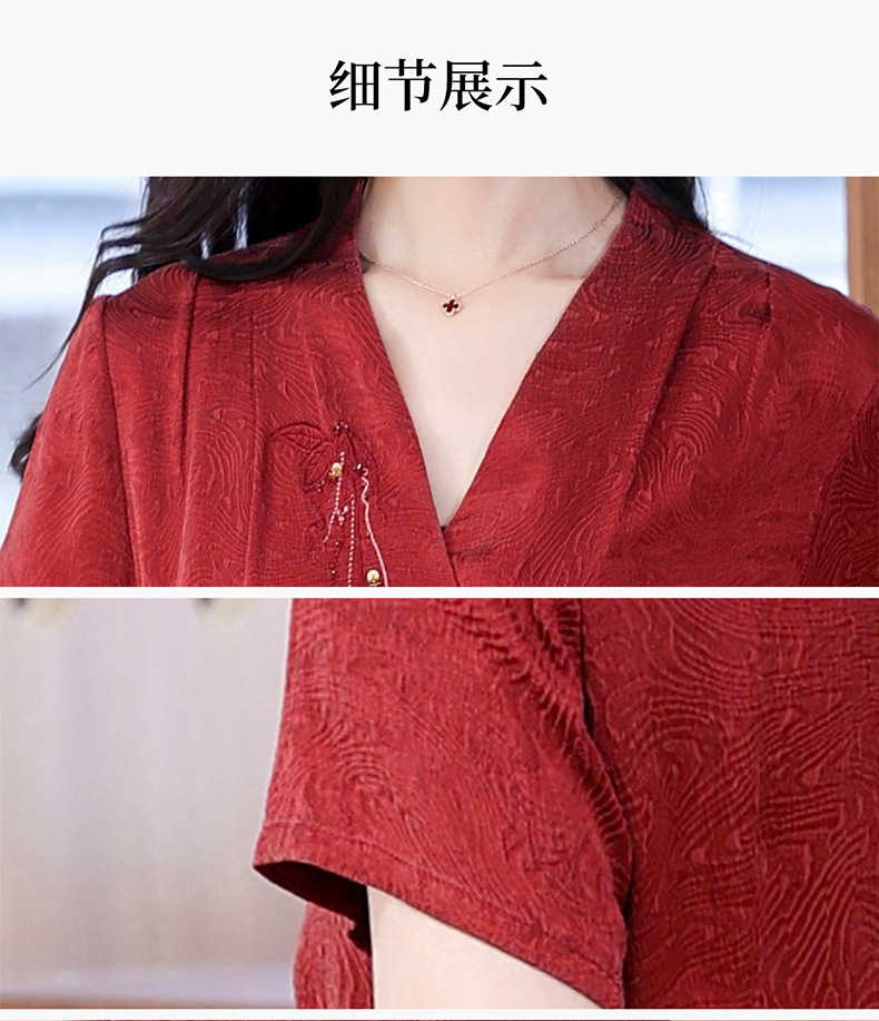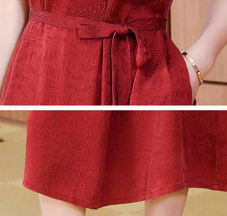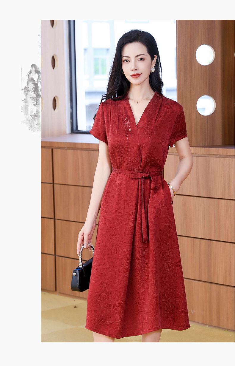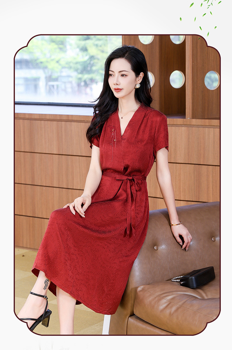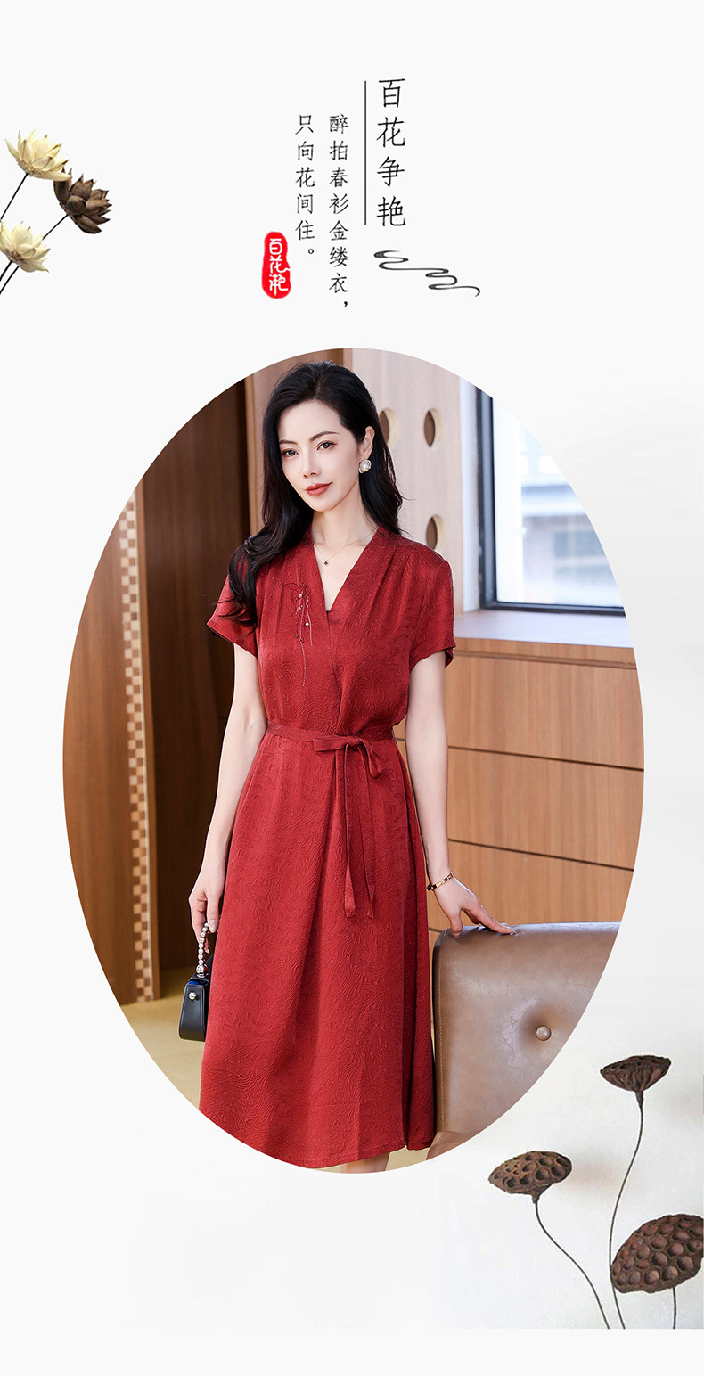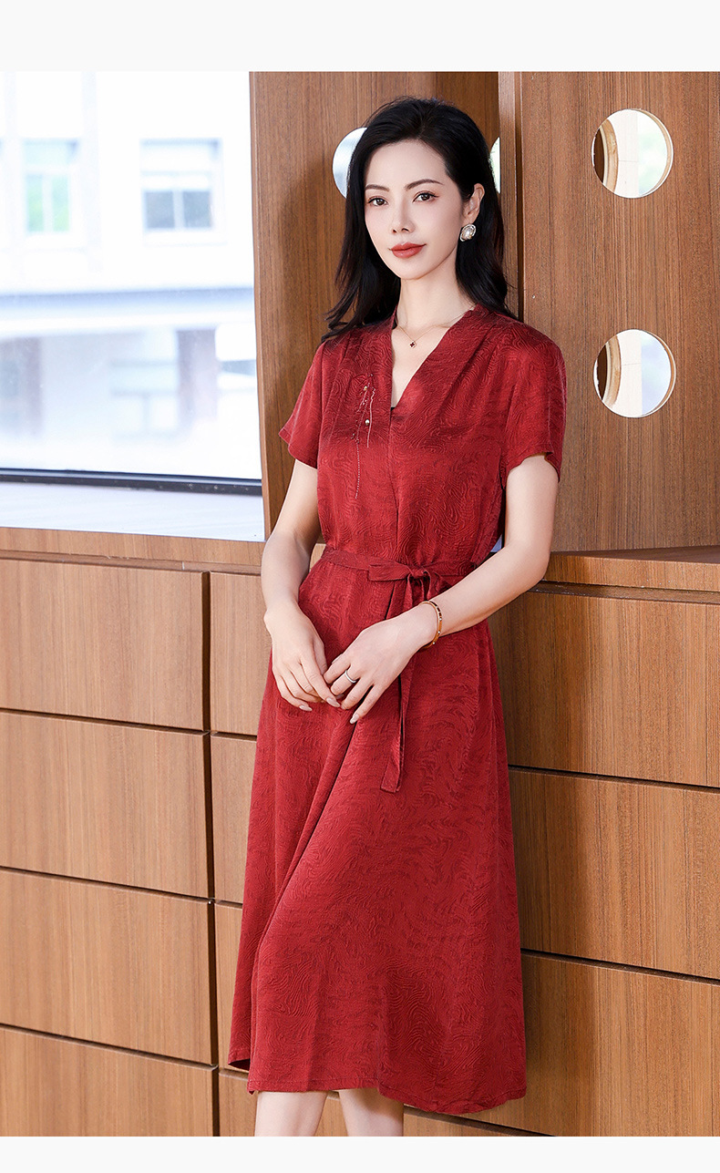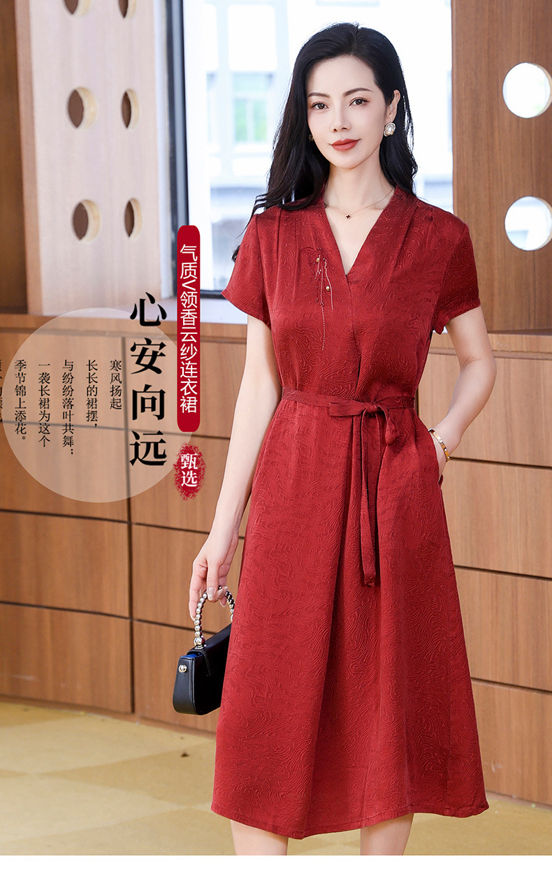 丁摩 夏装冠乐绉香云纱真丝连衣裙女装气质短袖裙子5ZF-221930
